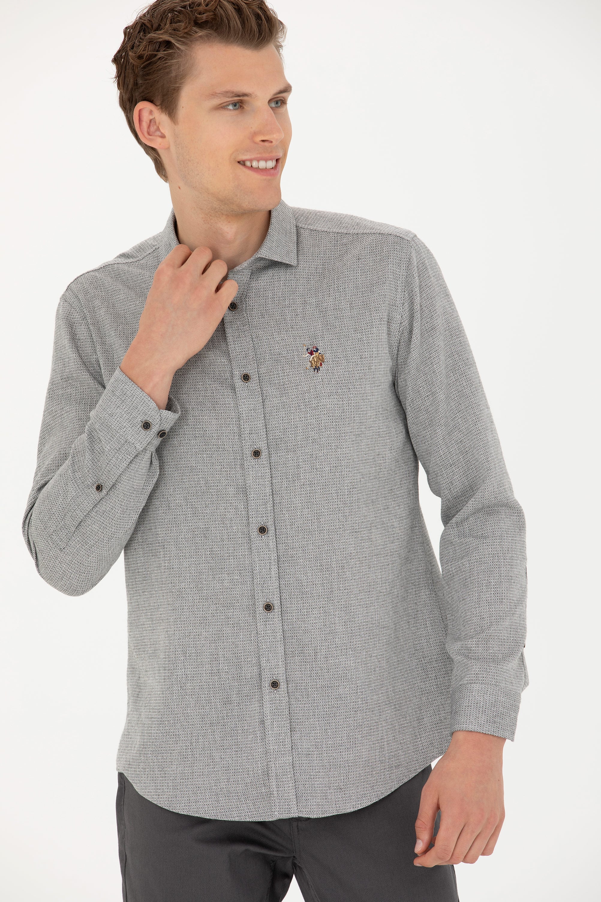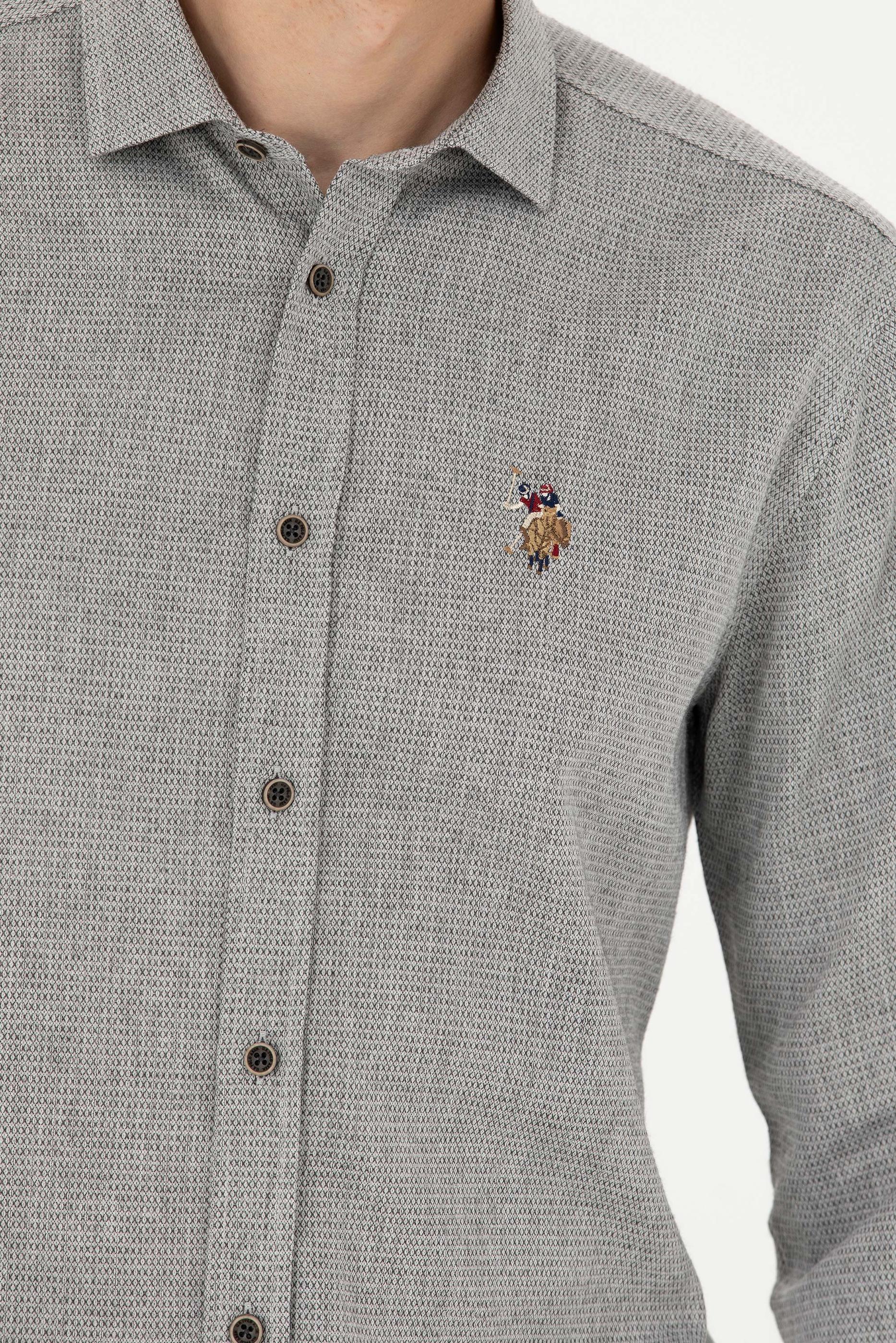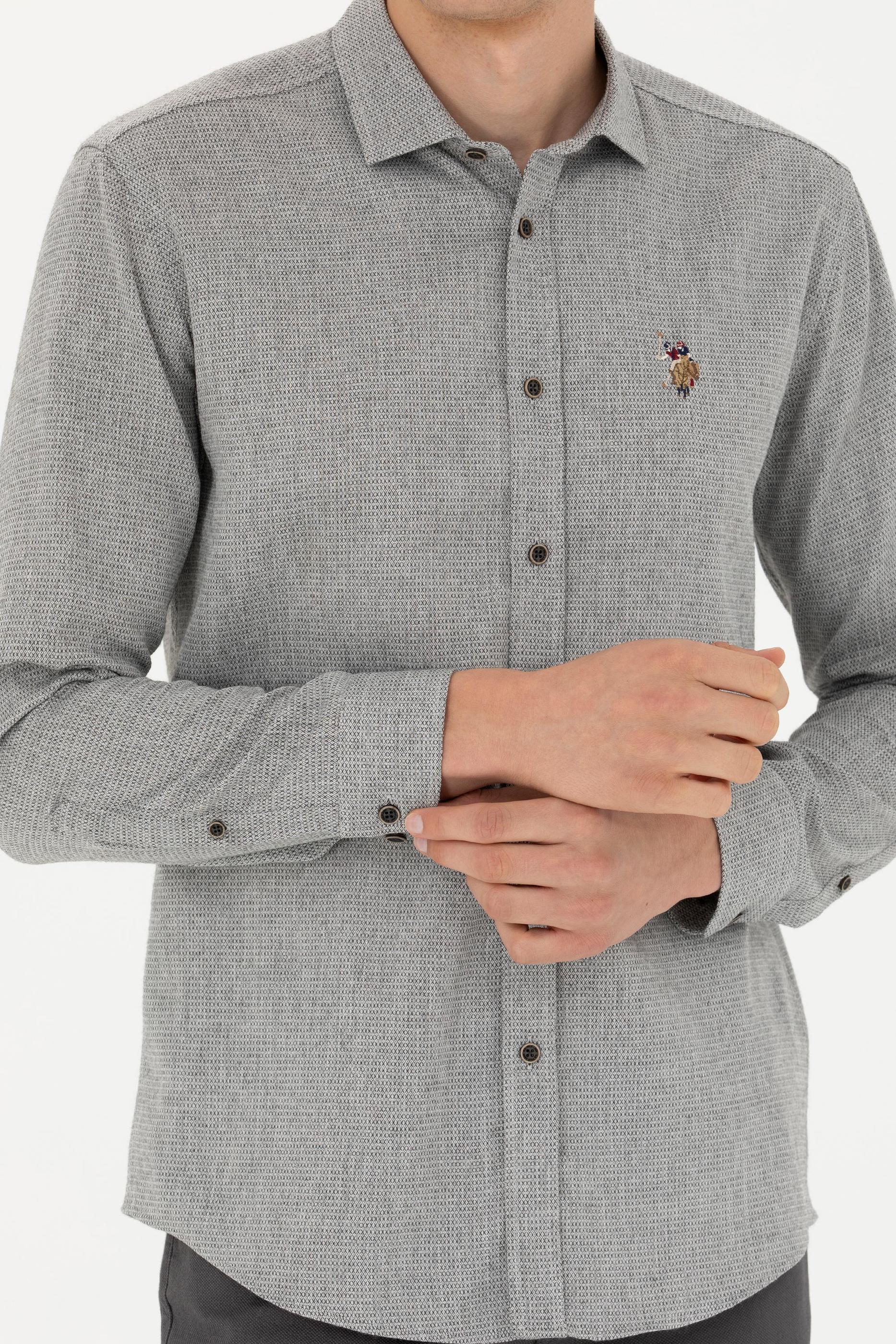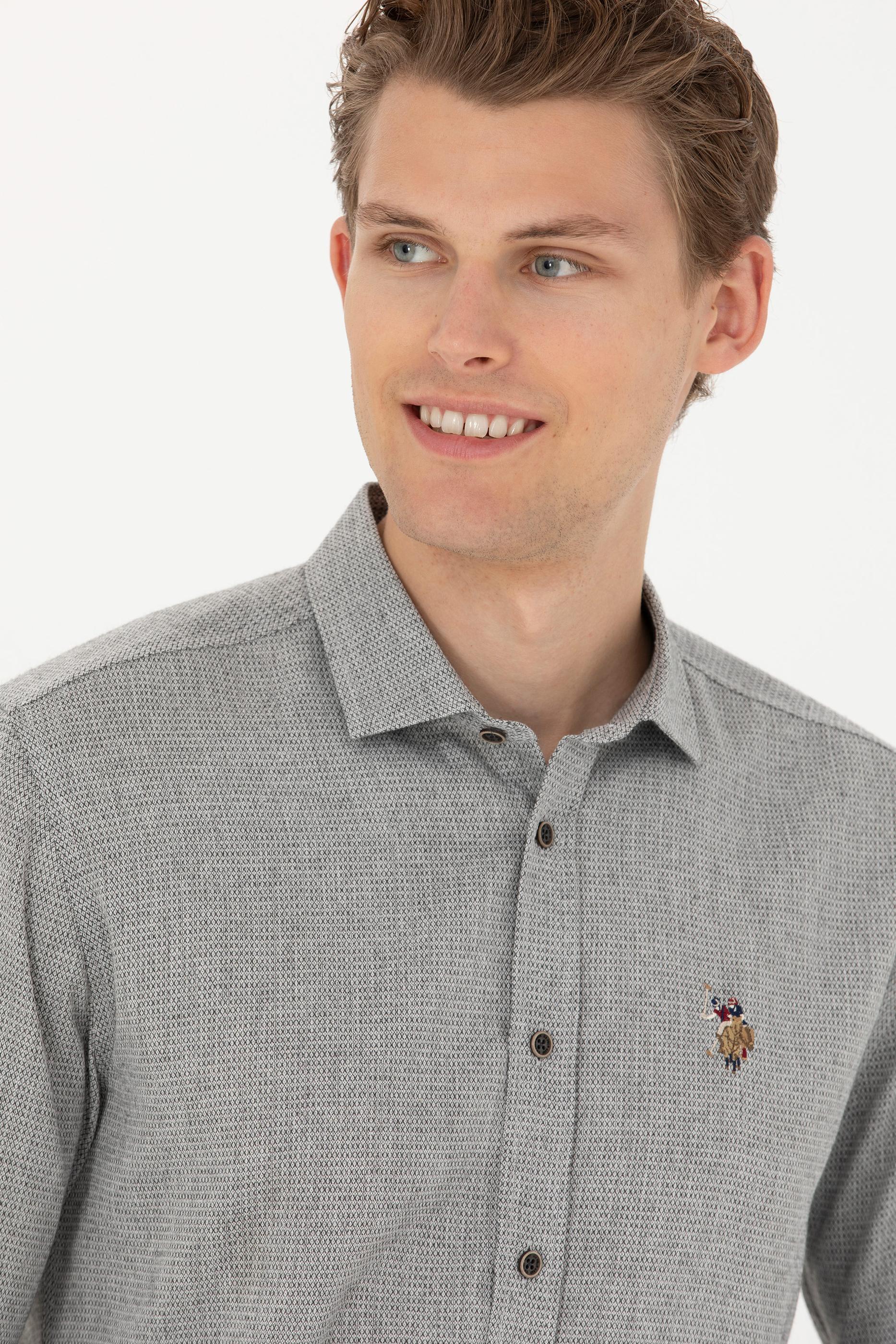 Erkek Saks Uzun Kollu Gömlek