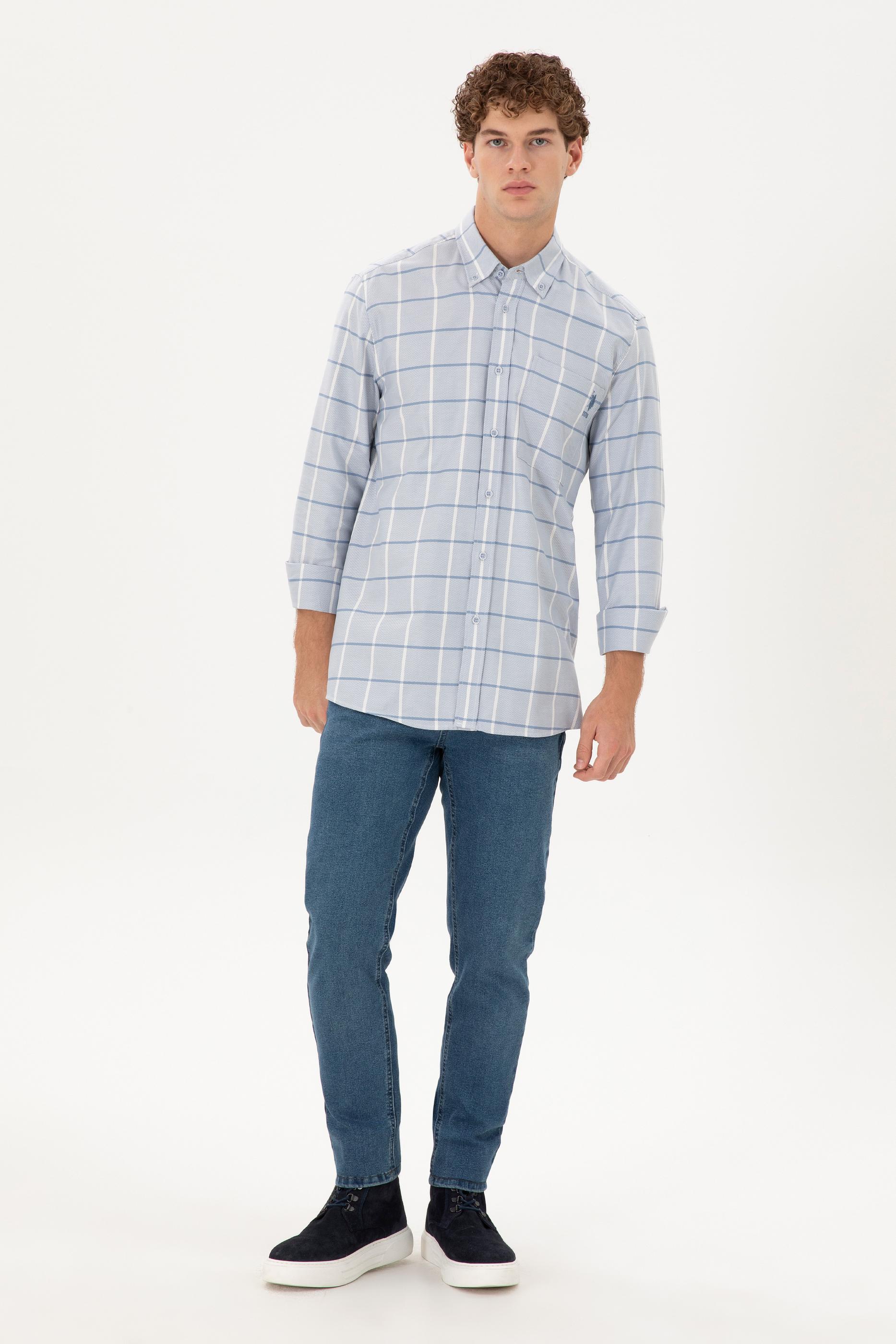 Erkek Saks Uzun Kollu Gömlek