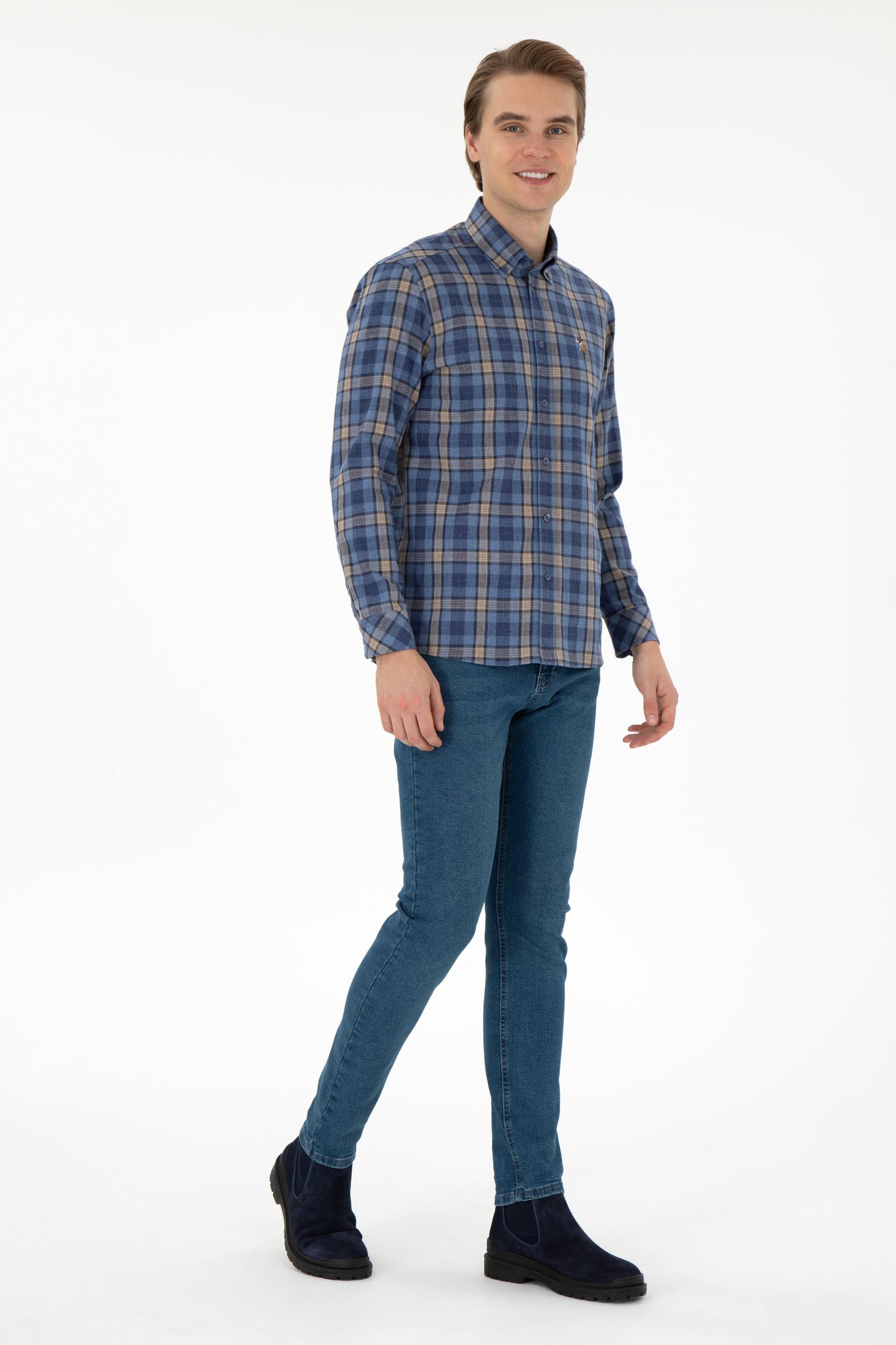 Lacivert ve bej tonlarının birleşimiyle tasarlanmış kareli deseni şıklık sunar. Ekose deseni, hem klasik hem de modern stillerle kolayca uyum sağlamaktadır. Gömleğin regular fit kesimi, vücuda tam oturmakta ancak hareket özgürlüğü sunmaktadır. Hem günlük kullanımda hem de iş ortamlarında rahatlıkla tercih edilebilecek bir stil sunan gömlek, cepsiz tasarımıyla daha sade görünüm yakalamaktadır. Düğmeli yaka detayı tasarıma fonksiyonellik katarken klasik dokunuş sağlamaktadır.