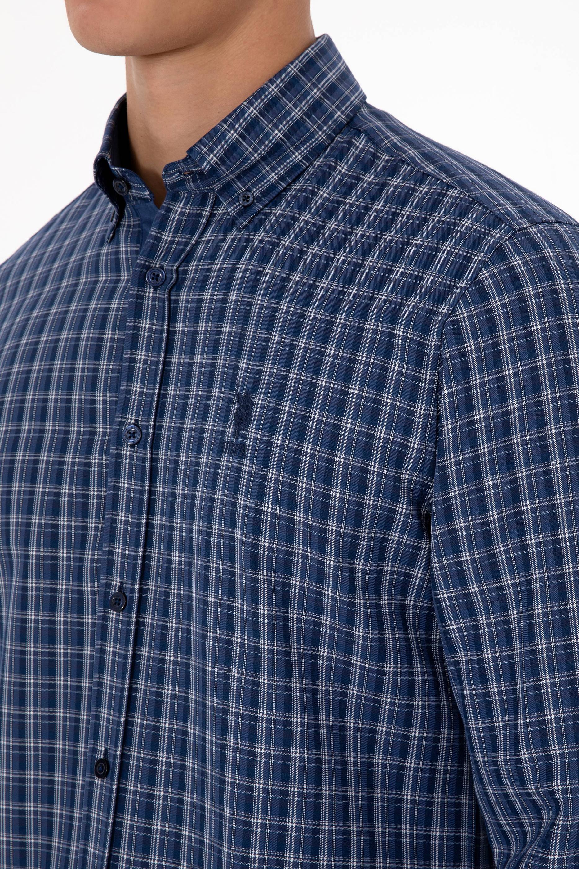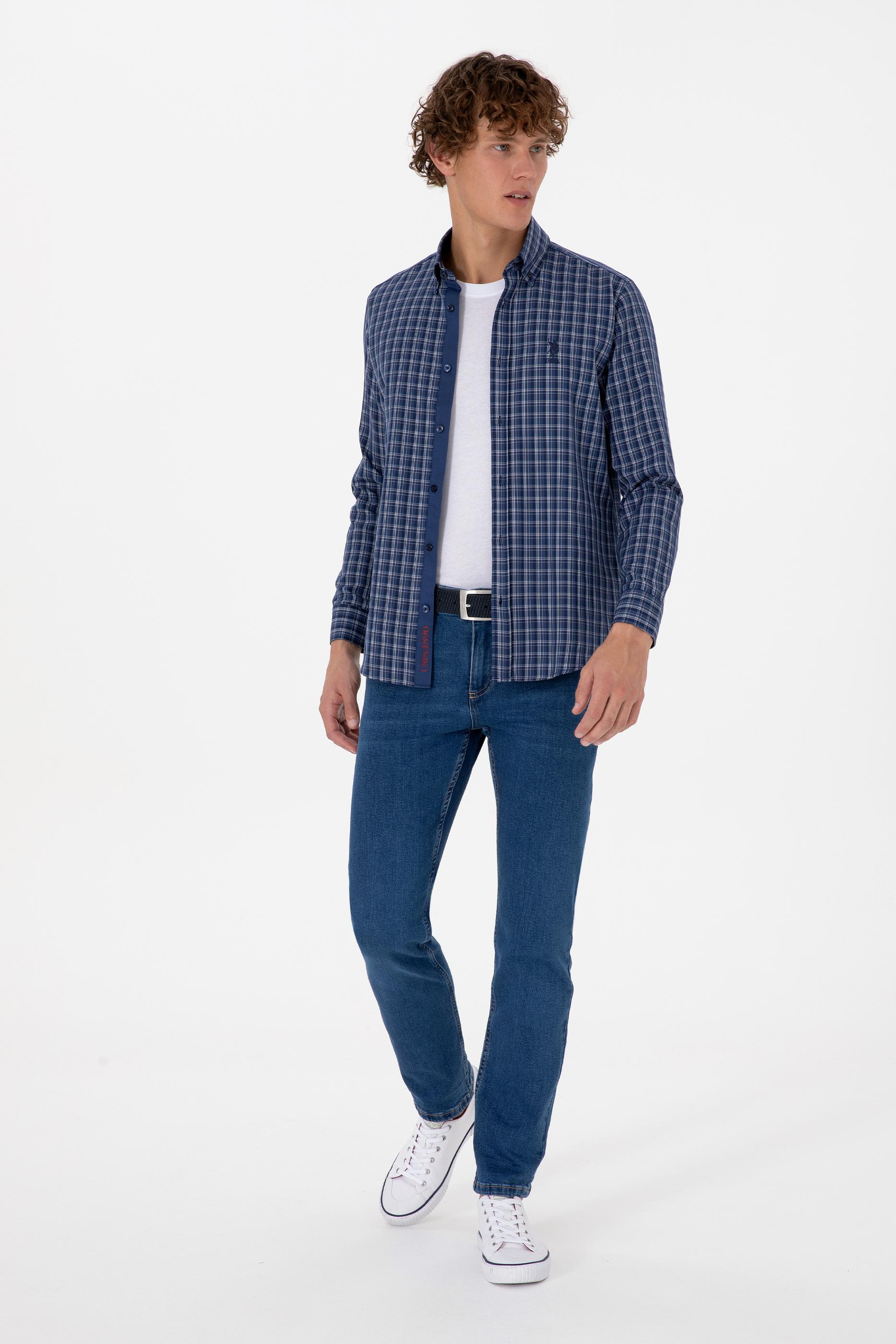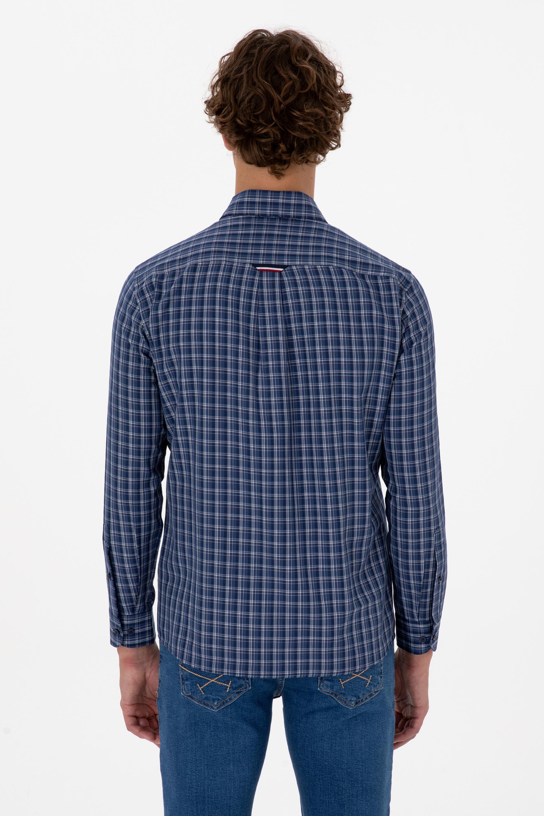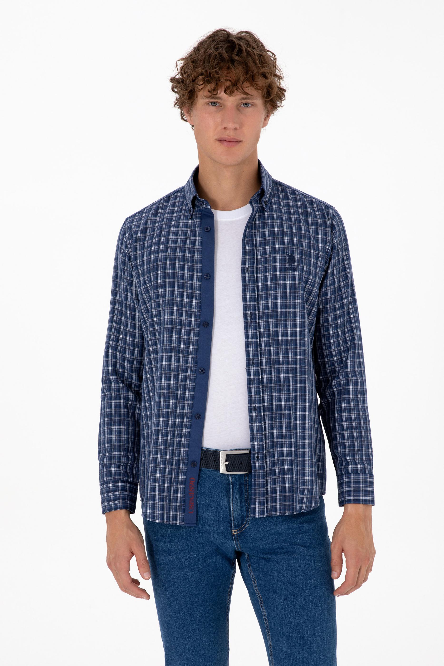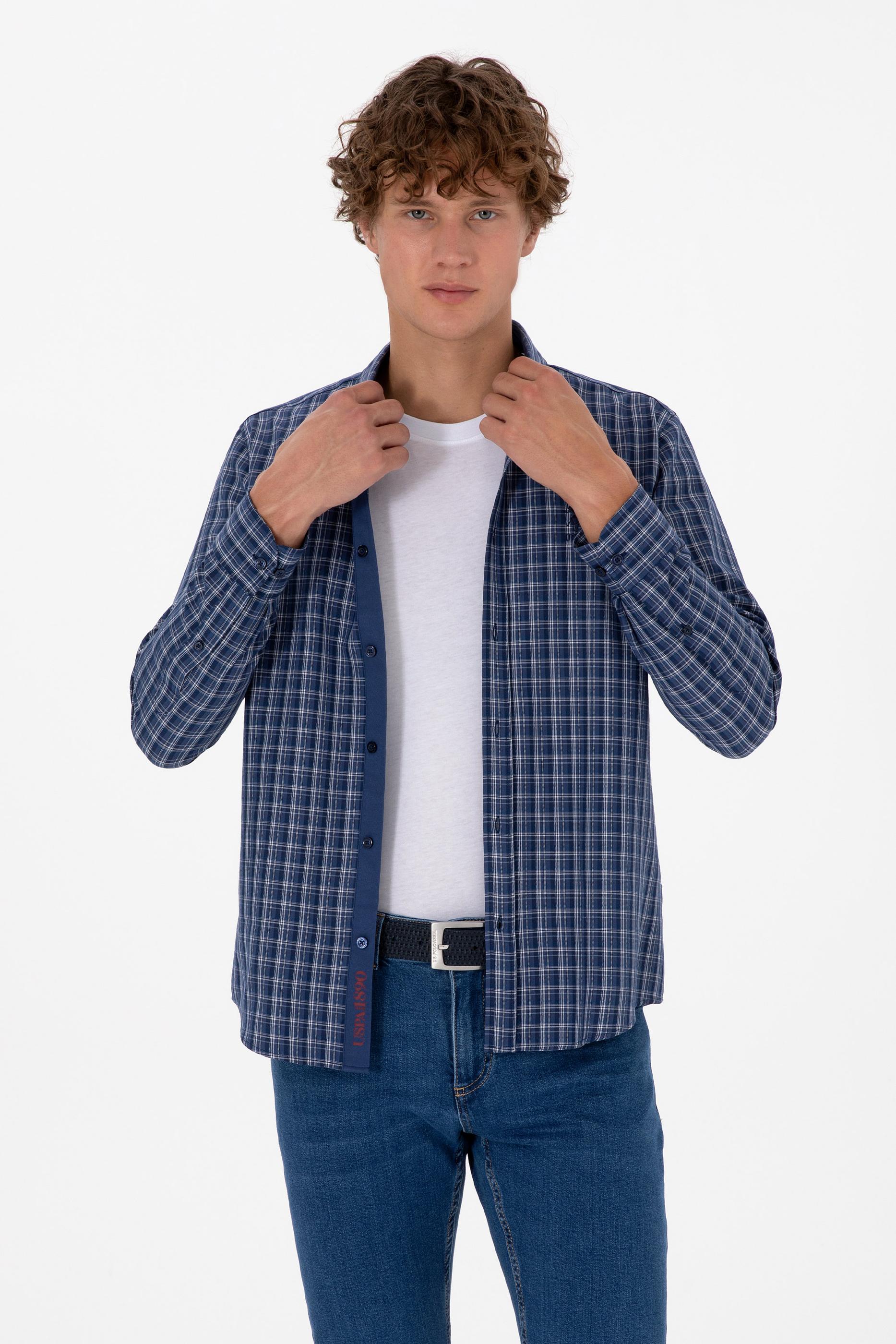 Erkek Mavi Ekoseli Uzun Kollu Lacivert Gömlek