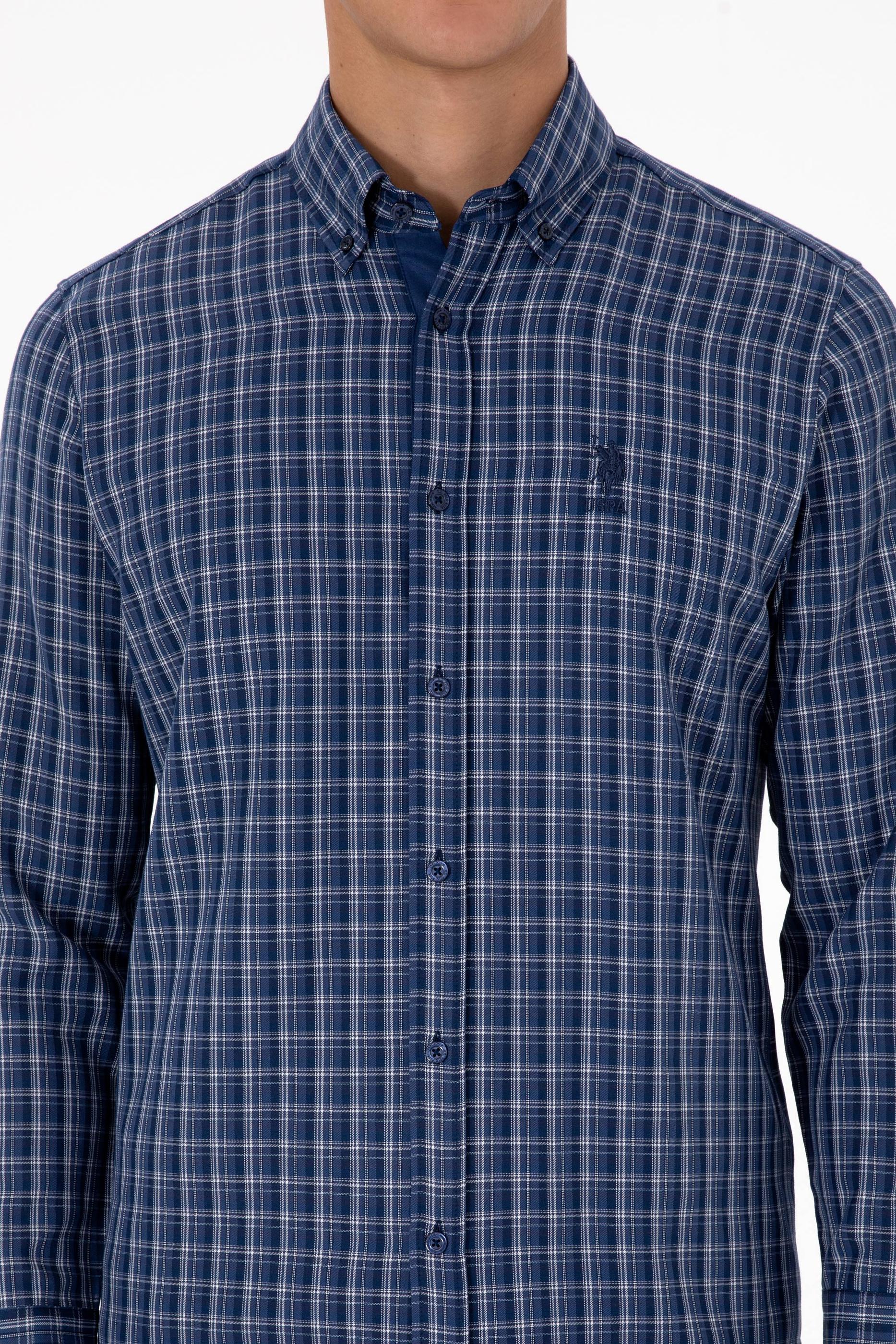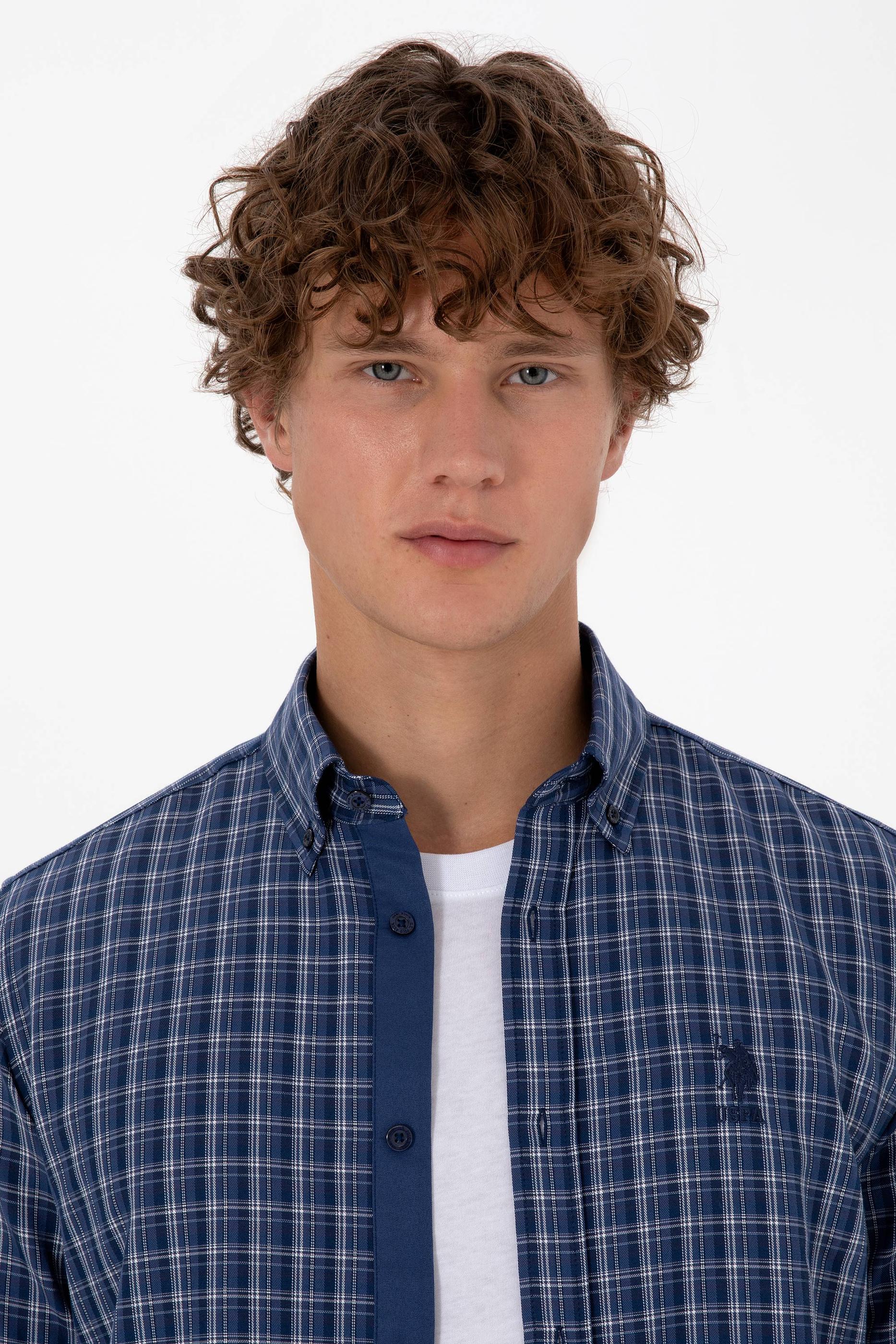 - Erkek Mavi Ekoseli Uzun Kollu Lacivert Gömlek