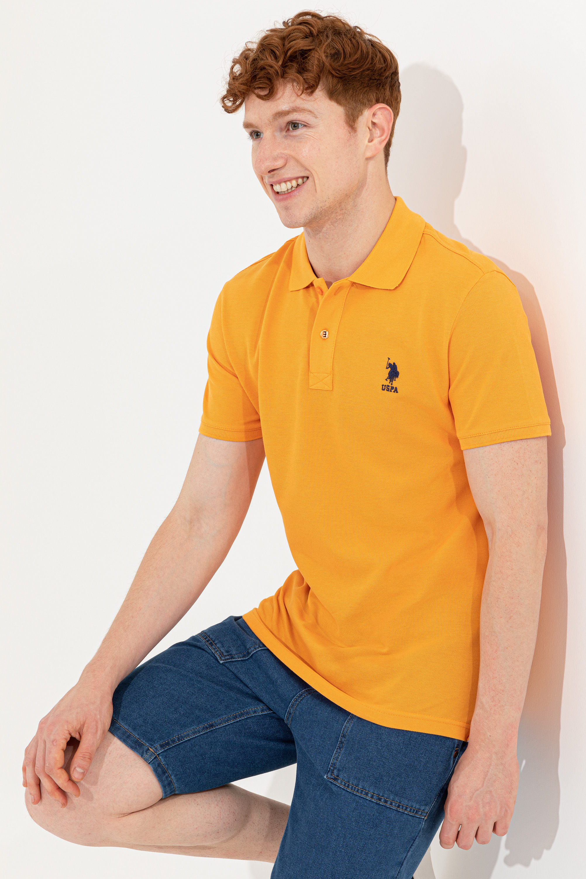Erkek Koyu Sarı Polo Yaka Basic T-Shirt
