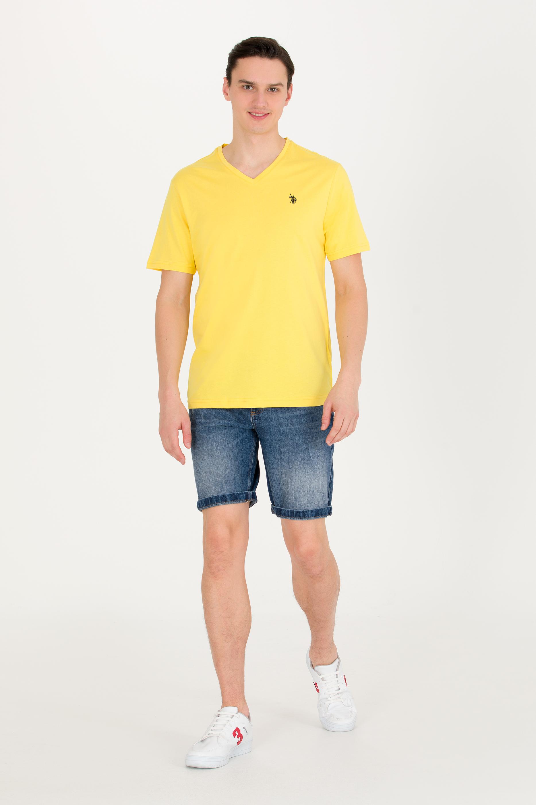 - Erkek Koyu Sarı Basic V Yaka Tişört