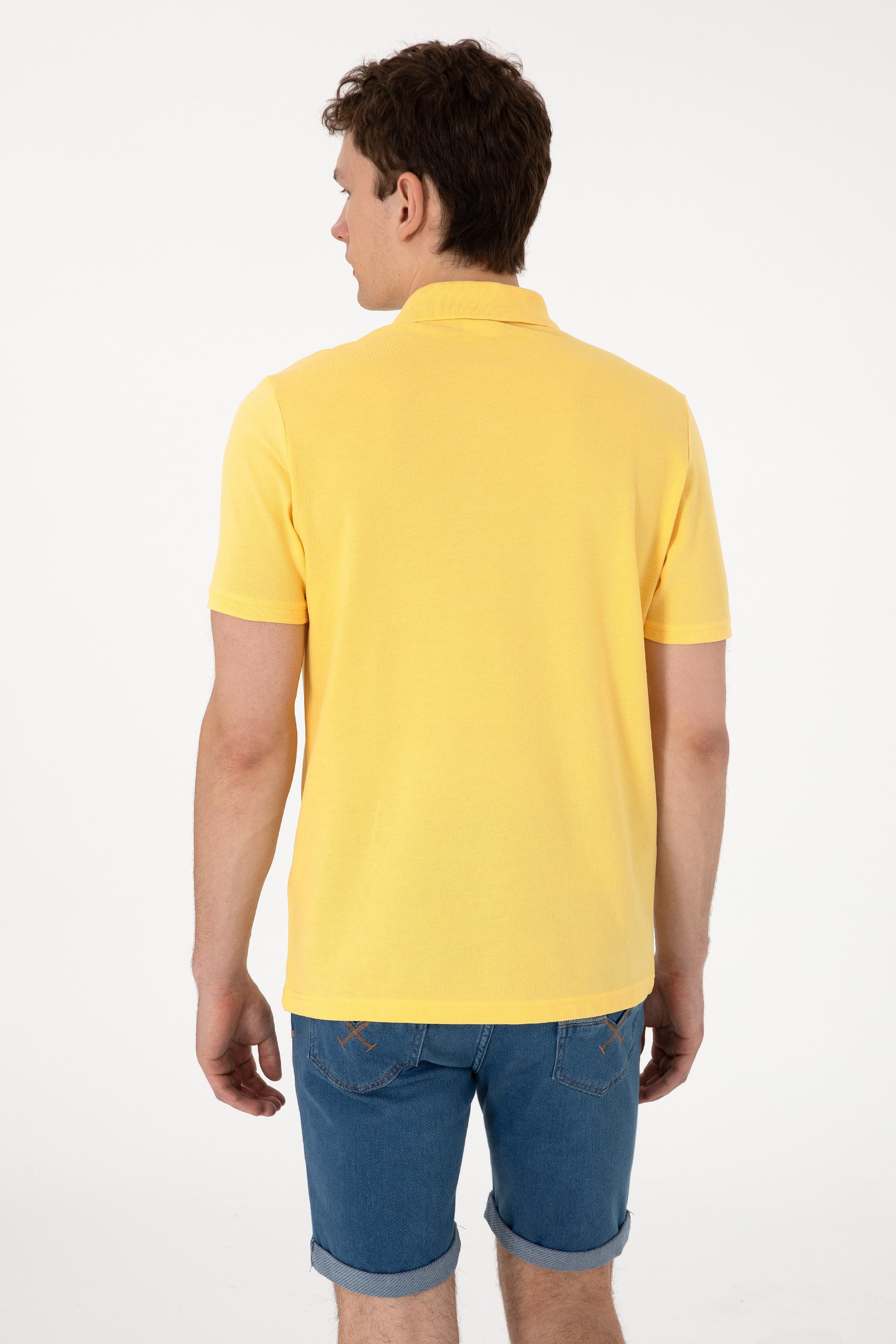 Erkek Regular Fit Polo Yaka Sarı Basic Tişört