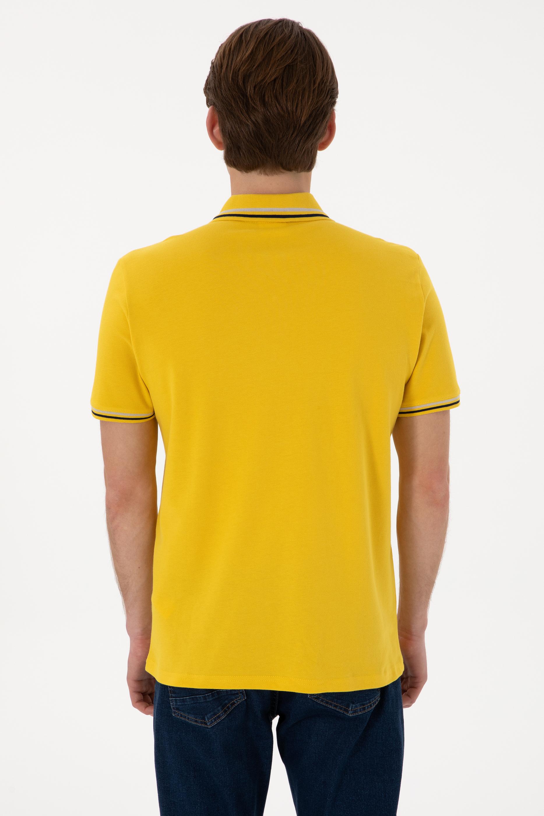 Erkek Regular Fit Polo Yaka Sarı Basic Tişört