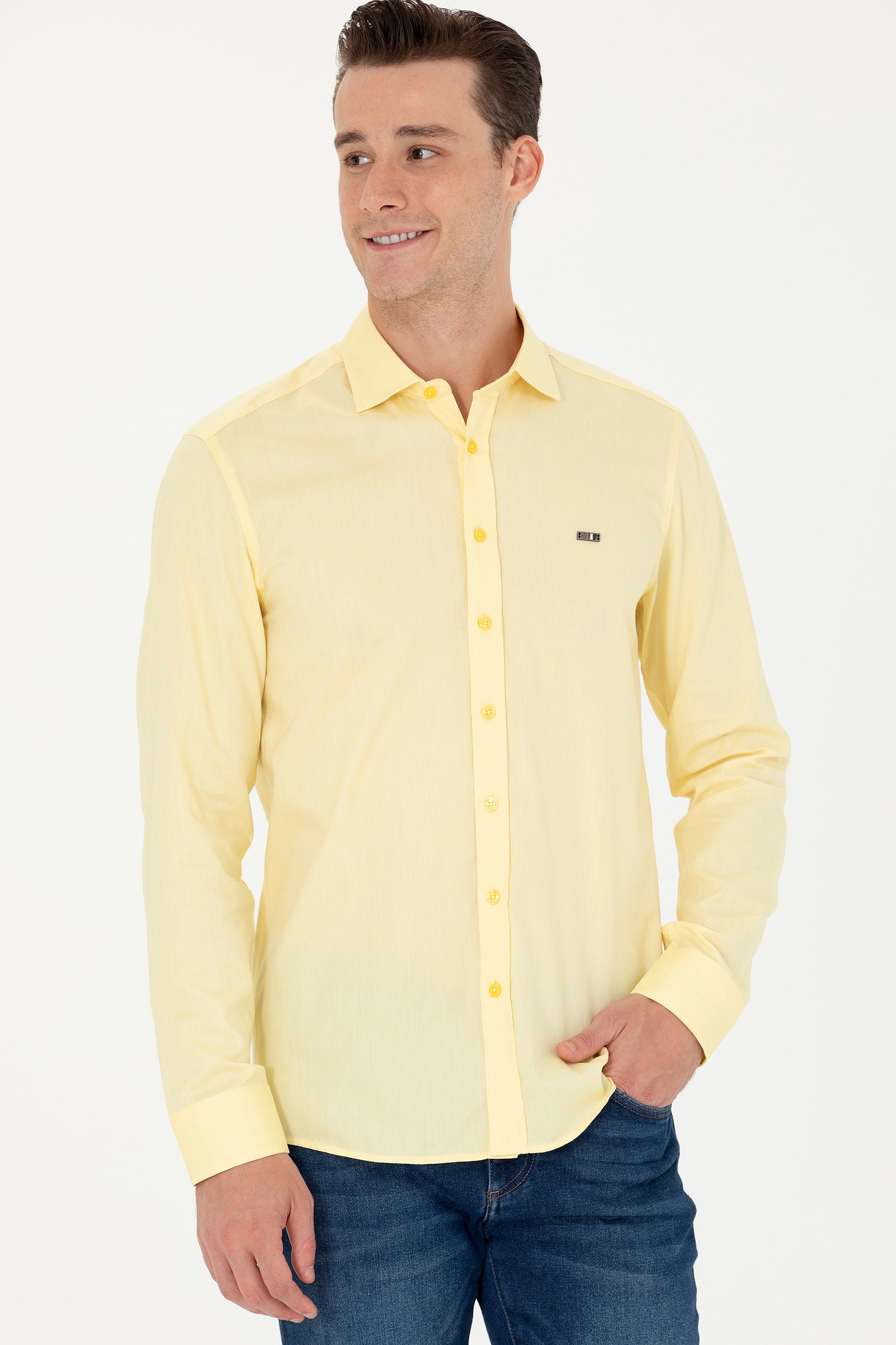 - Erkek Sarı Uzun Kollu Basic Gömlek