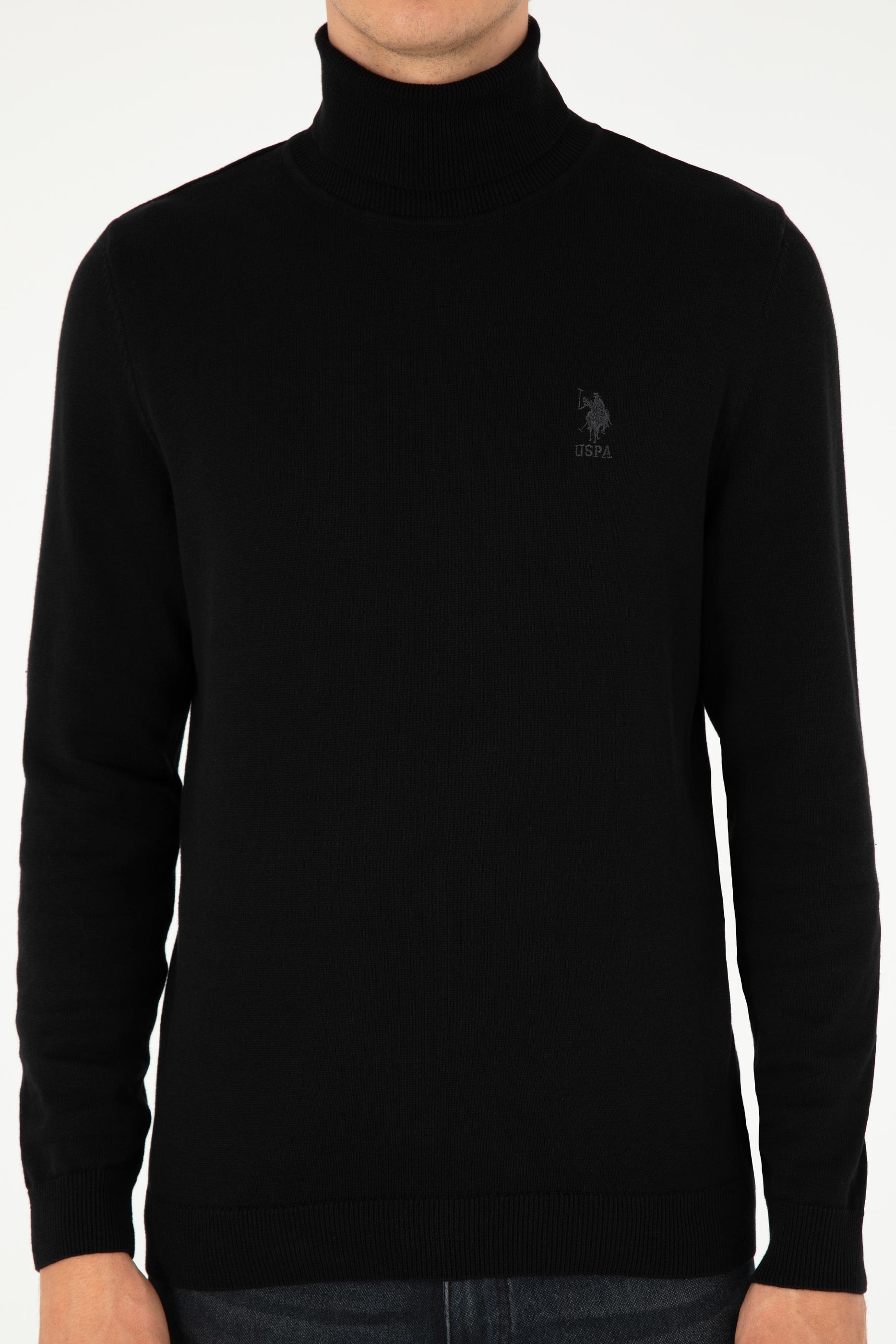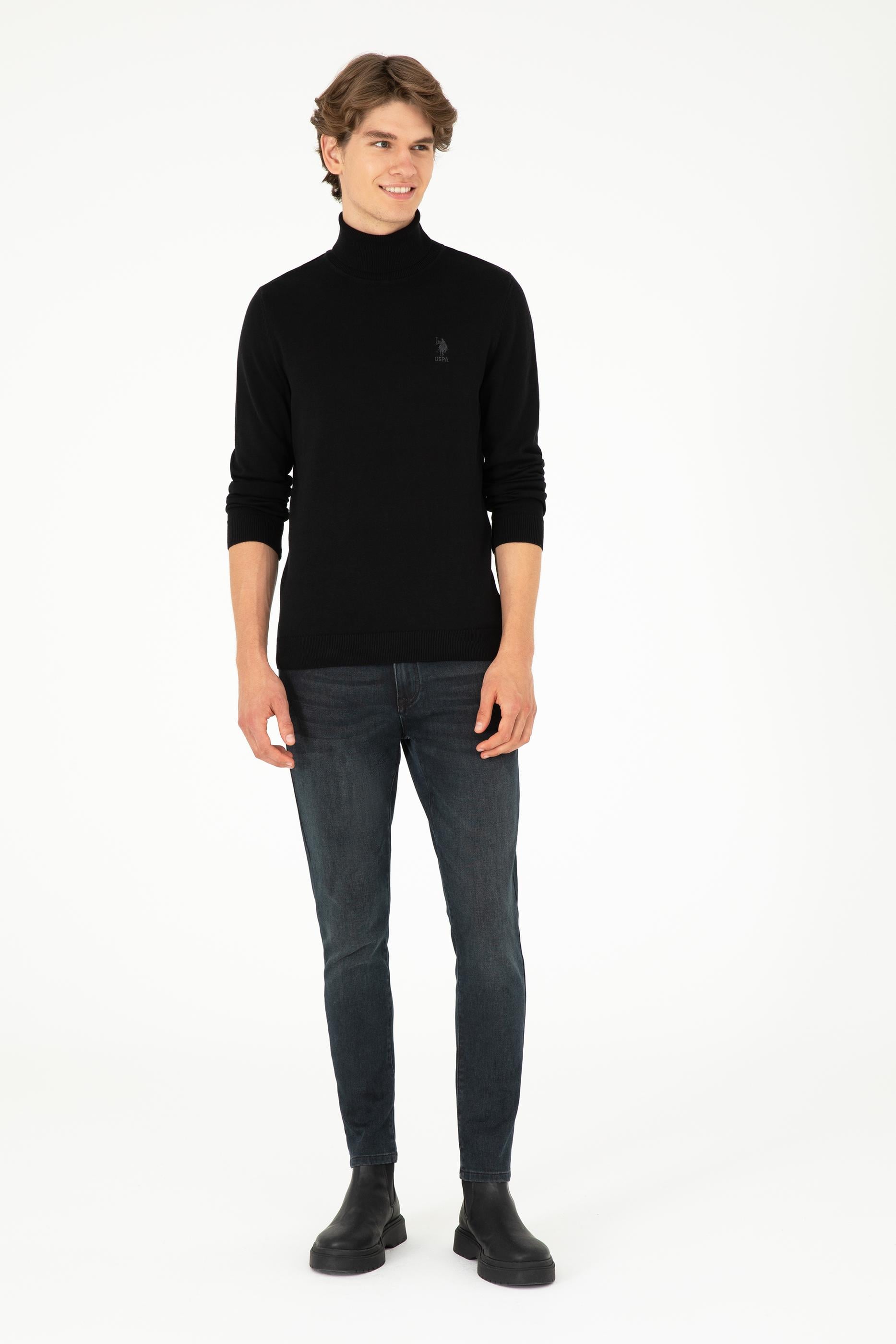 Erkek Slim Fit Boğazlı Yaka Siyah Basic Kazak
