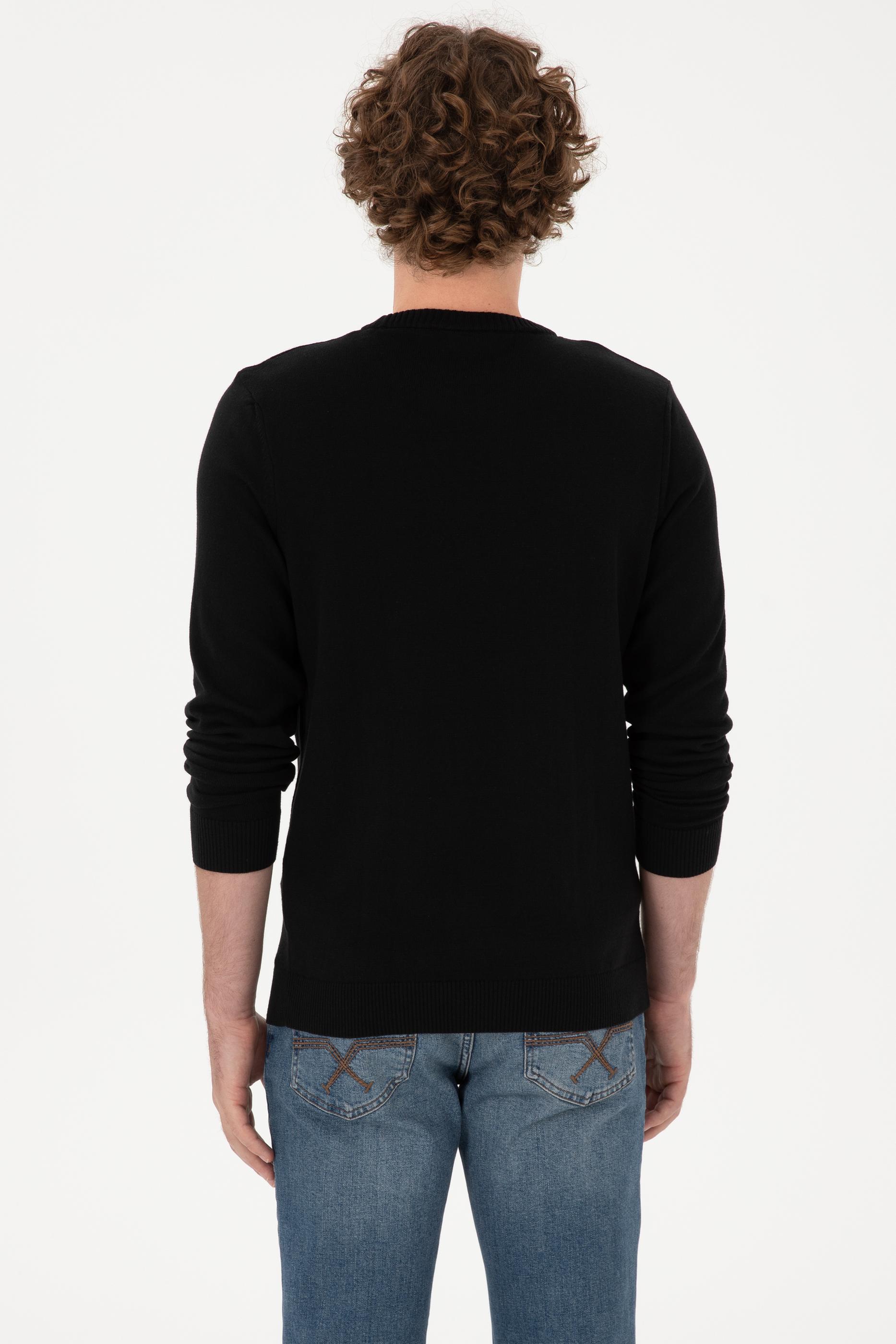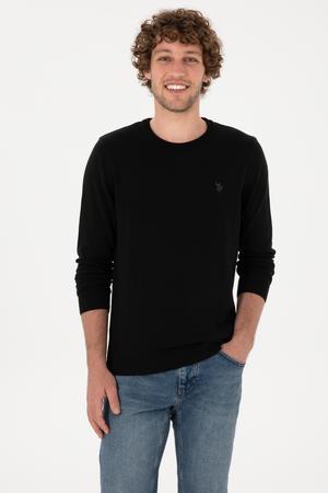 Erkek Slim Fit Bisiklet Yaka Siyah Basic Kazak