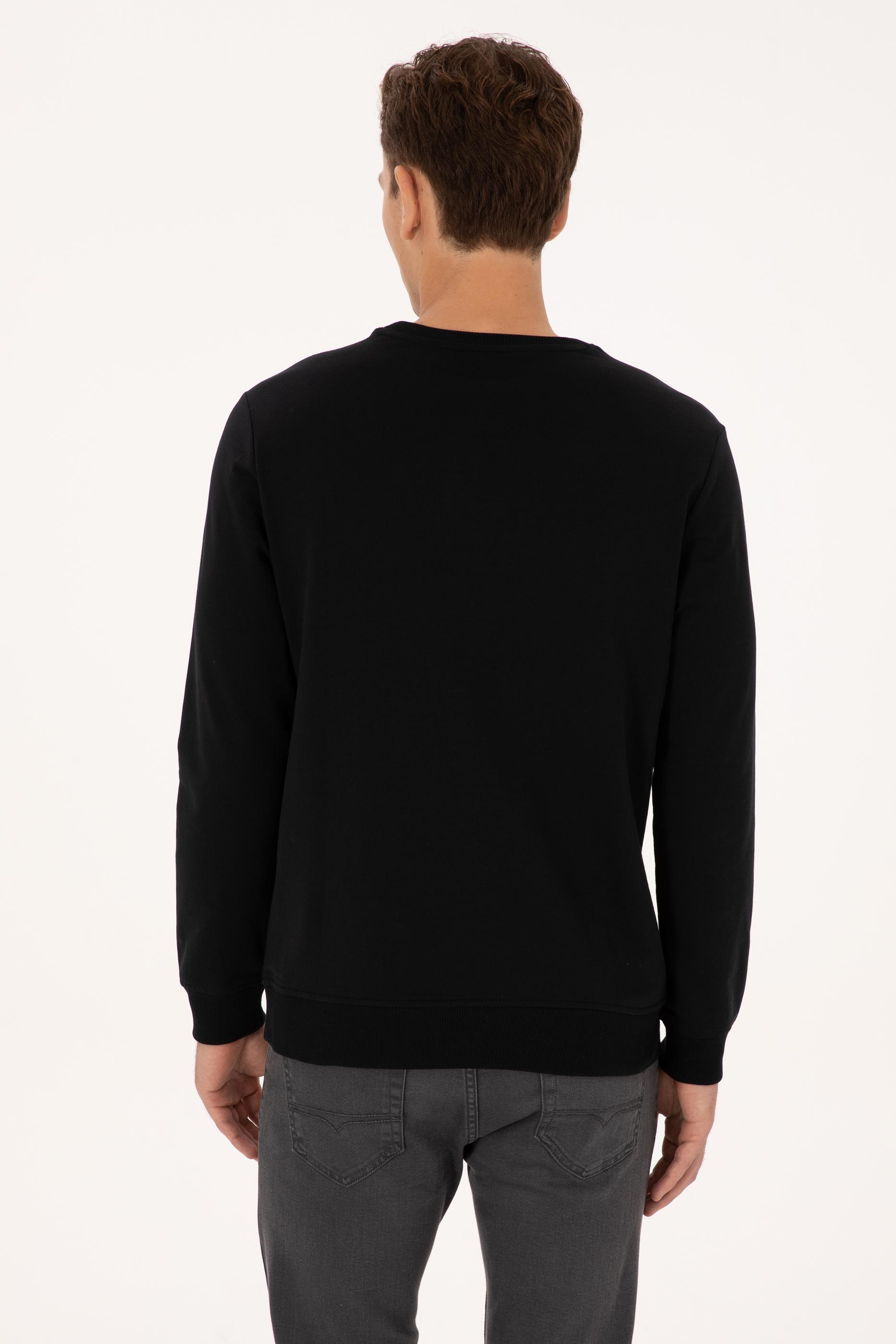 Erkek Regular Fit Bisiklet Yaka Siyah İnce Basic Sweatshirt