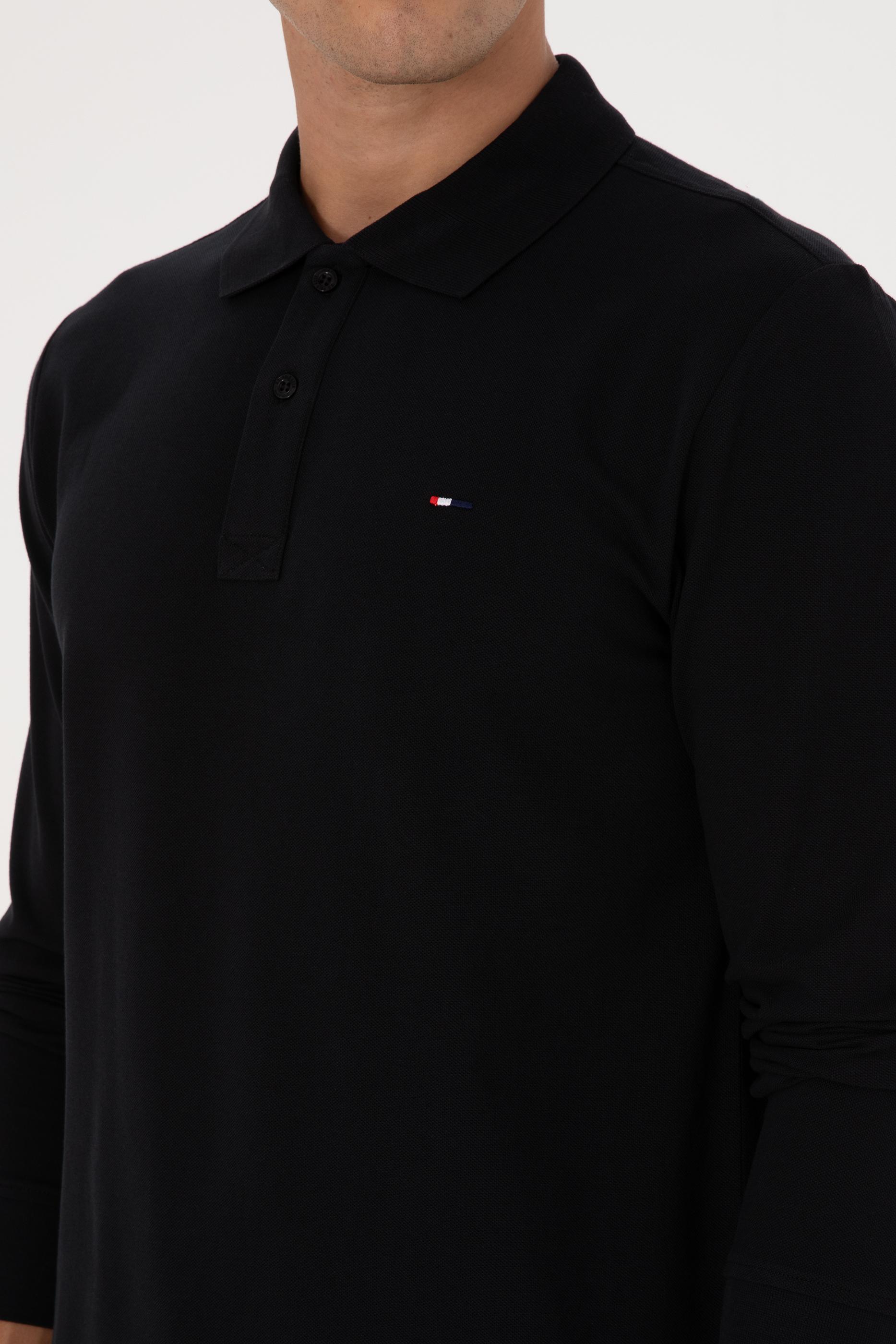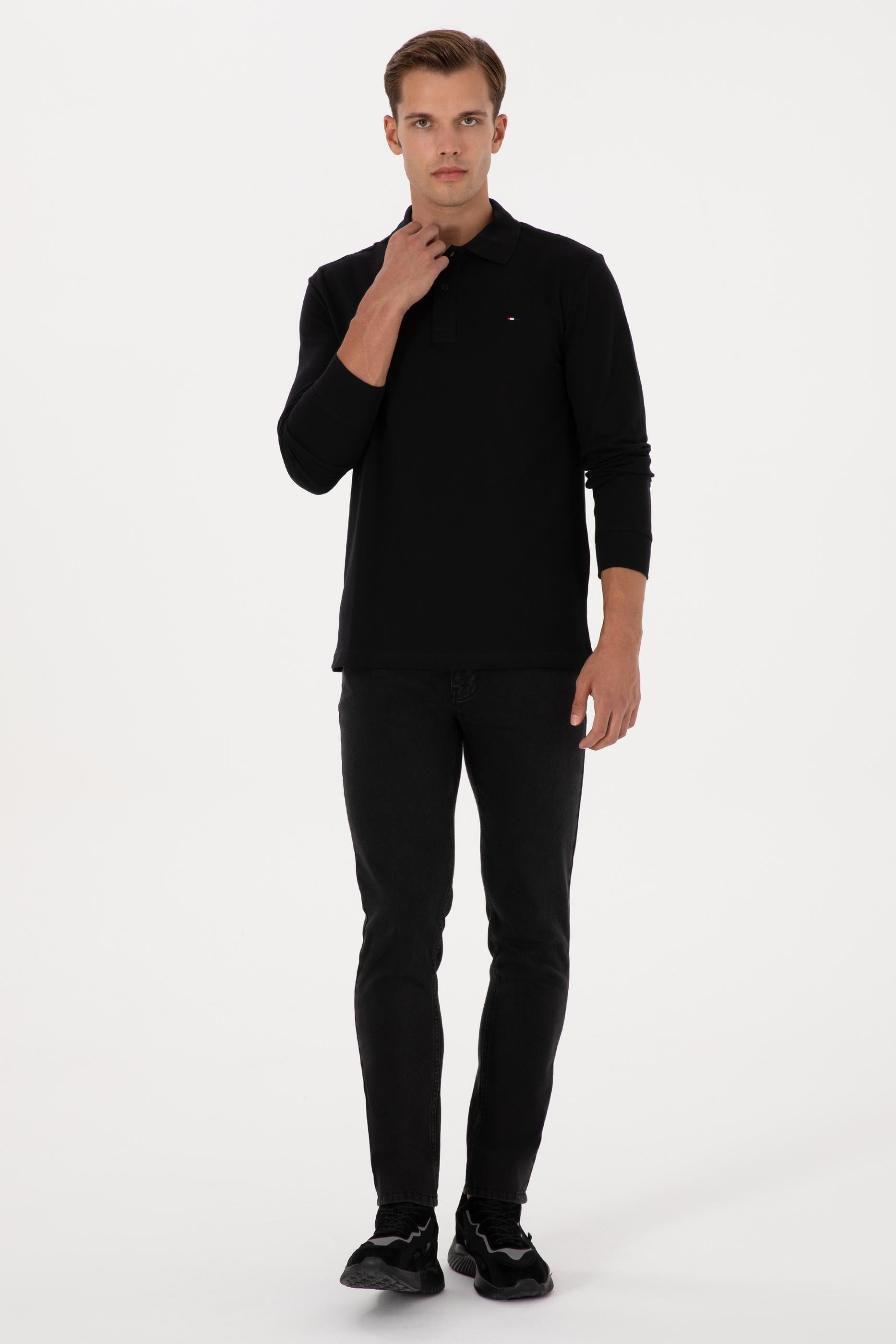 Erkek Regular Fit Polo Yaka Siyah Basic Sweatshirt
