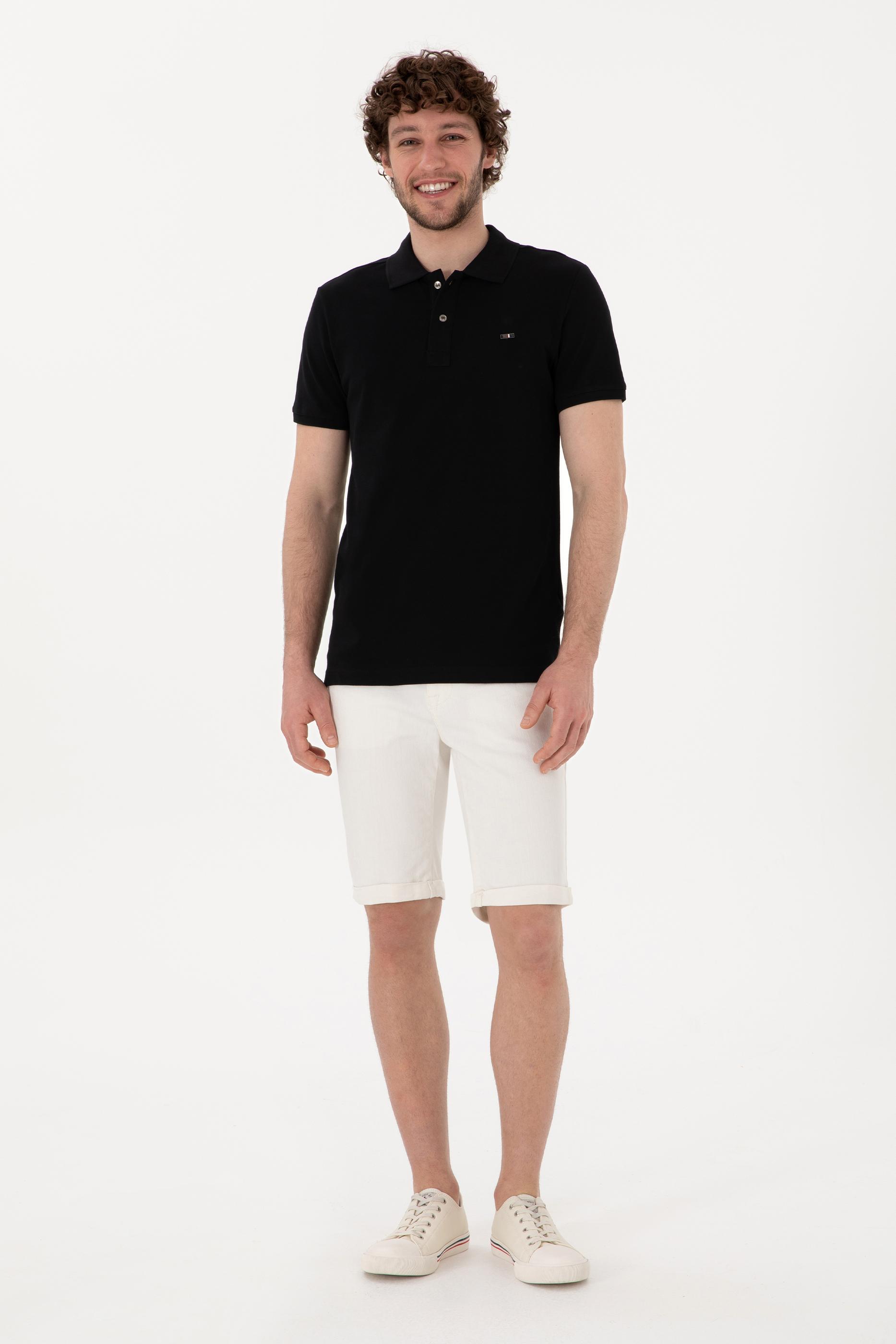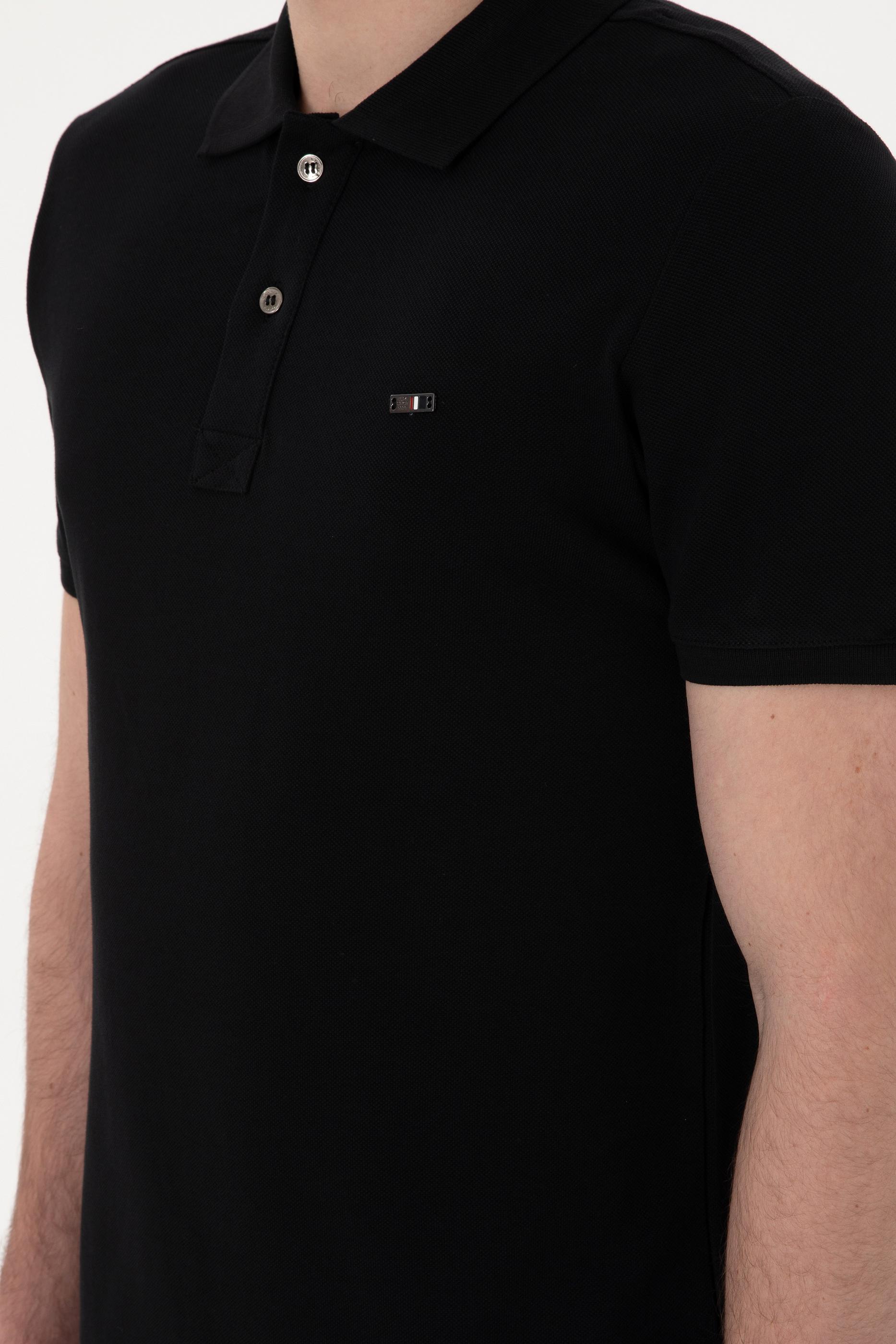 - Erkek Slim Fit Polo Yaka Siyah Basic Tişört