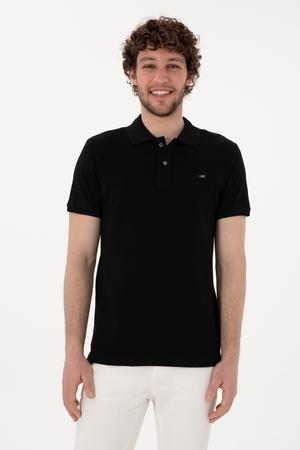 Erkek Slim Fit Polo Yaka Siyah Basic Tişört