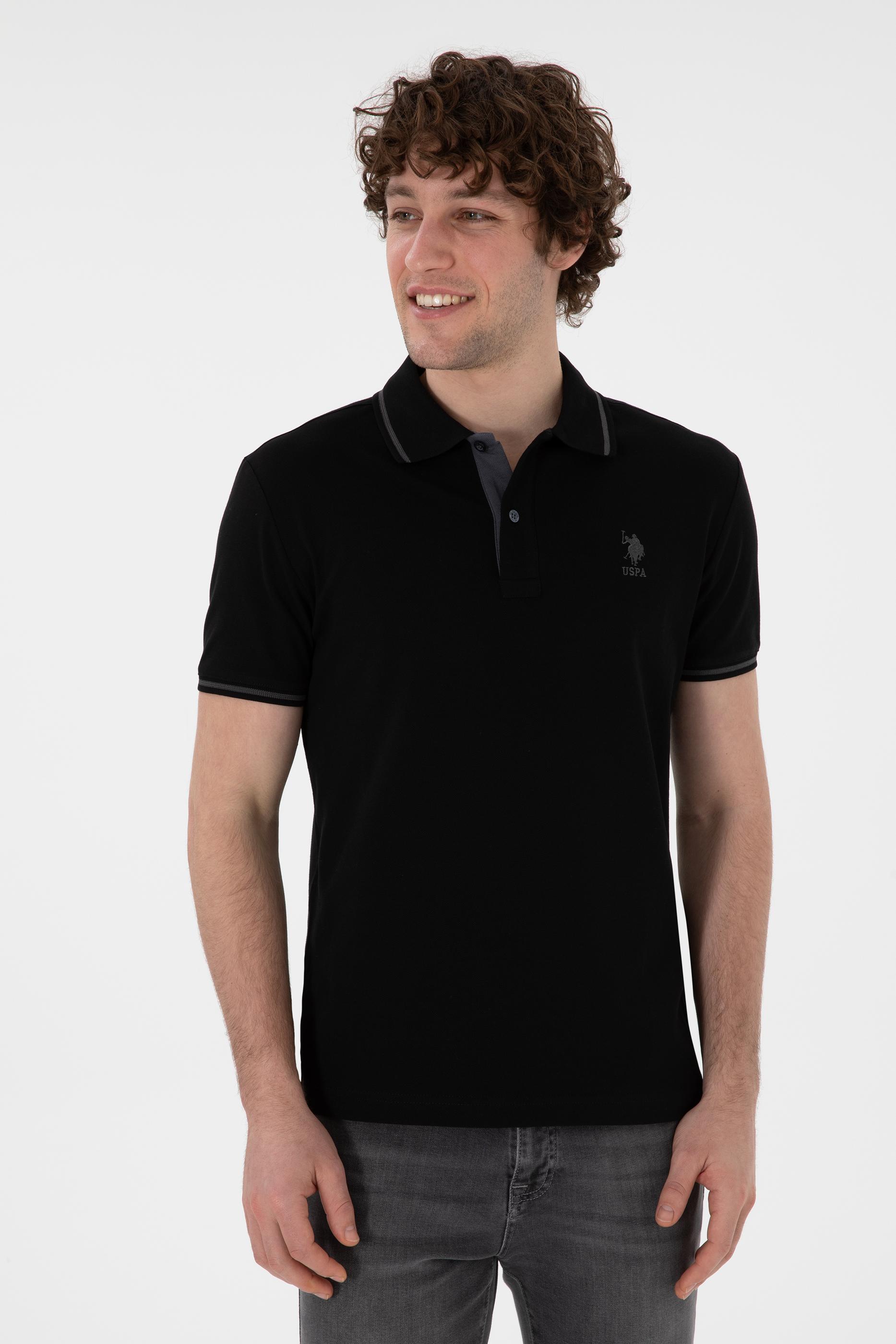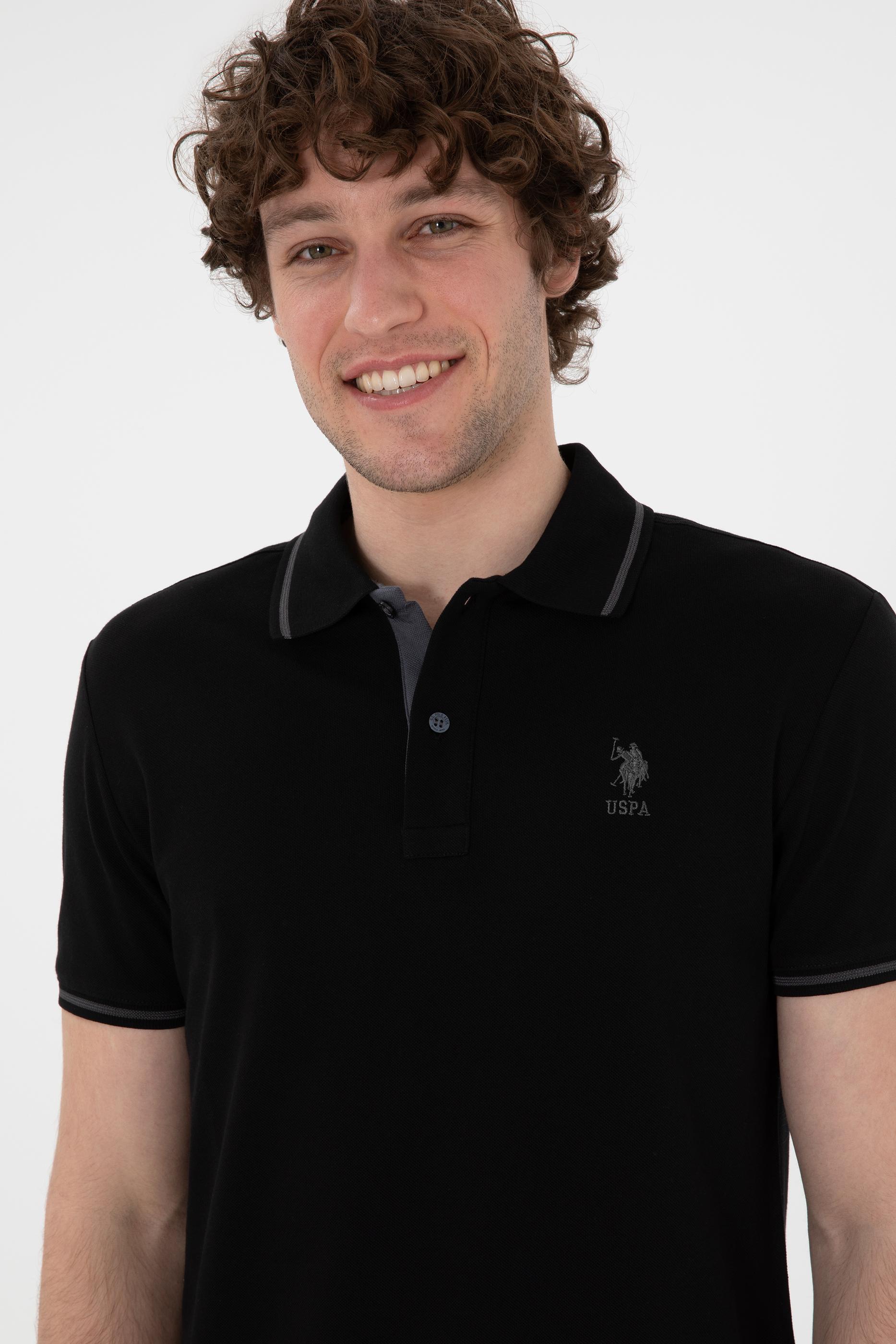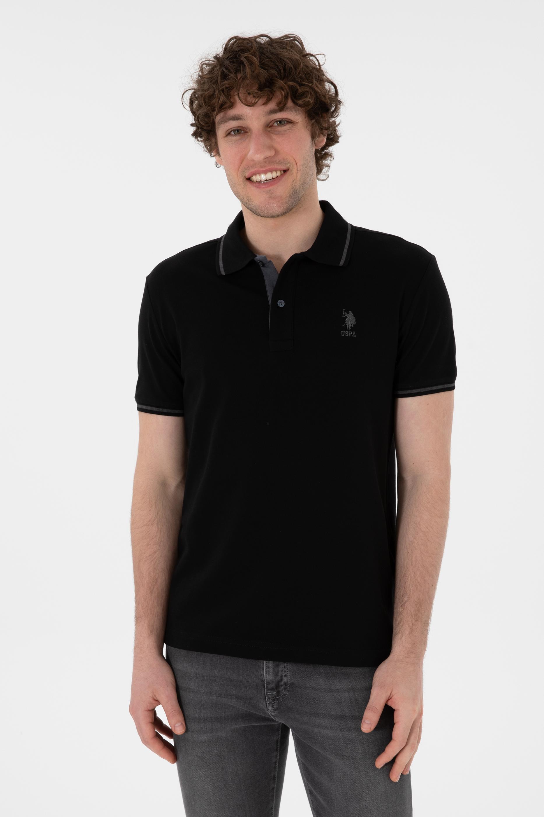 - Erkek Slim Fit Polo Yaka Siyah Basic Tişört
