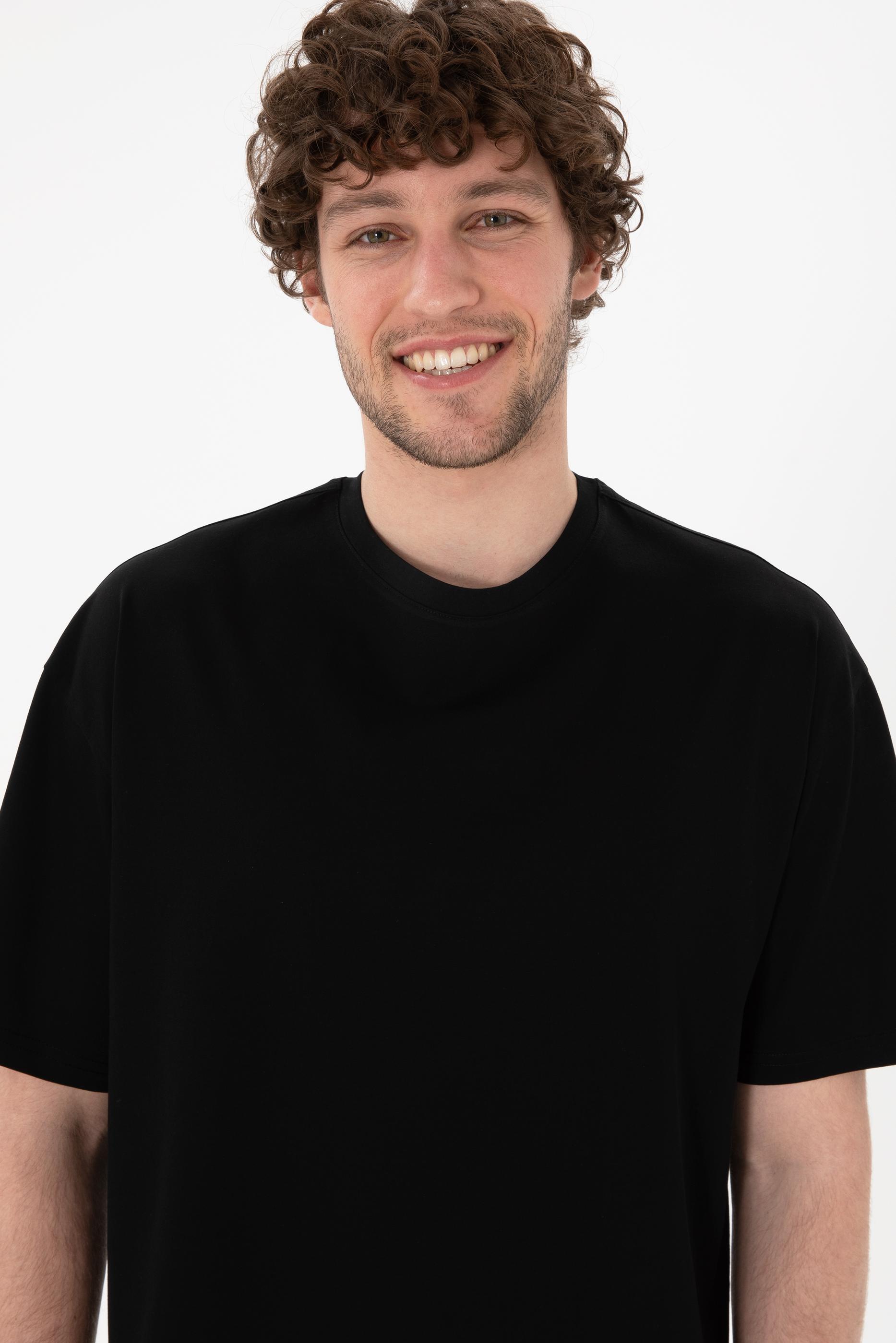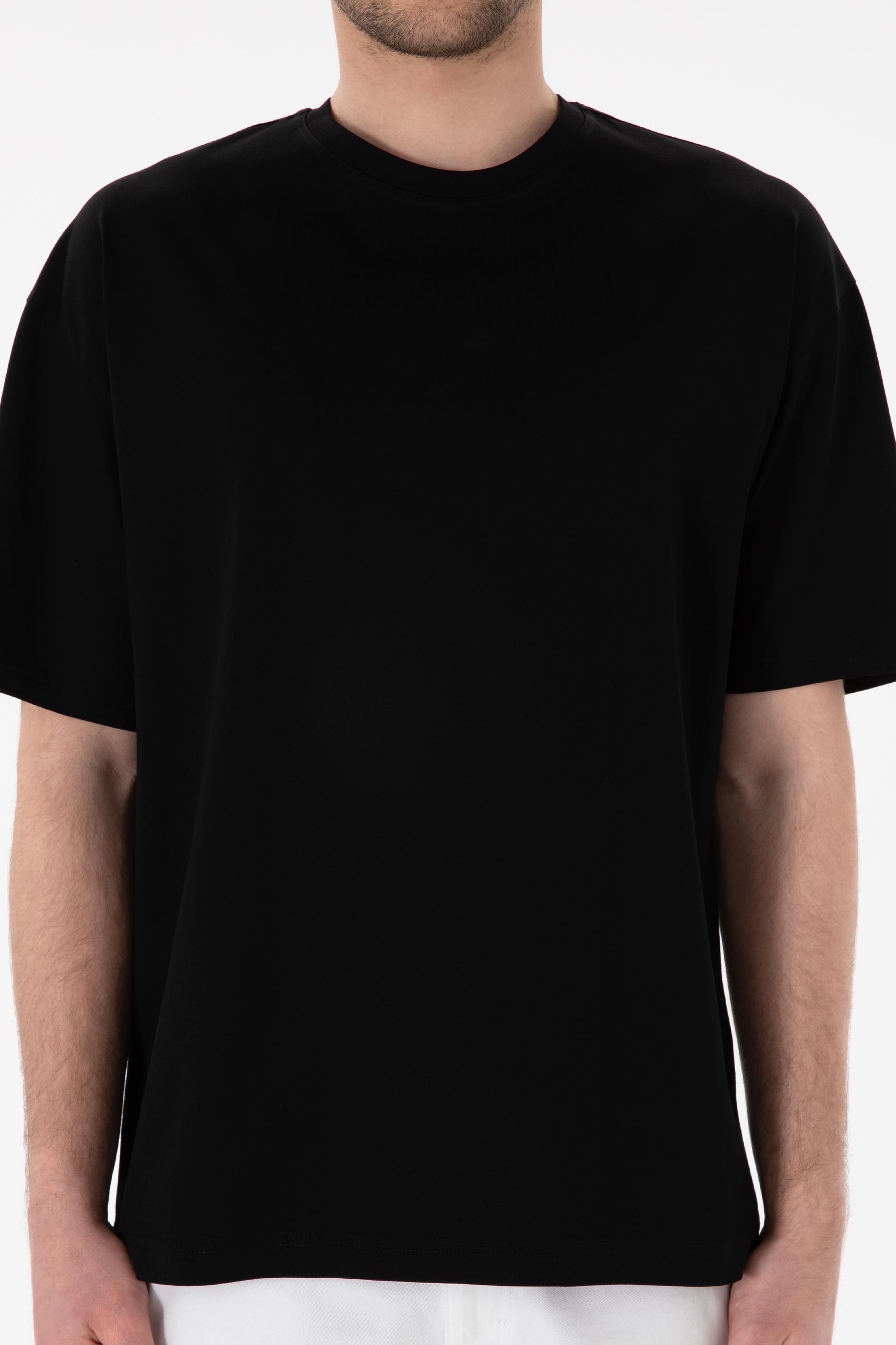 Erkek Comfort Fit Bisiklet Yaka Siyah Merserize Basic Tişört