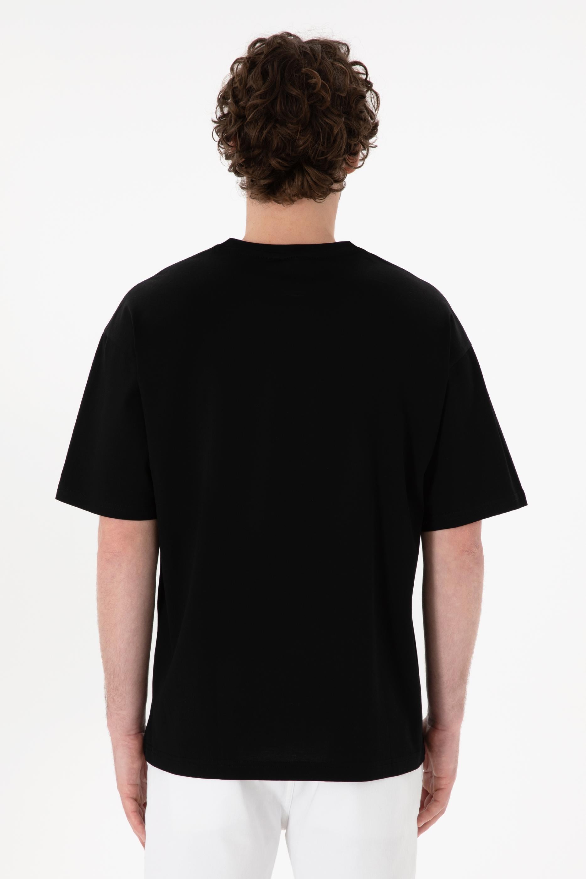 - Erkek Comfort Fit Bisiklet Yaka Siyah Merserize Basic Tişört