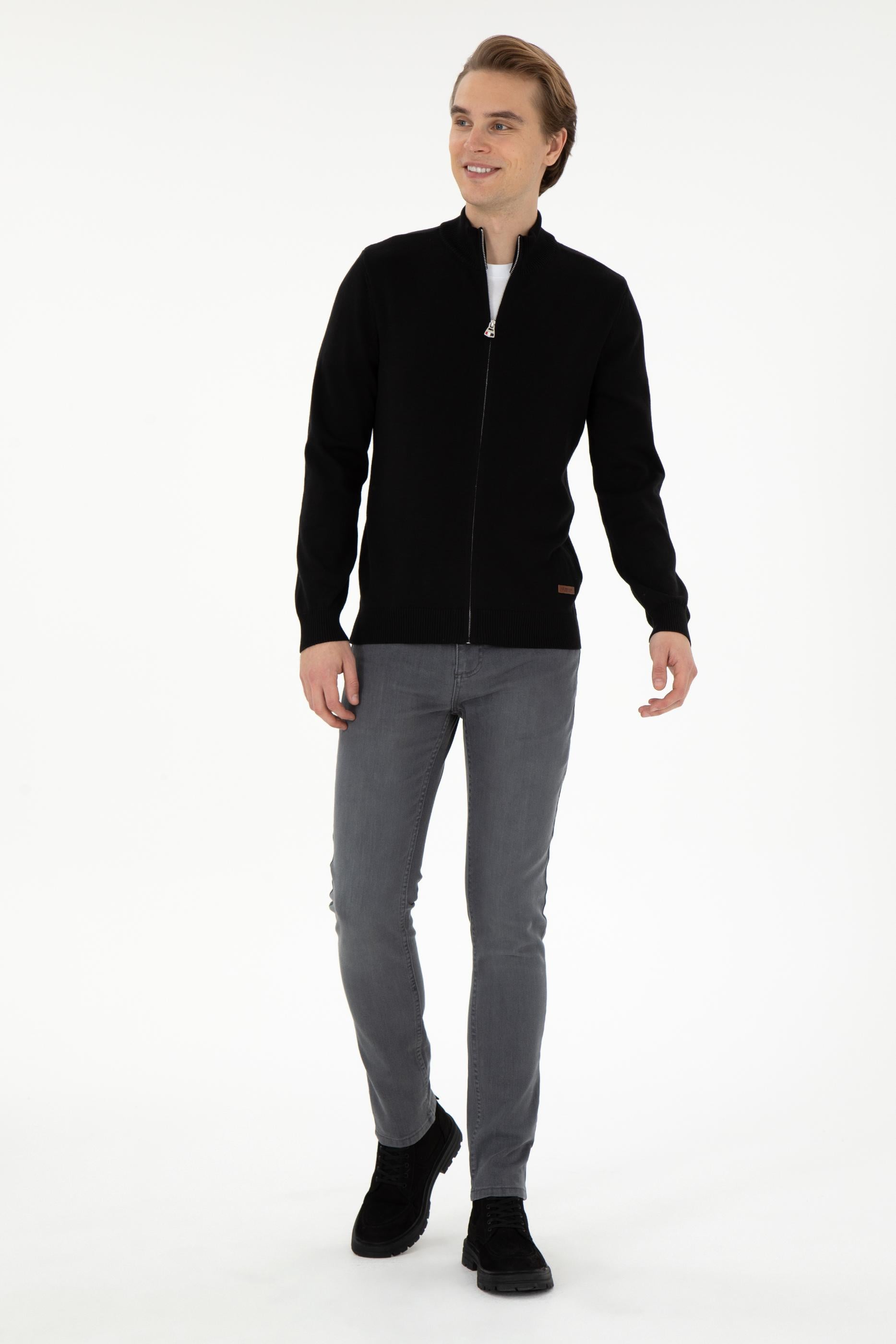 Erkek Siyah Basic Triko Hırka