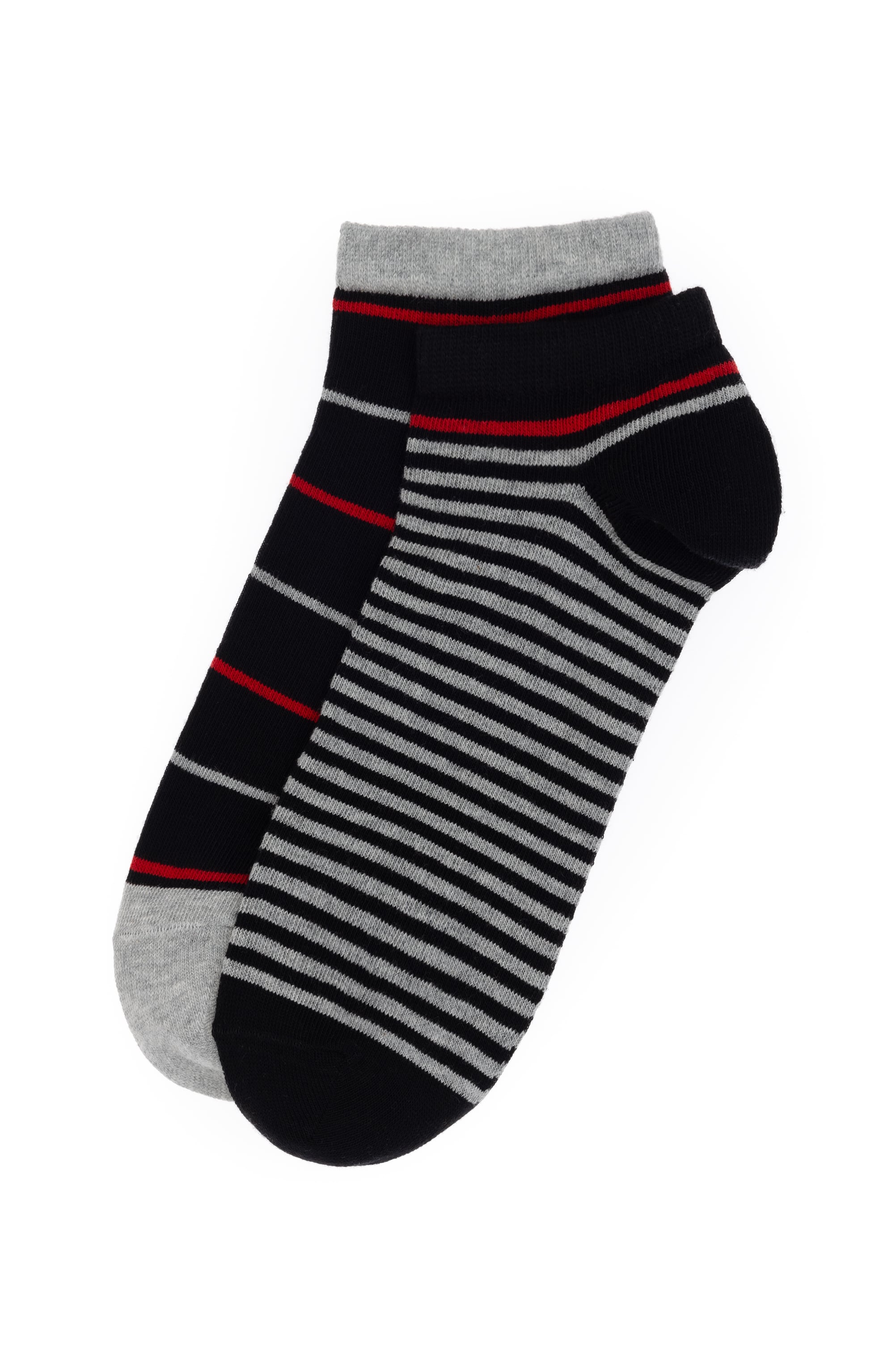 Erkek Siyah 2'li Gri Çizgili Patik Çorap