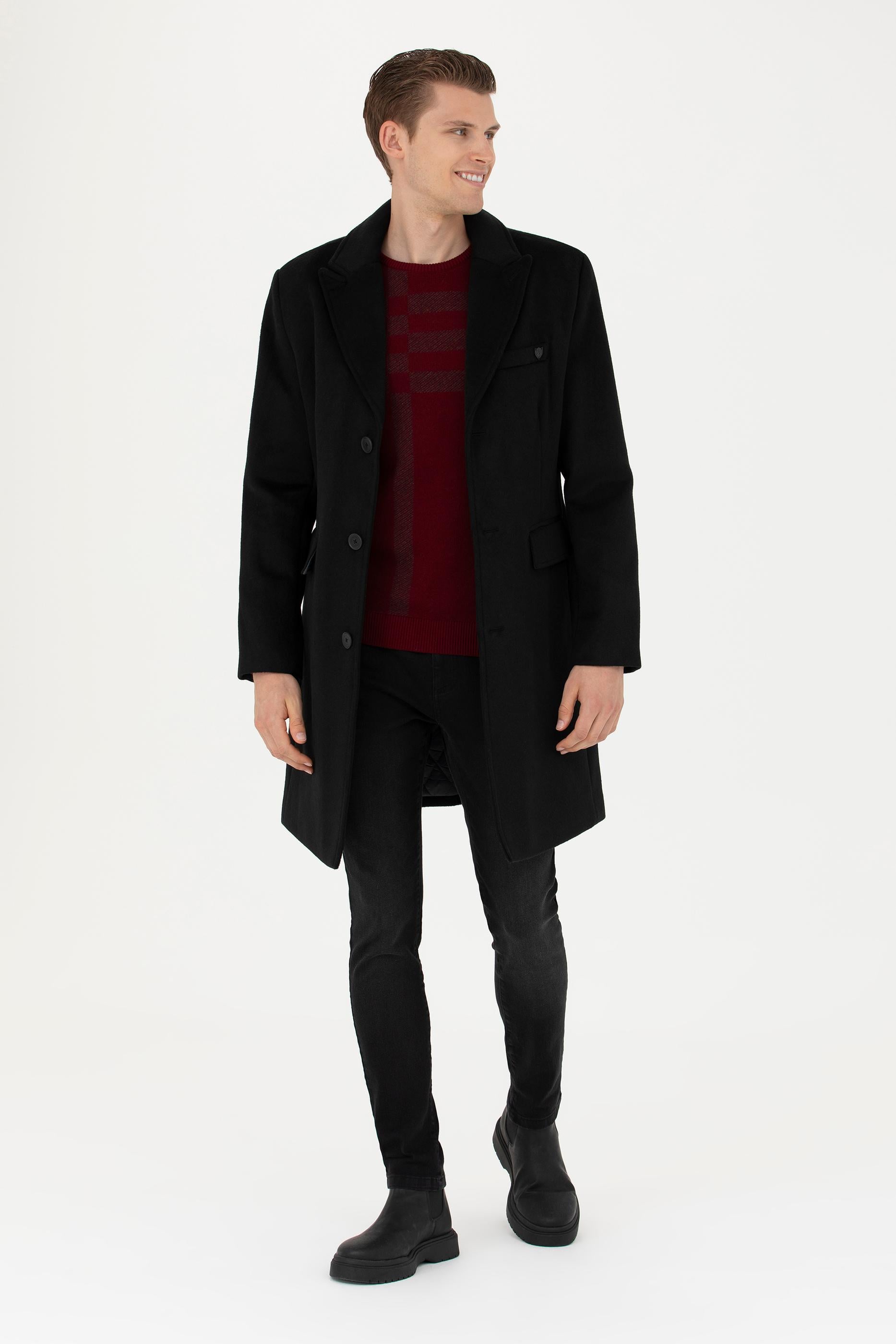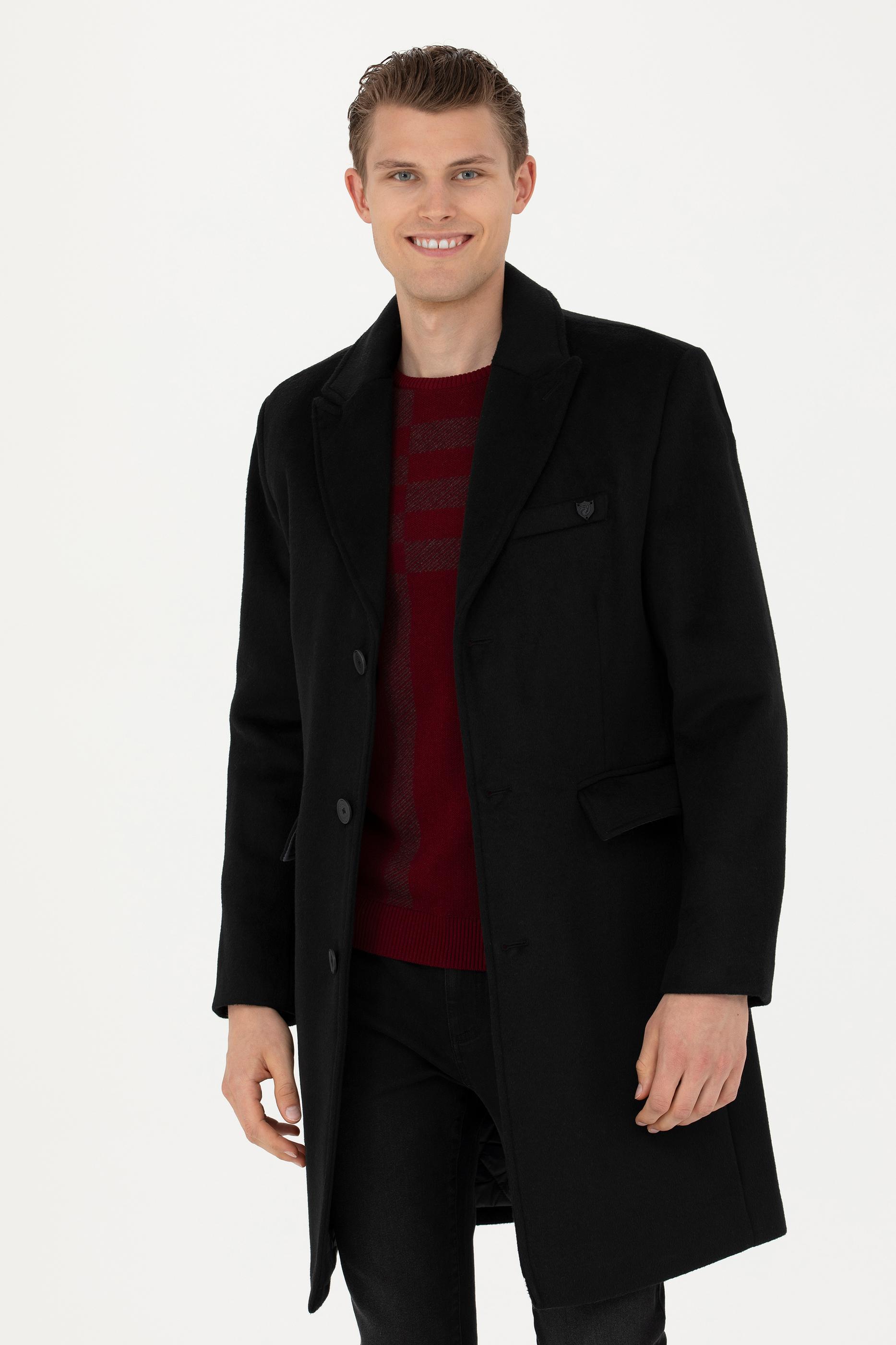 Erkek Siyah Kaşe Kaban