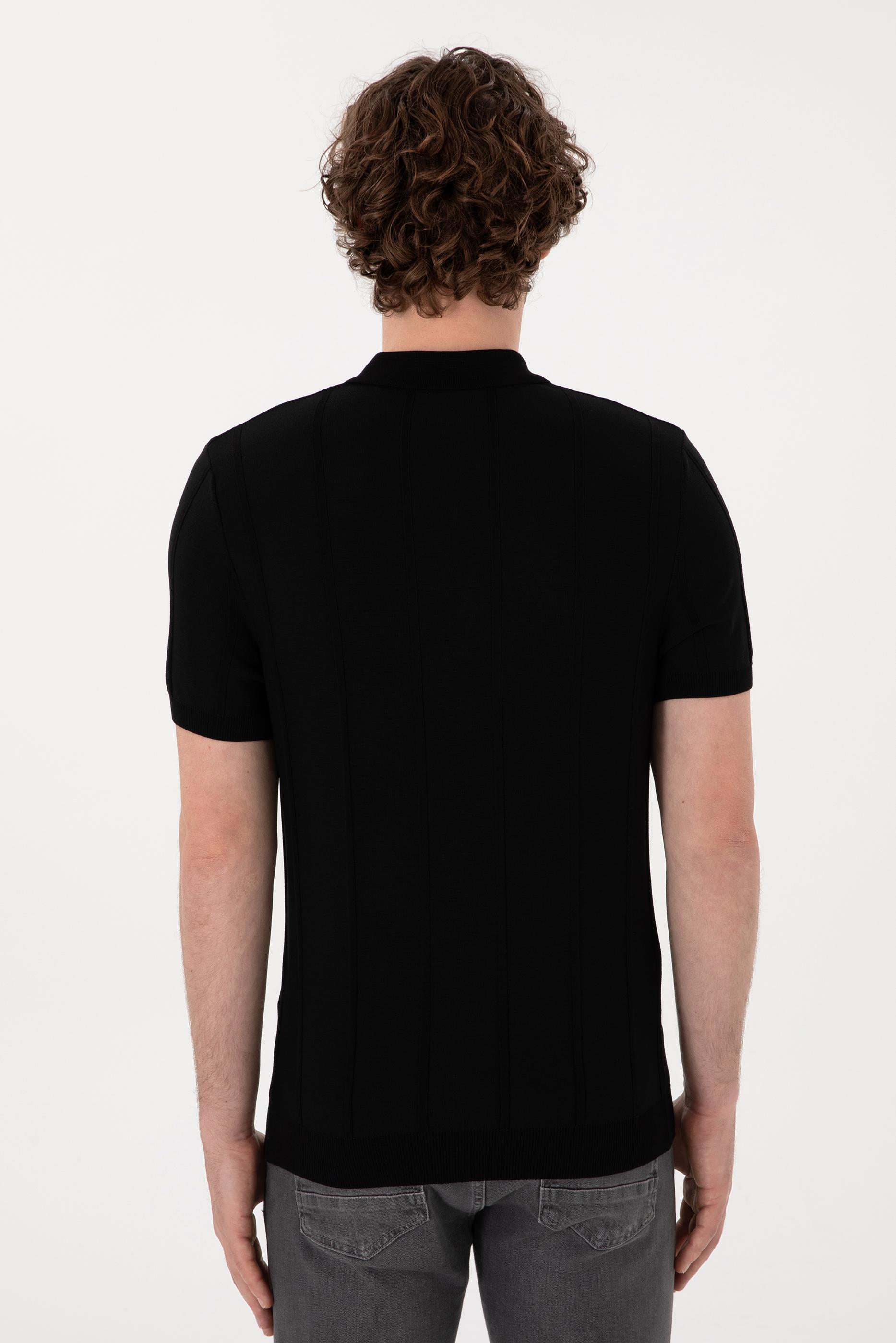 - Erkek Slim Fit Polo Yaka Siyah Tişört