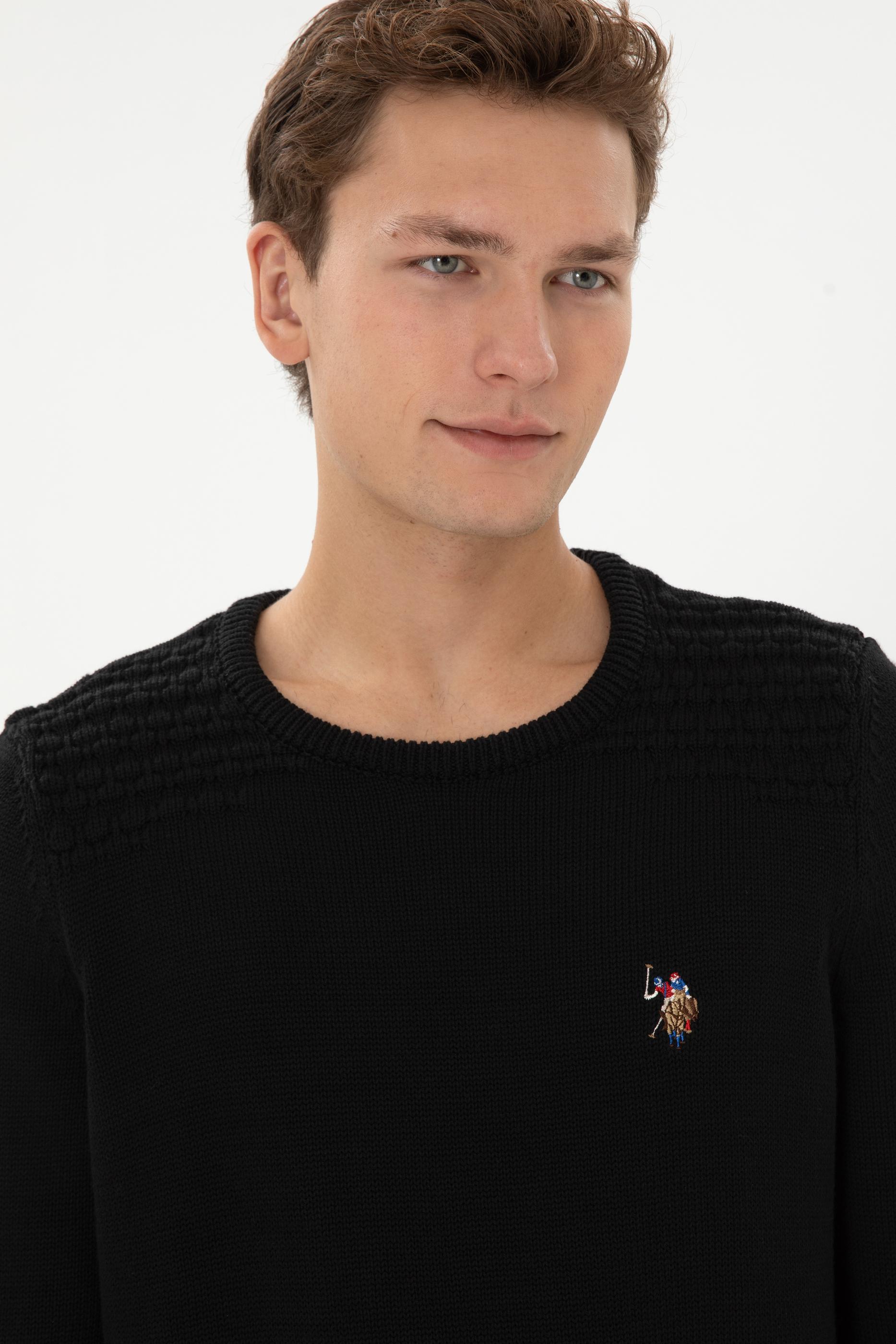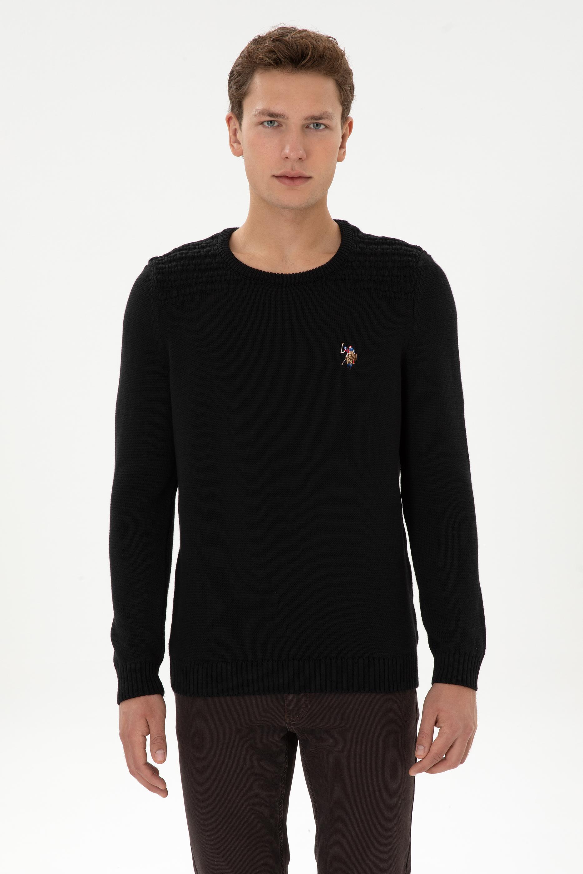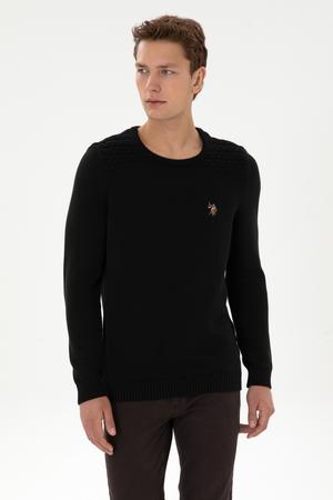 Erkek Slim Fit Bisiklet Yaka Siyah Kazak