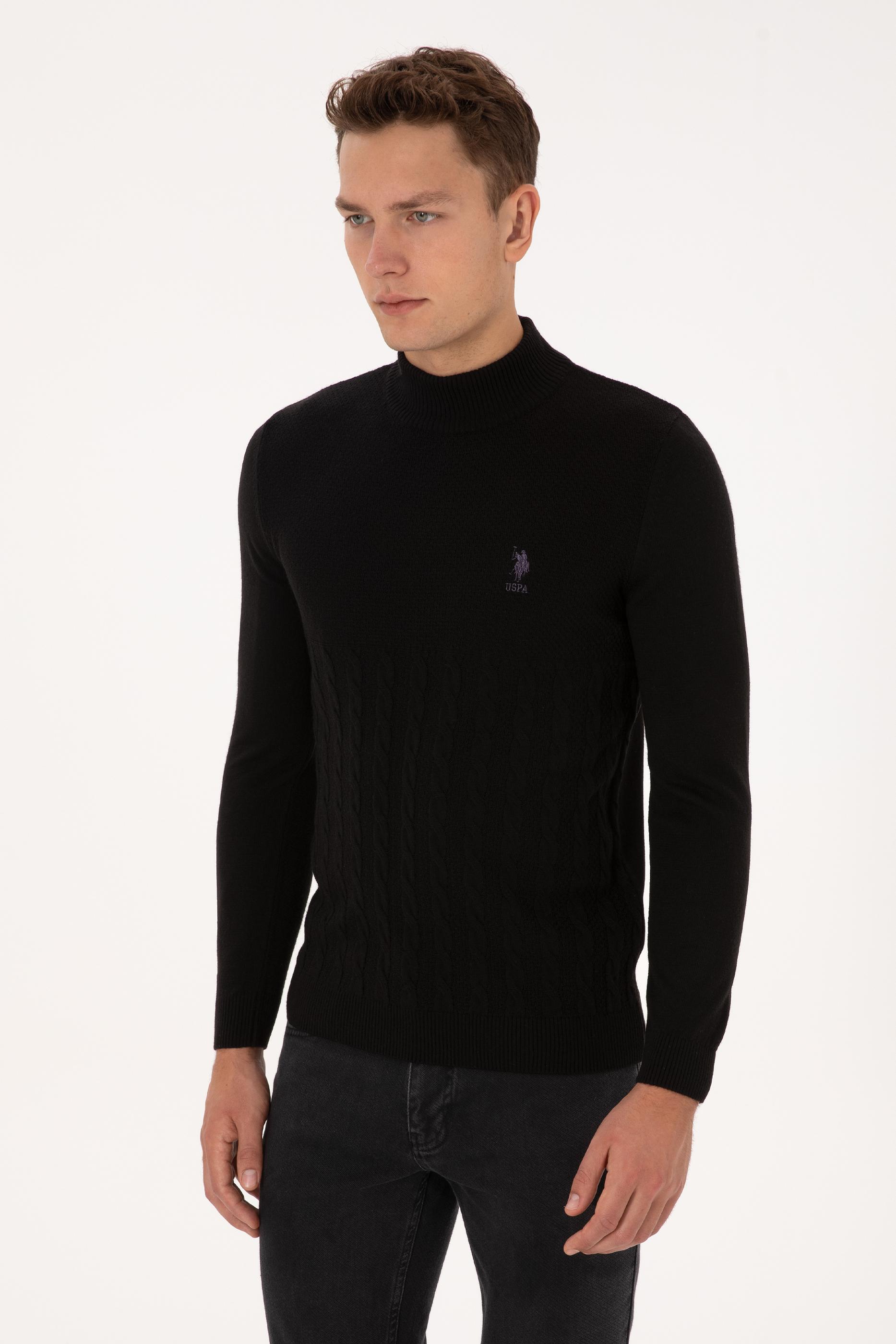 - Erkek Slim Fit Boğazlı Yaka Siyah Kazak