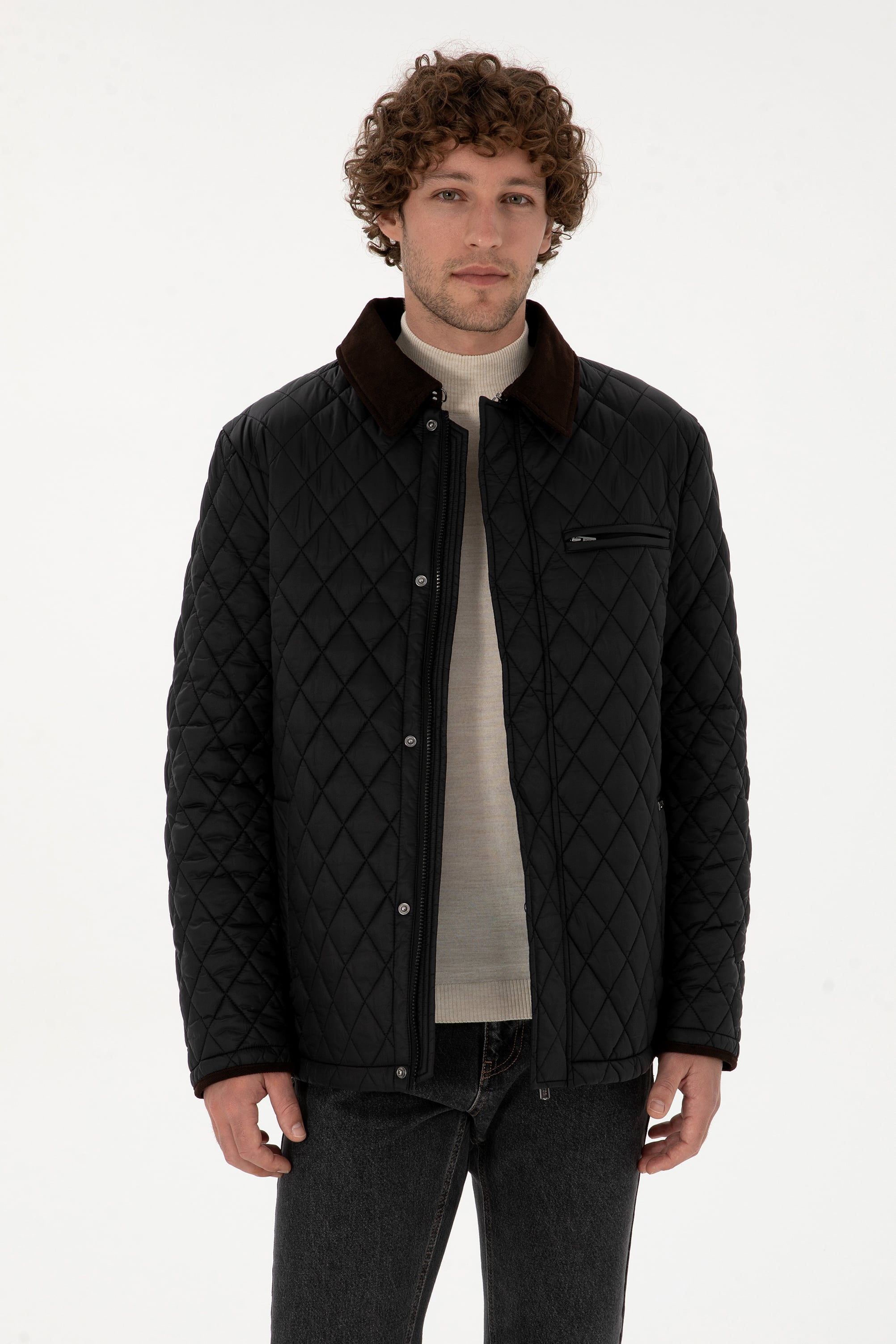 Erkek mont, siyah rengi ve basic tasarımıyla şık ve fonksiyonel bir dış giyim seçeneği sunar. Standart boyu bel hizasında biterek hem günlük kullanımda hem de şehir yaşamında rahatlık sağlar. Uzun kollu tasarımı kolları tam olarak kapatırken, dolgulu yapısı soğuk havalarda koruma sunar. Öne çıkan kareli dikiş detayı modern ve farklı bir görünüm kazandırır. Regular kalıbı sayesinde vücudu hafifçe sarar, rahat bir hareket alanı bırakır. Ön kısmında fermuar ve çıtçıtlı kapama sistemi bulunur; bu sayede rüzgârı engelleyerek ekstra sıcaklık sağlar. Yaka kısmında kullanılan kontrast renkte kadife benzeri kumaş detayı montun tarzını güçlendirir. Yan cepler elleri ısıtırken, göğüs hizasındaki fermuarlı cep küçük eşyalar için pratik kullanım sunar. Hem casual hem de smart-casual kombinlerle uyum sağlayan bu mont, gardırobun zamansız parçalarından biridir.