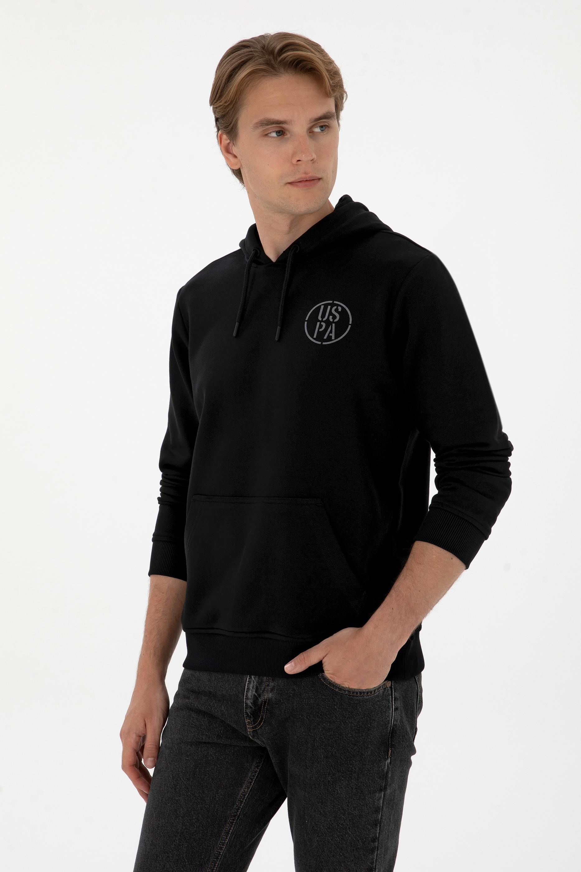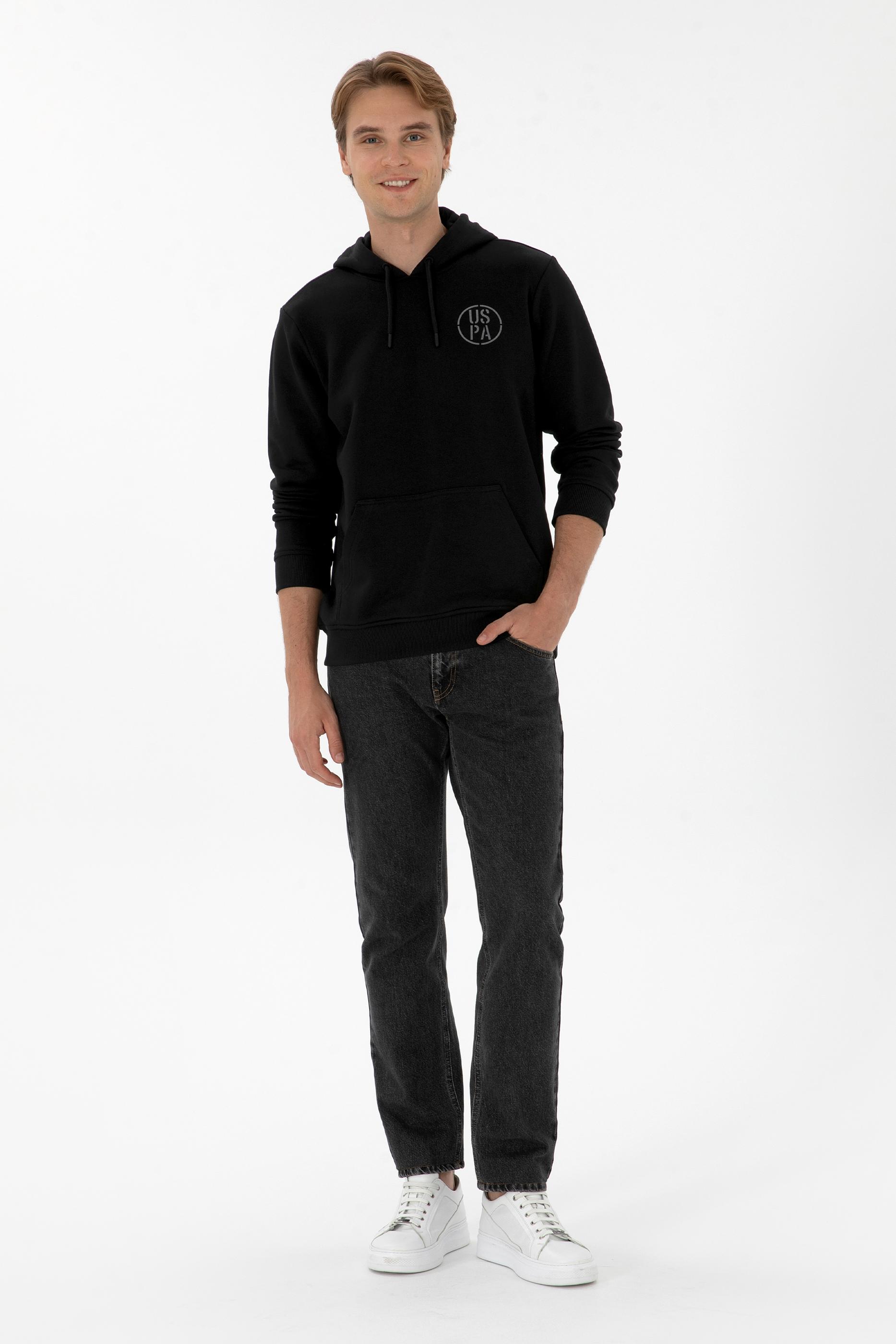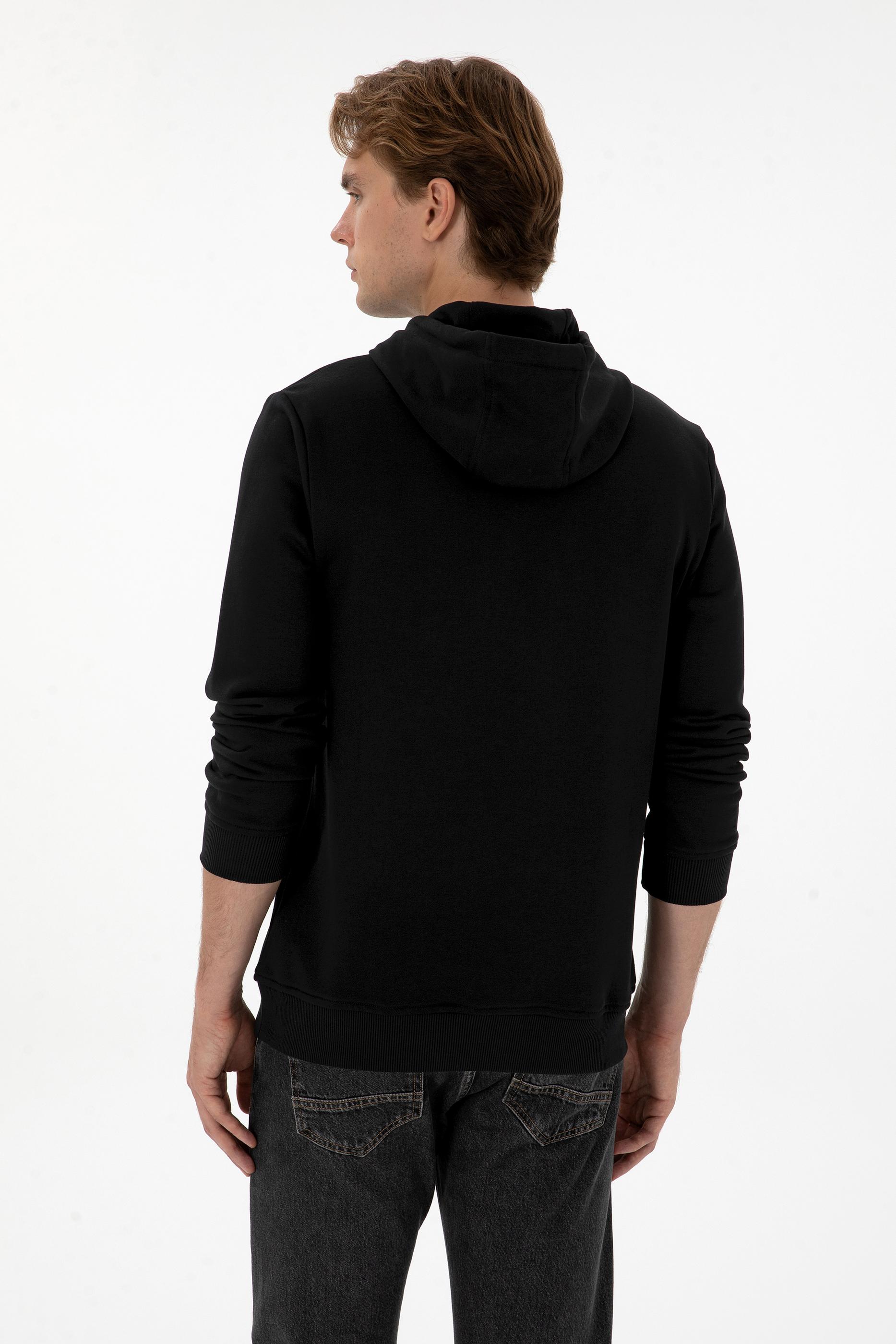 Erkek Regular Fit Kapüşonlu Siyah Sweatshirt