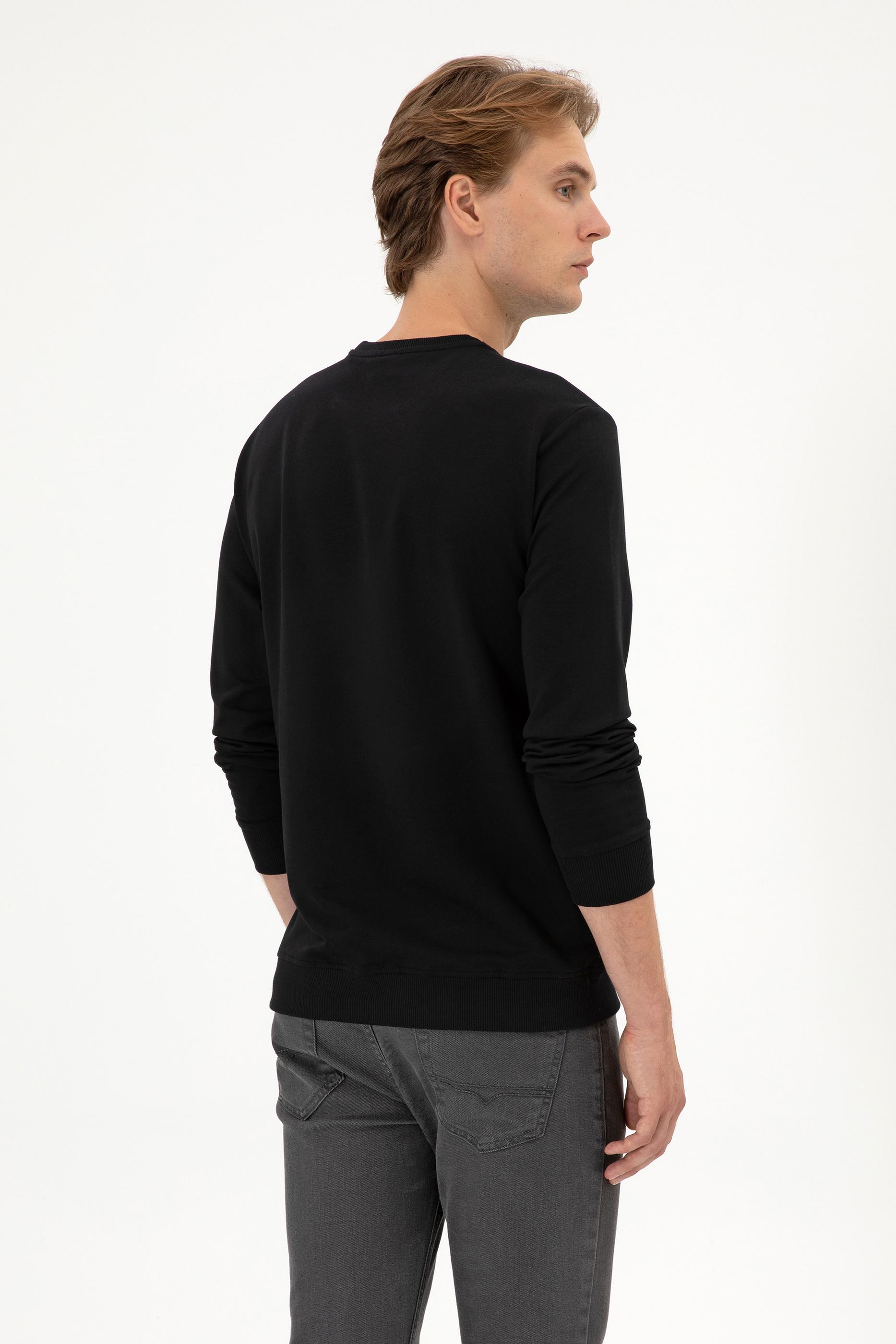 - Erkek Regular Fit Bisiklet Yaka Siyah İnce Sweatshirt