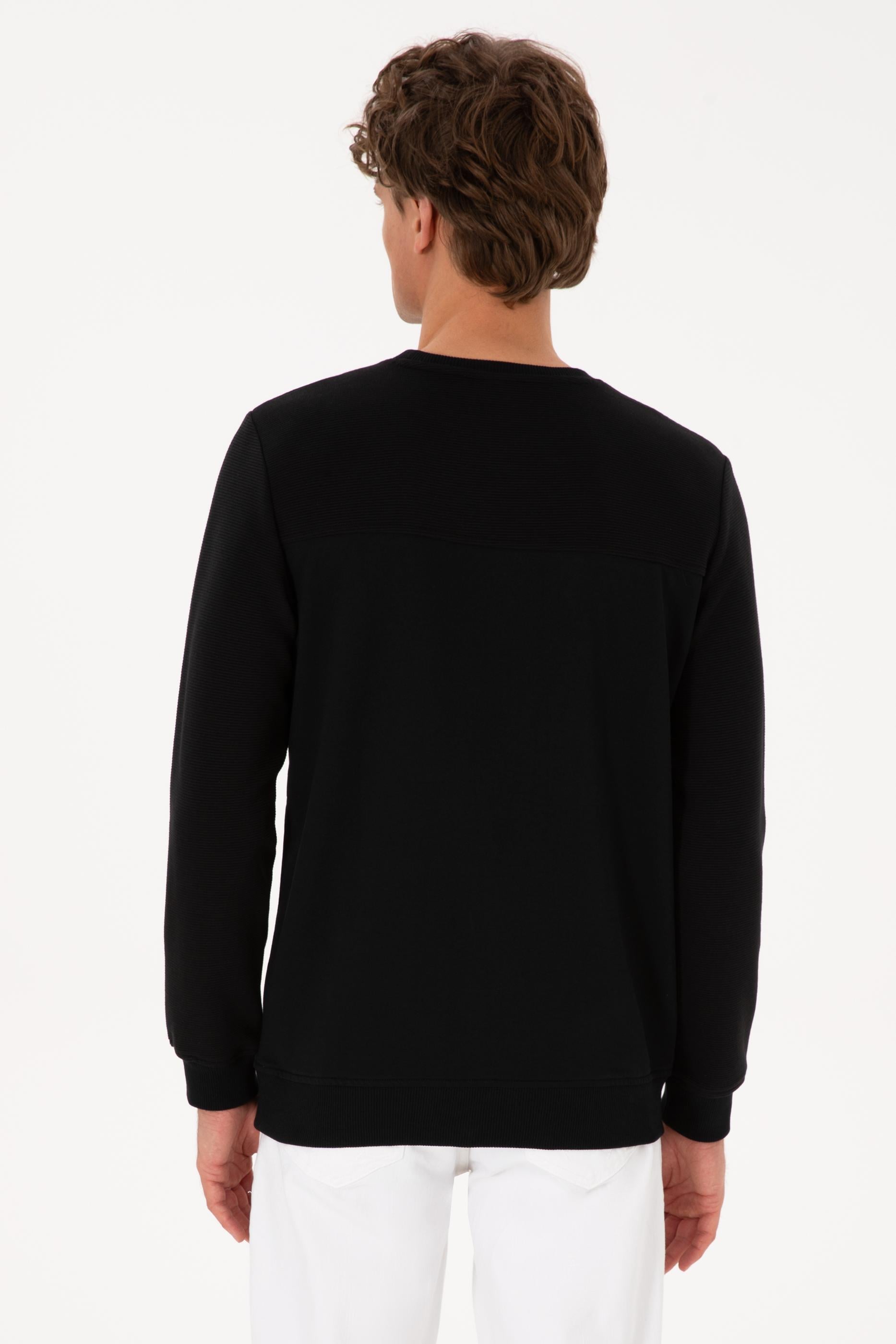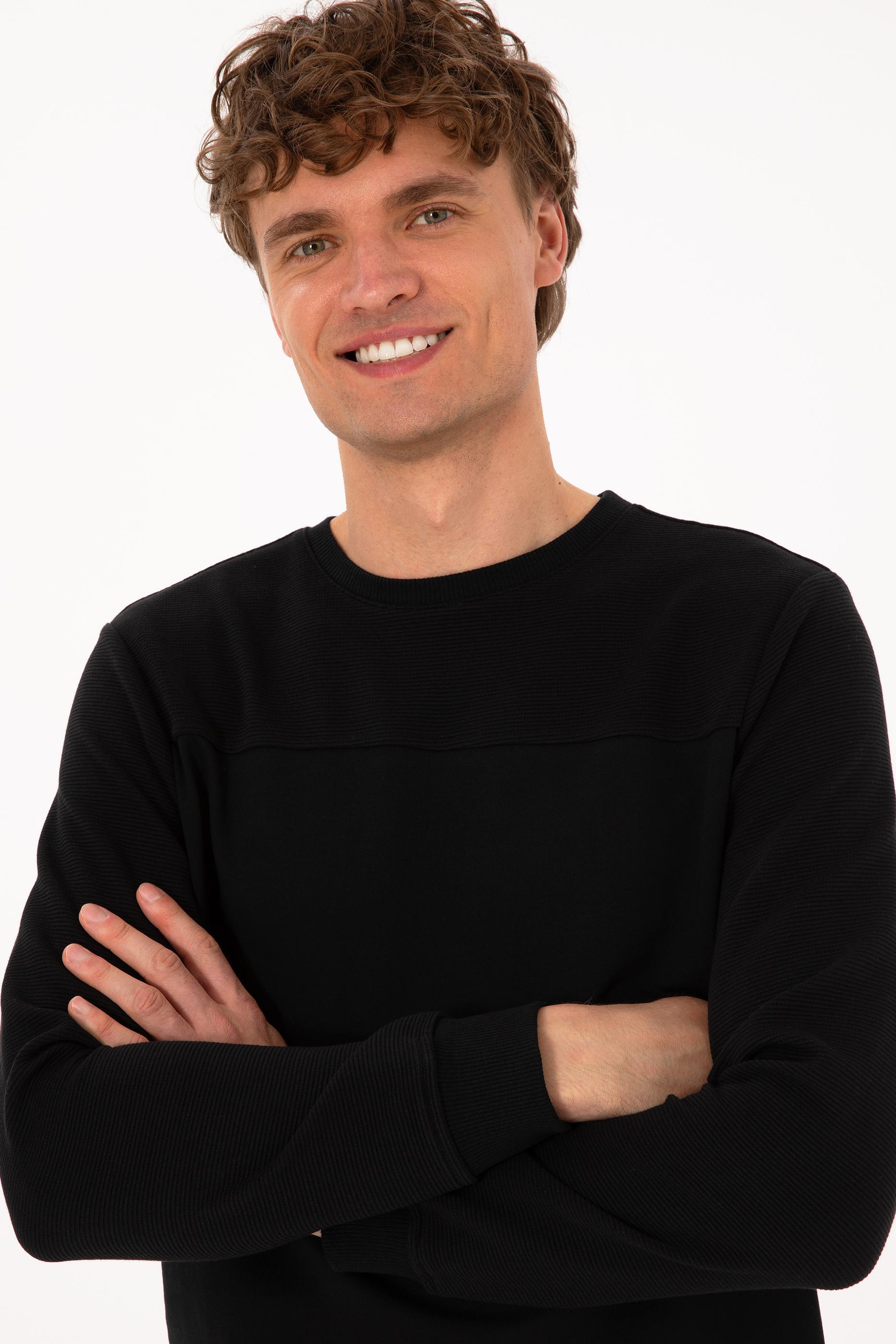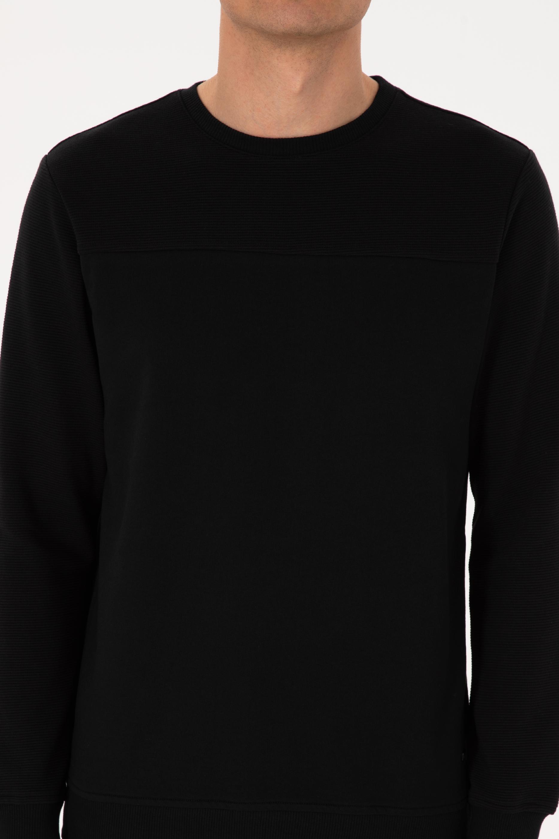 - Erkek Bisiklet Yaka Regular Fit Siyah İnce Sweatshirt