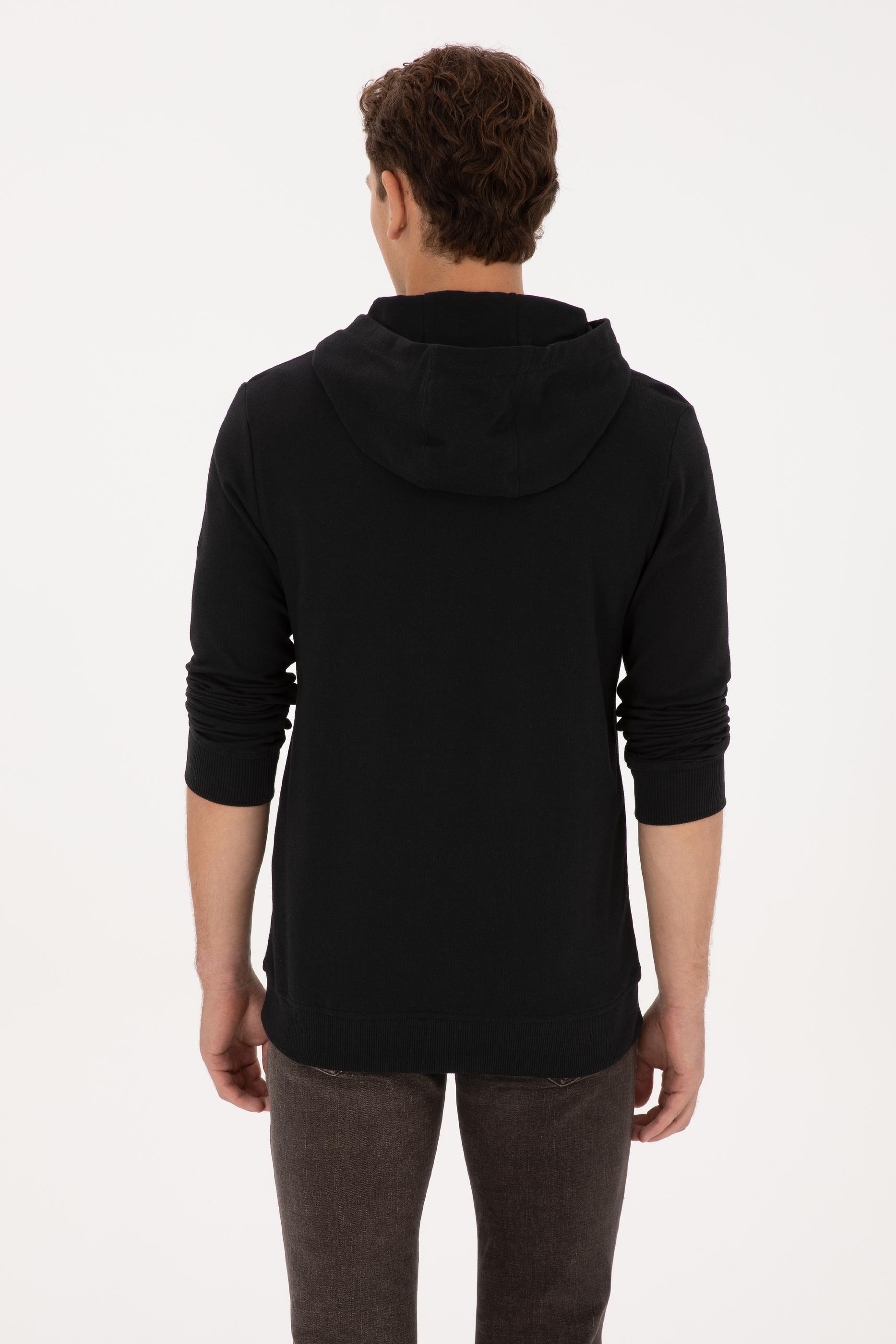 Erkek Regular Fit Yarım Fermuarlı Kapüşonlu Siyah Sweatshirt