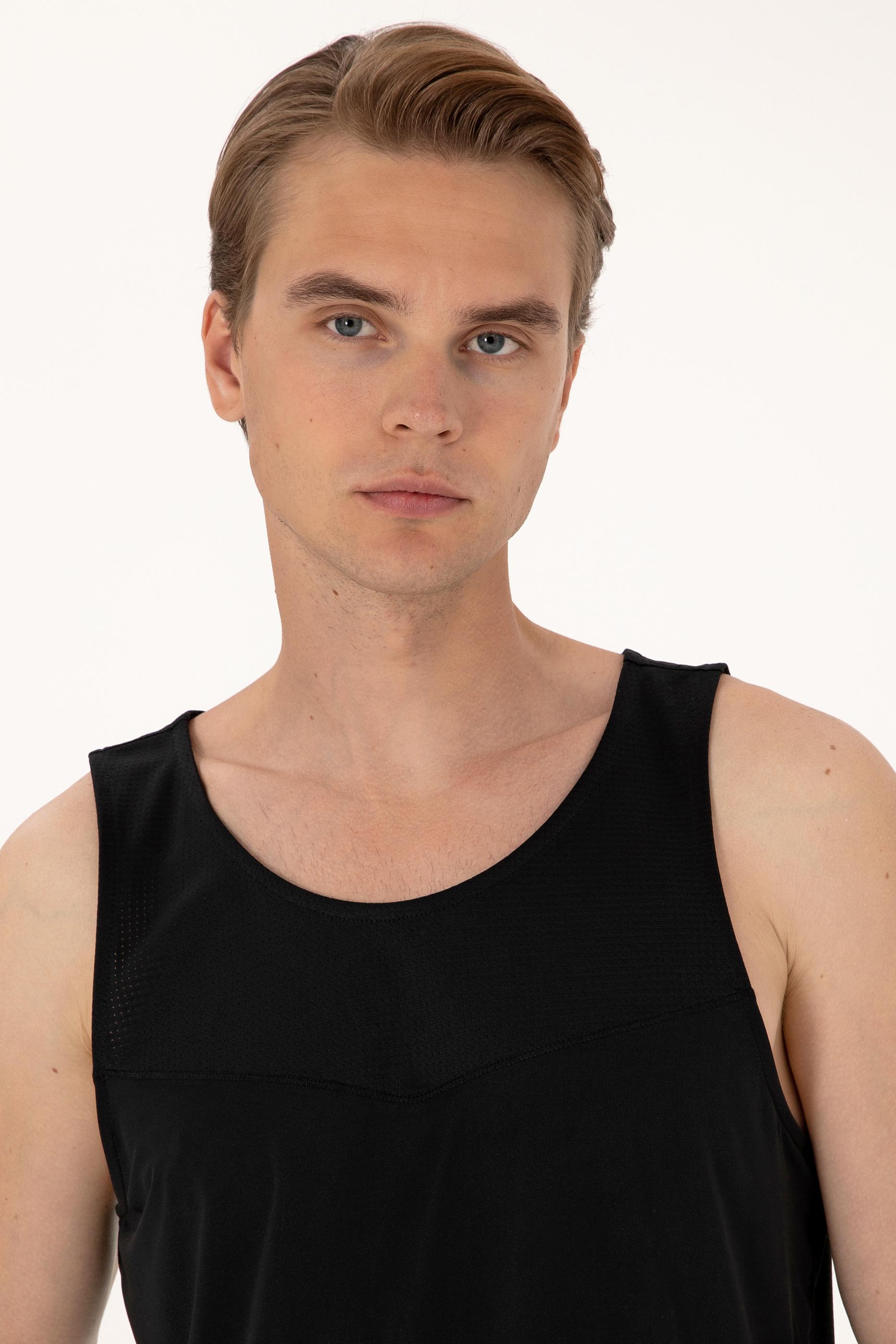 Erkek Regular Fit Siyah Bisiklet Yaka Kolsuz Tişört