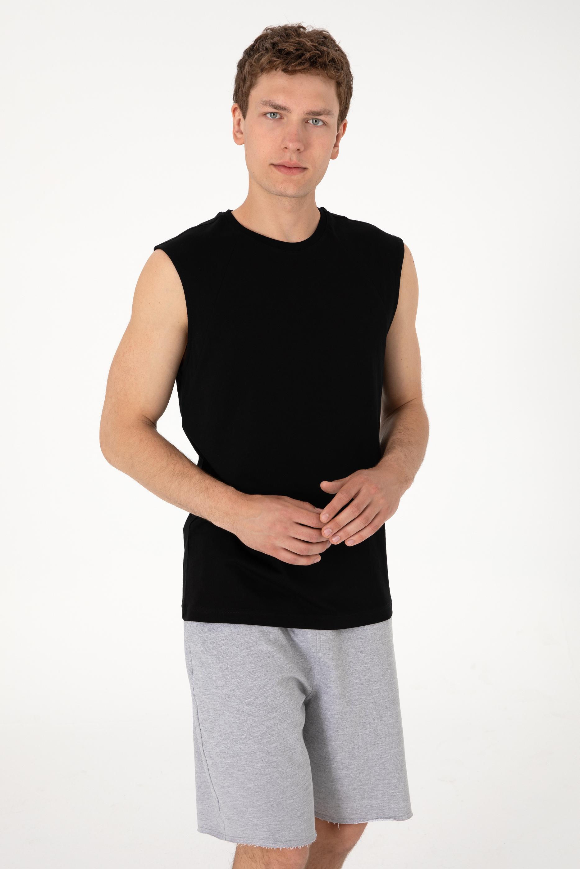 - Erkek Regular Fit Bisiklet Yaka Siyah Tişört