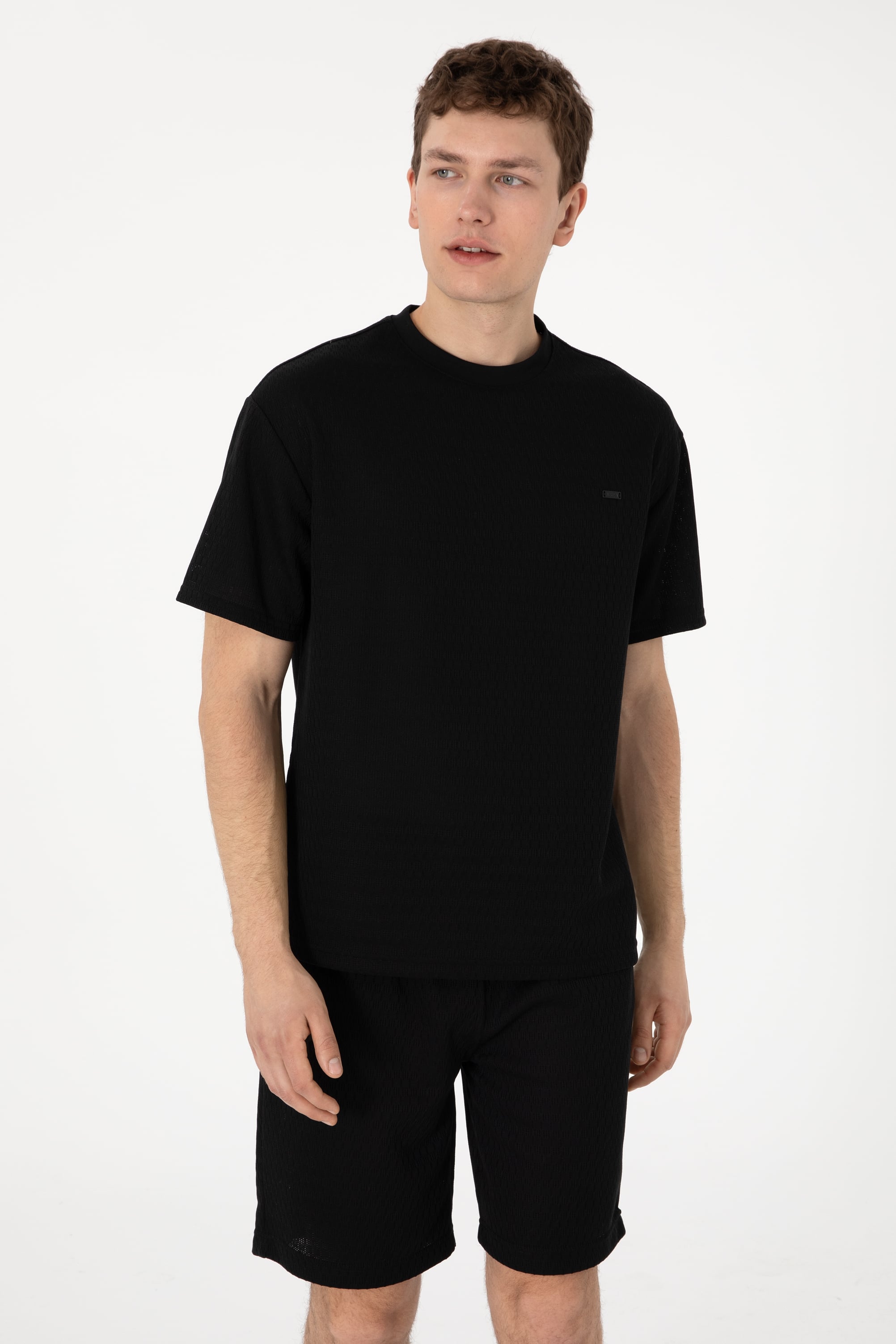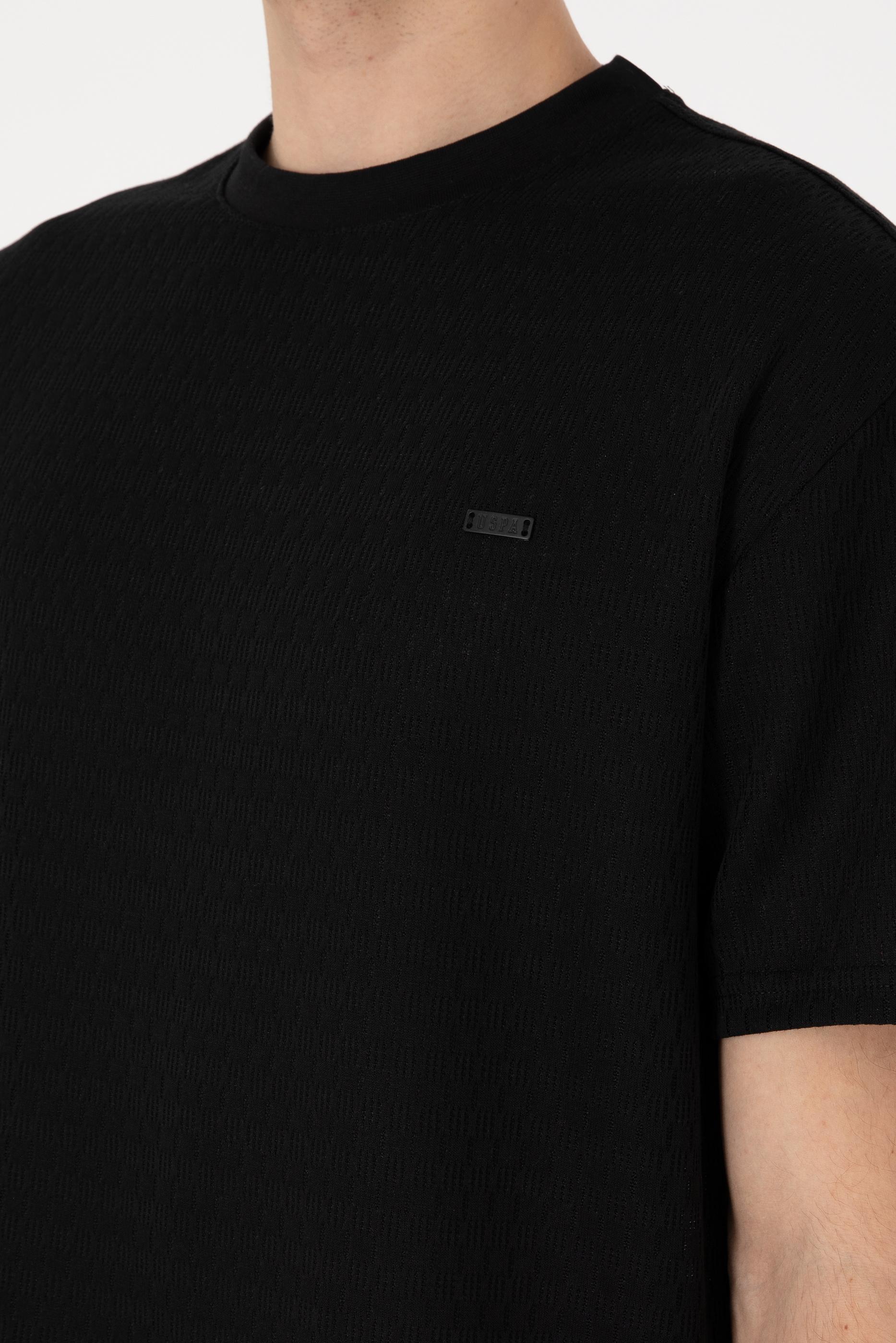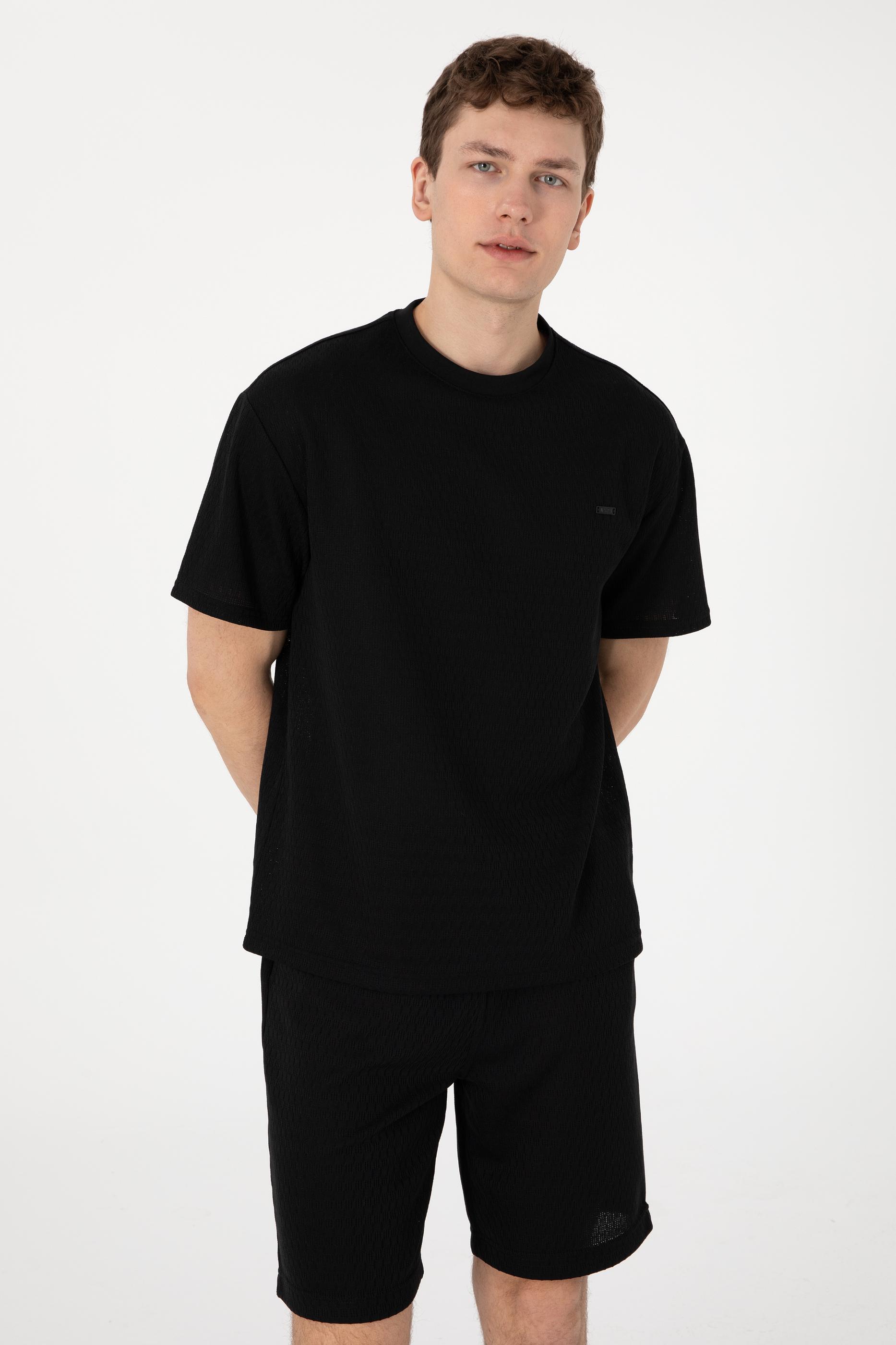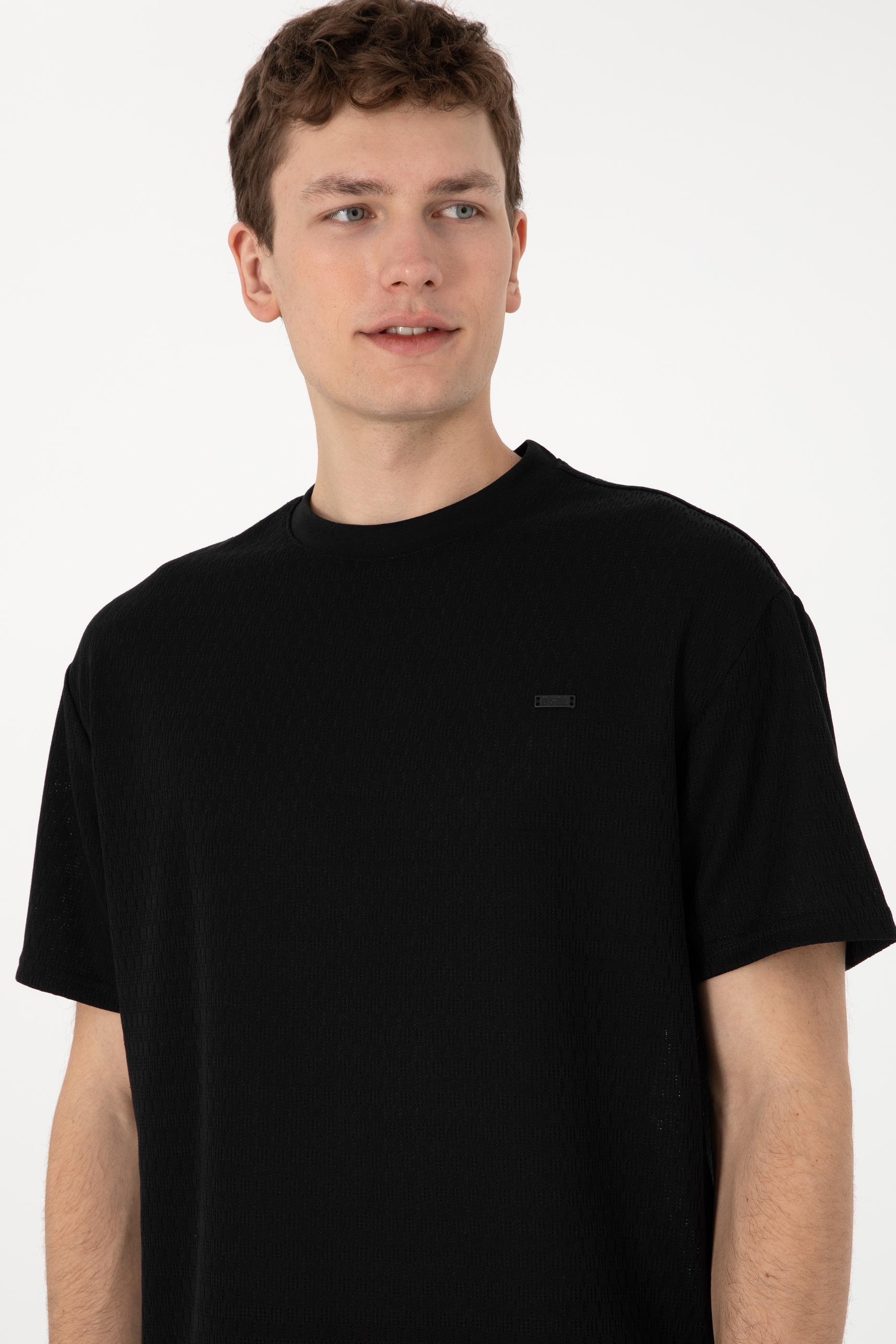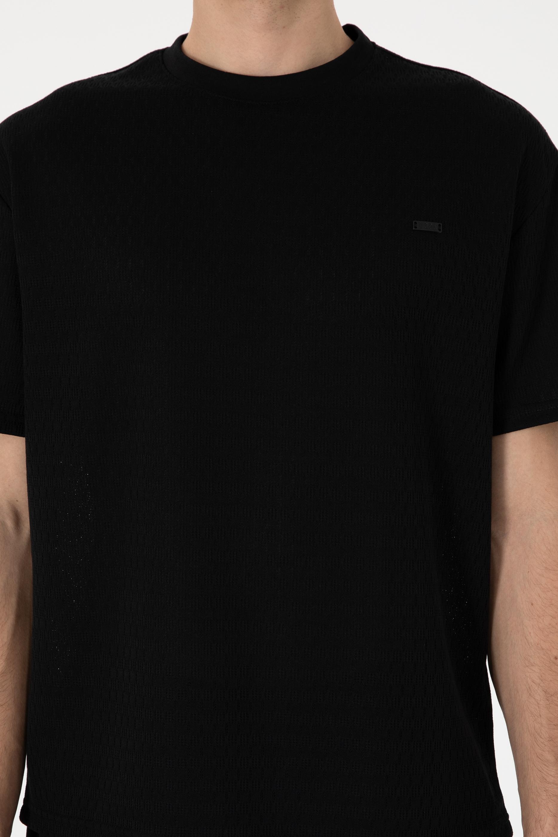 Erkek Comfort Fit Bisiklet Yaka Siyah Tişört
