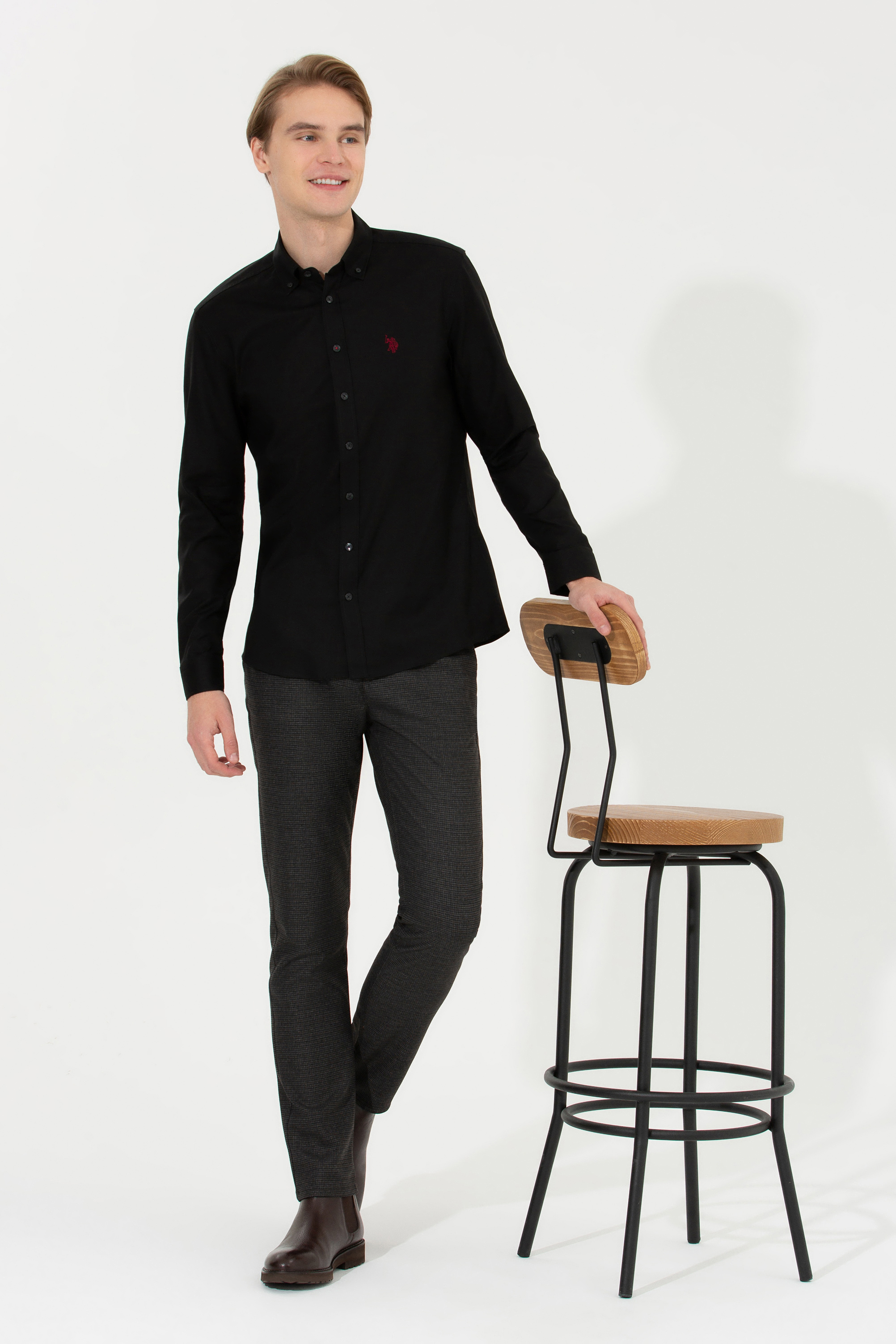 Erkek Siyah Uzun Kollu Basic Gömlek