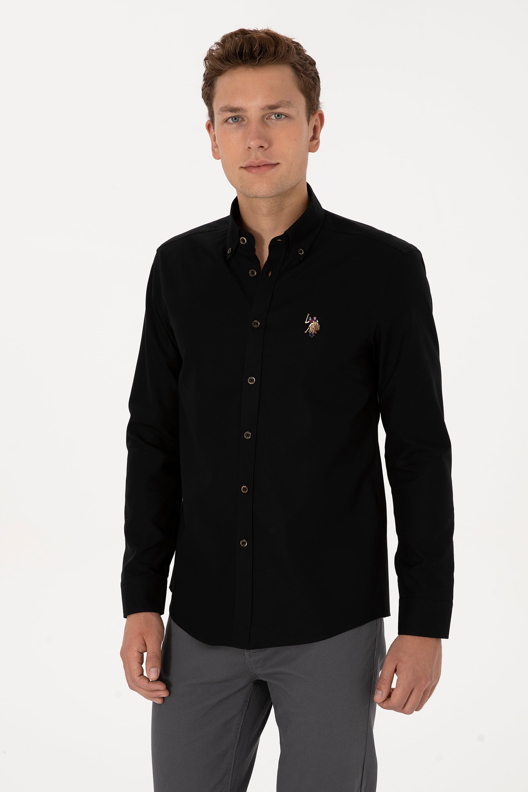 Erkek Siyah Uzun Kollu Basic Gömlek