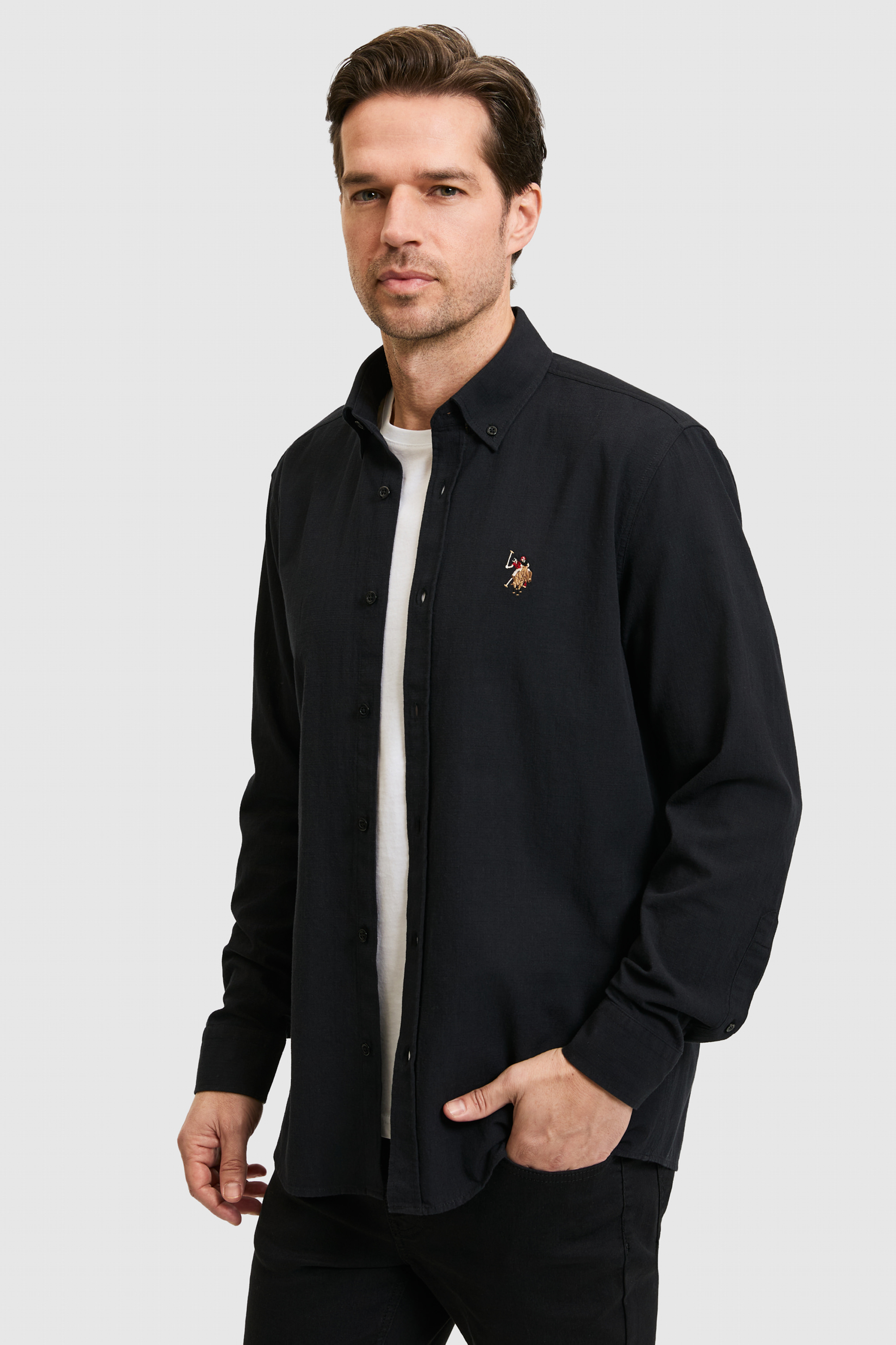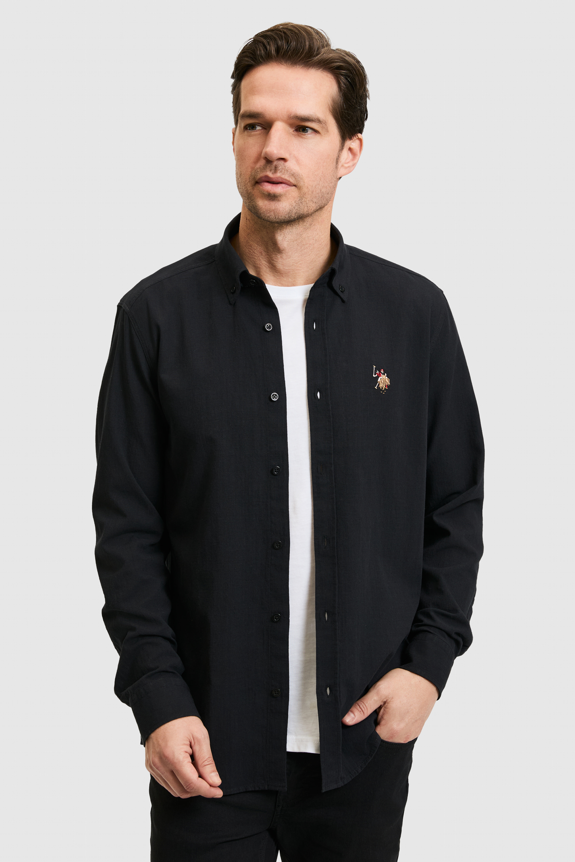 Erkek Siyah Uzun Kollu Basic Gömlek