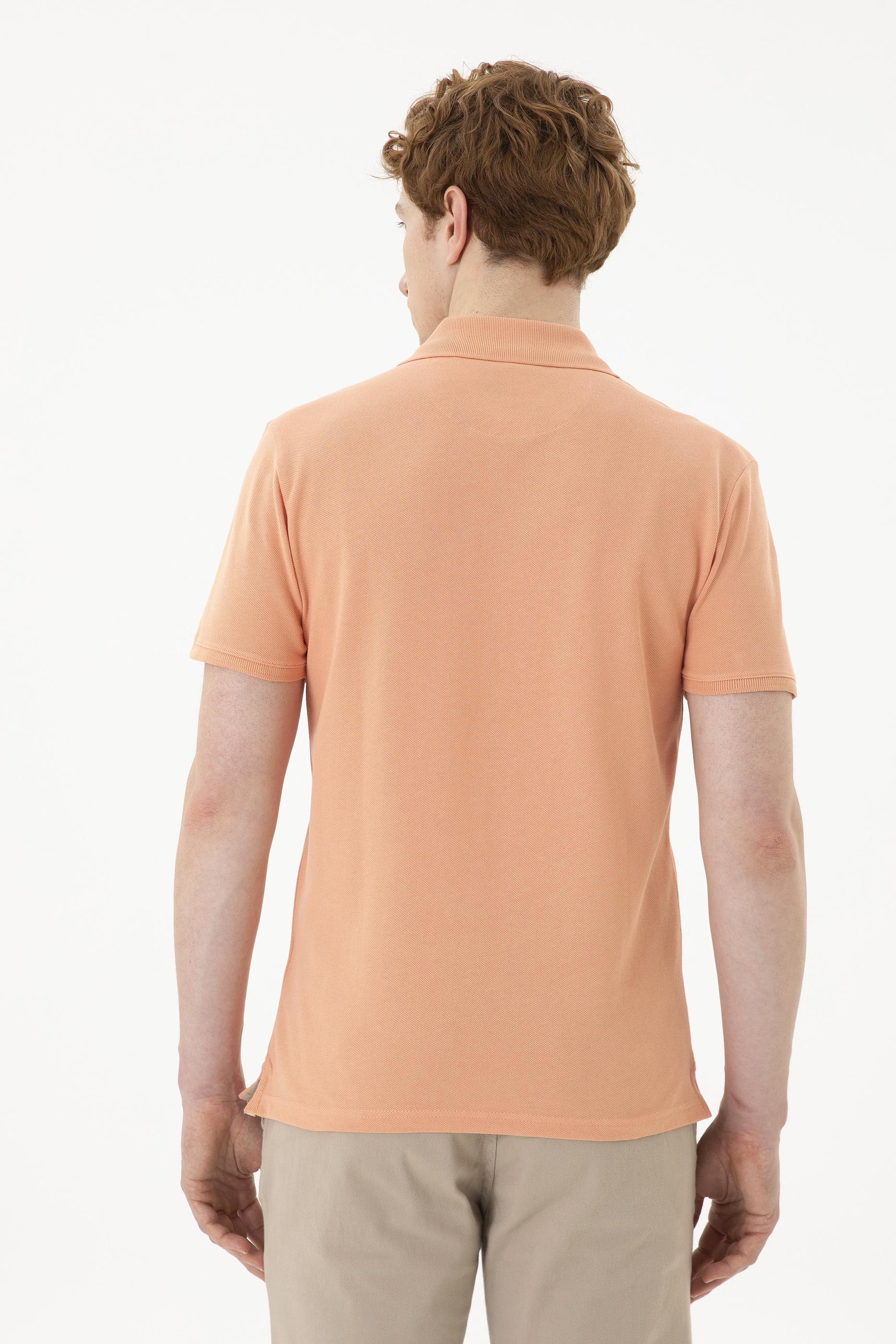 - Erkek Slim Fit Polo Yaka Somon Basic Tişört