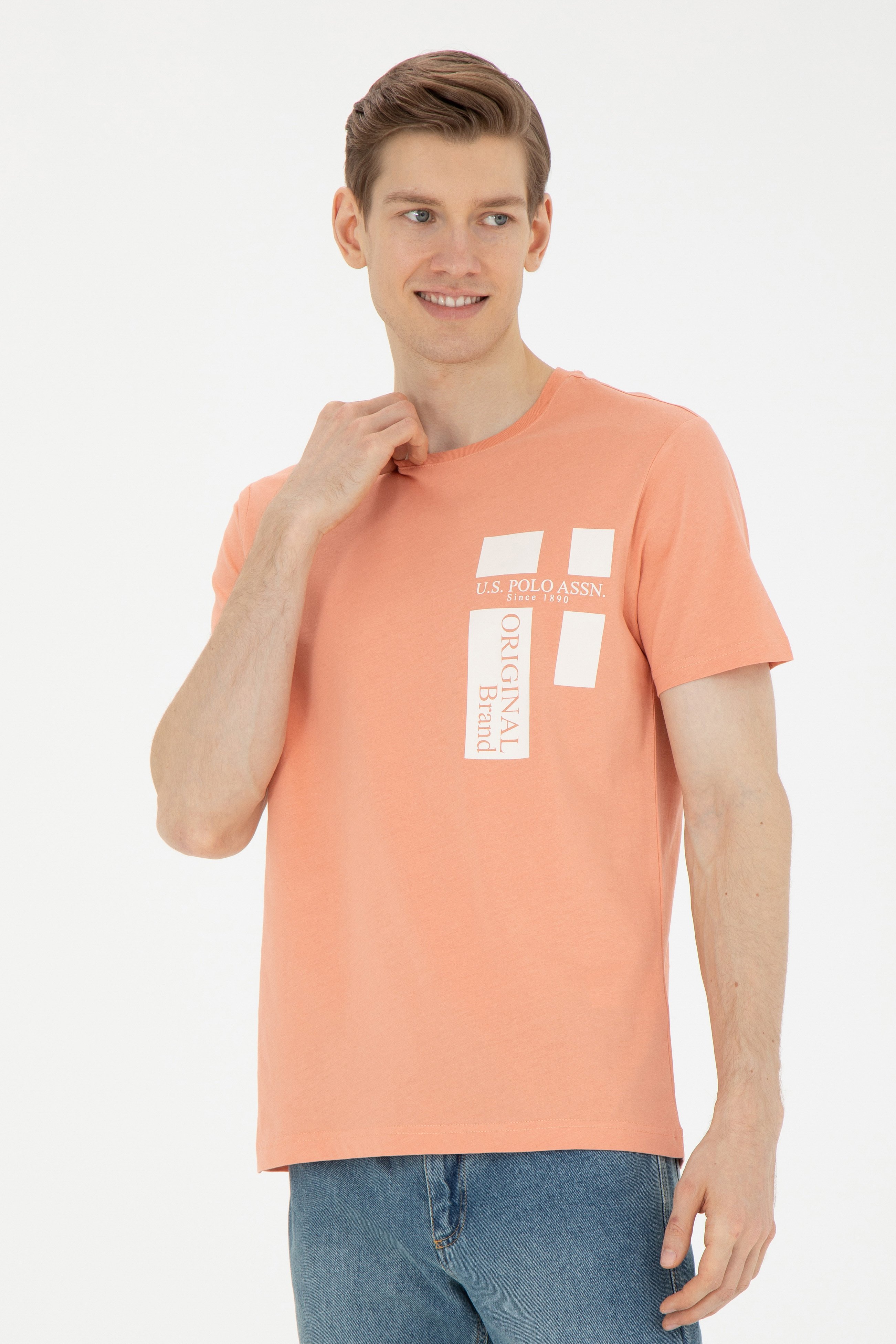 - Erkek Regular Fit Bisiklet Yaka Somon Tişört