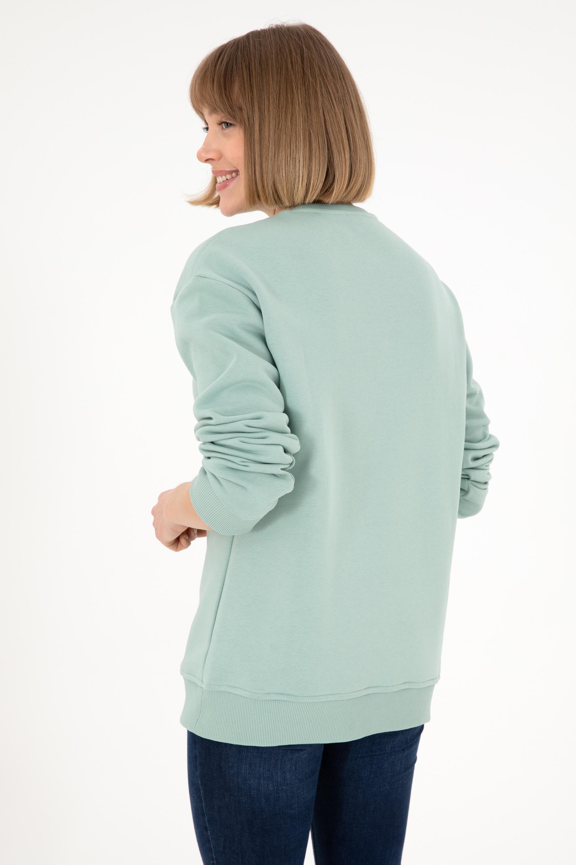 Erkek Bisiklet Yaka Su Yeşili Basic Şardonlu Sweatshirt