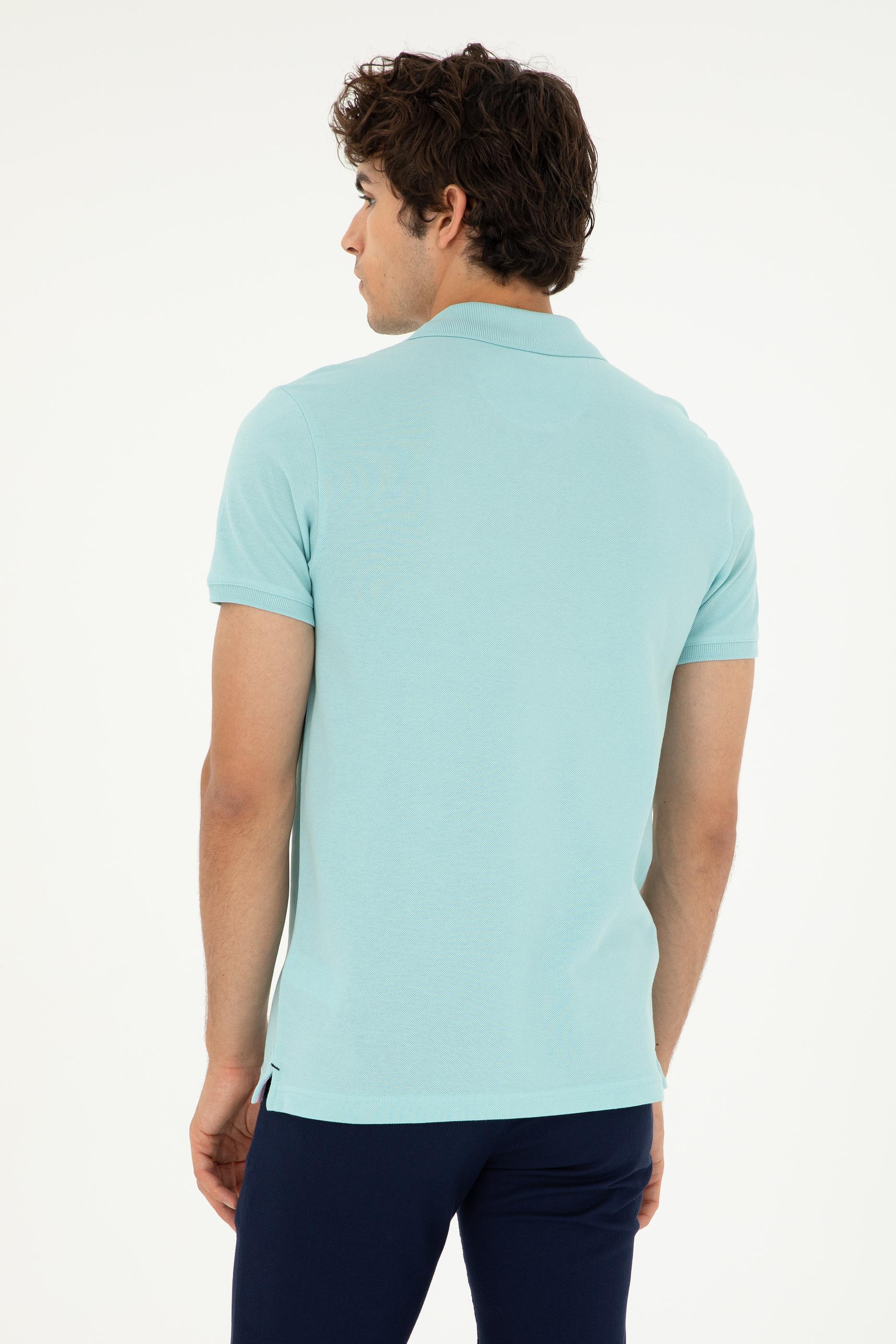 - Erkek Slim Fit Polo Yaka Su Yeşili Basic Tişört