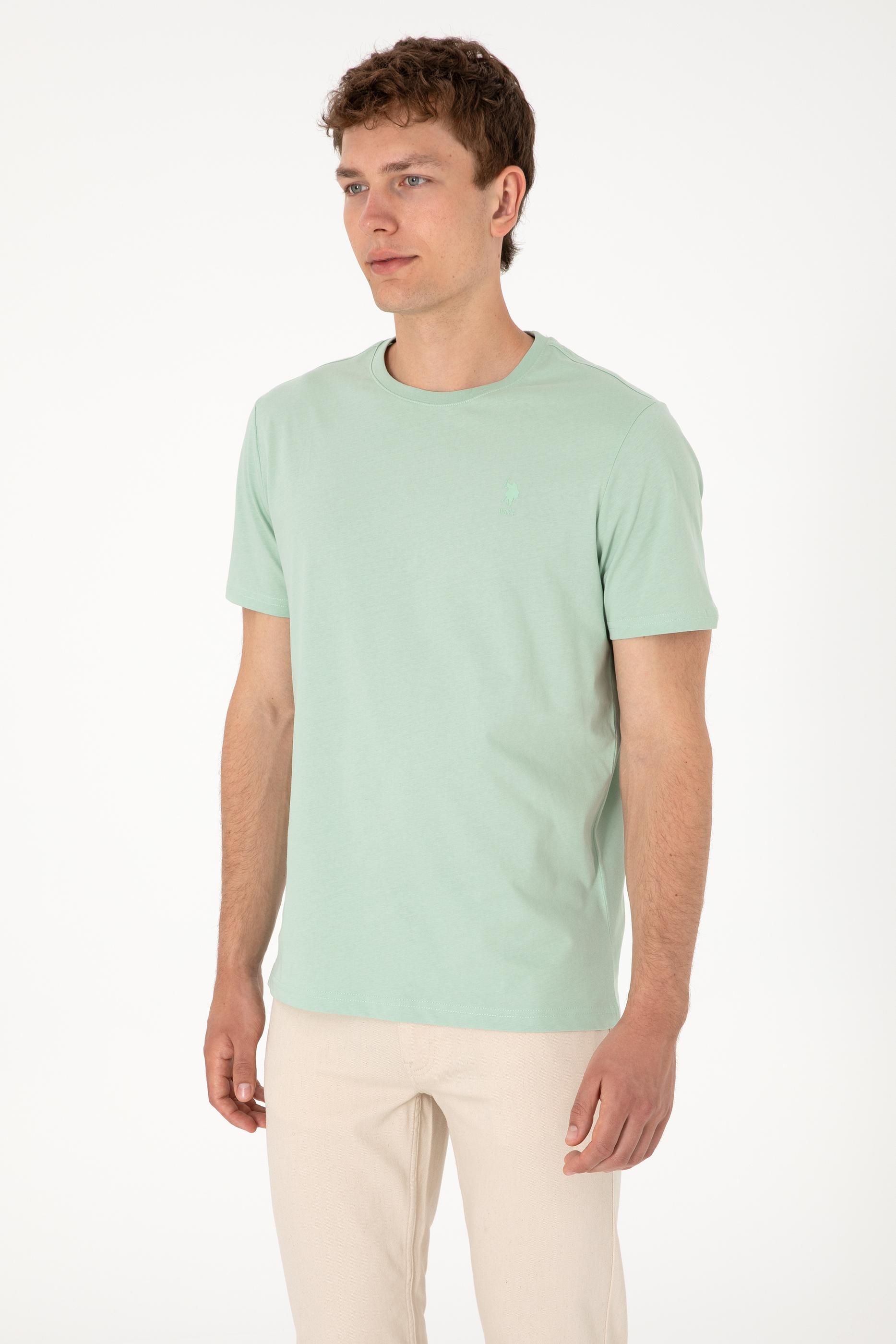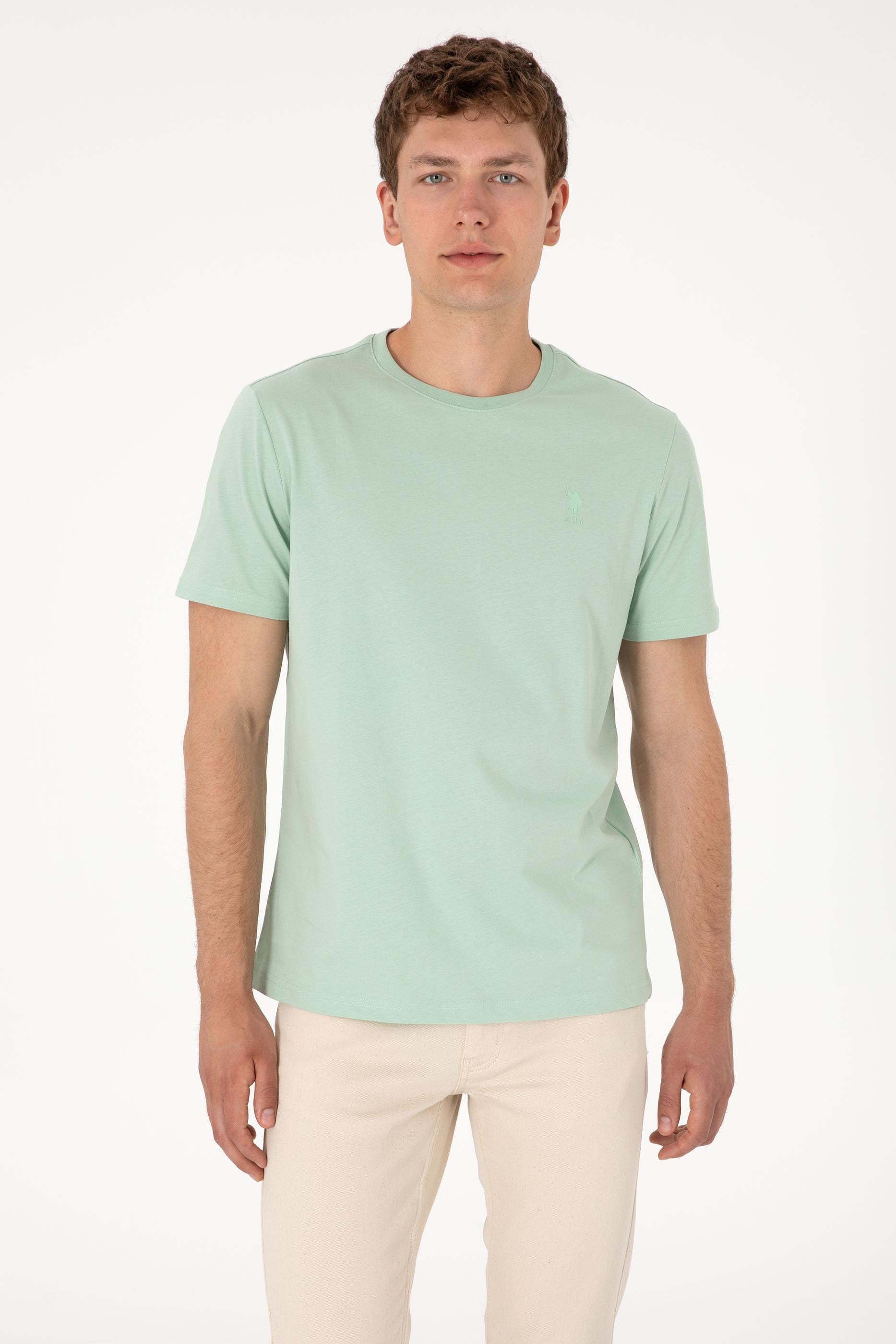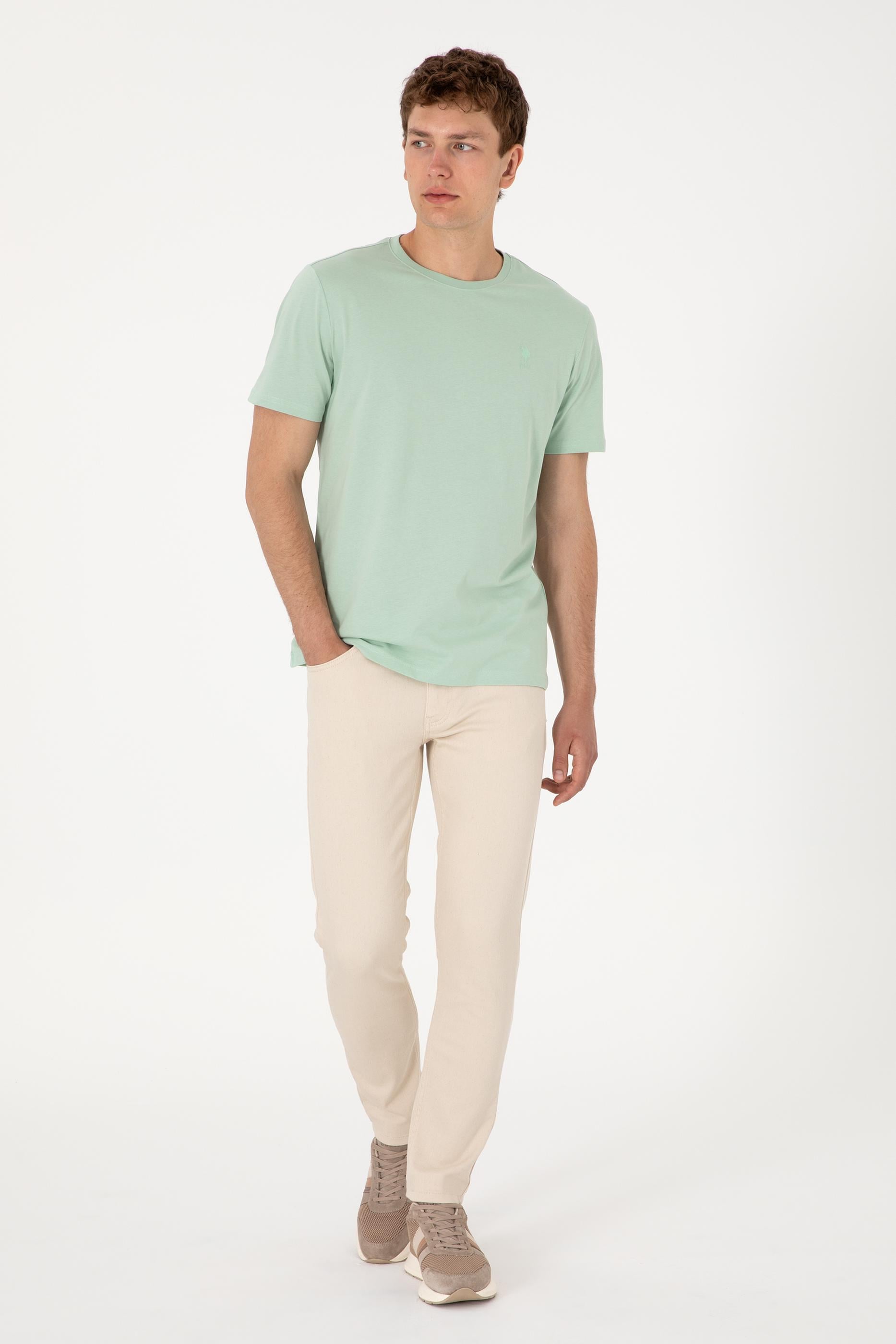Erkek Regular Fit Bisiklet Yaka Su Yeşili Basic Tişört