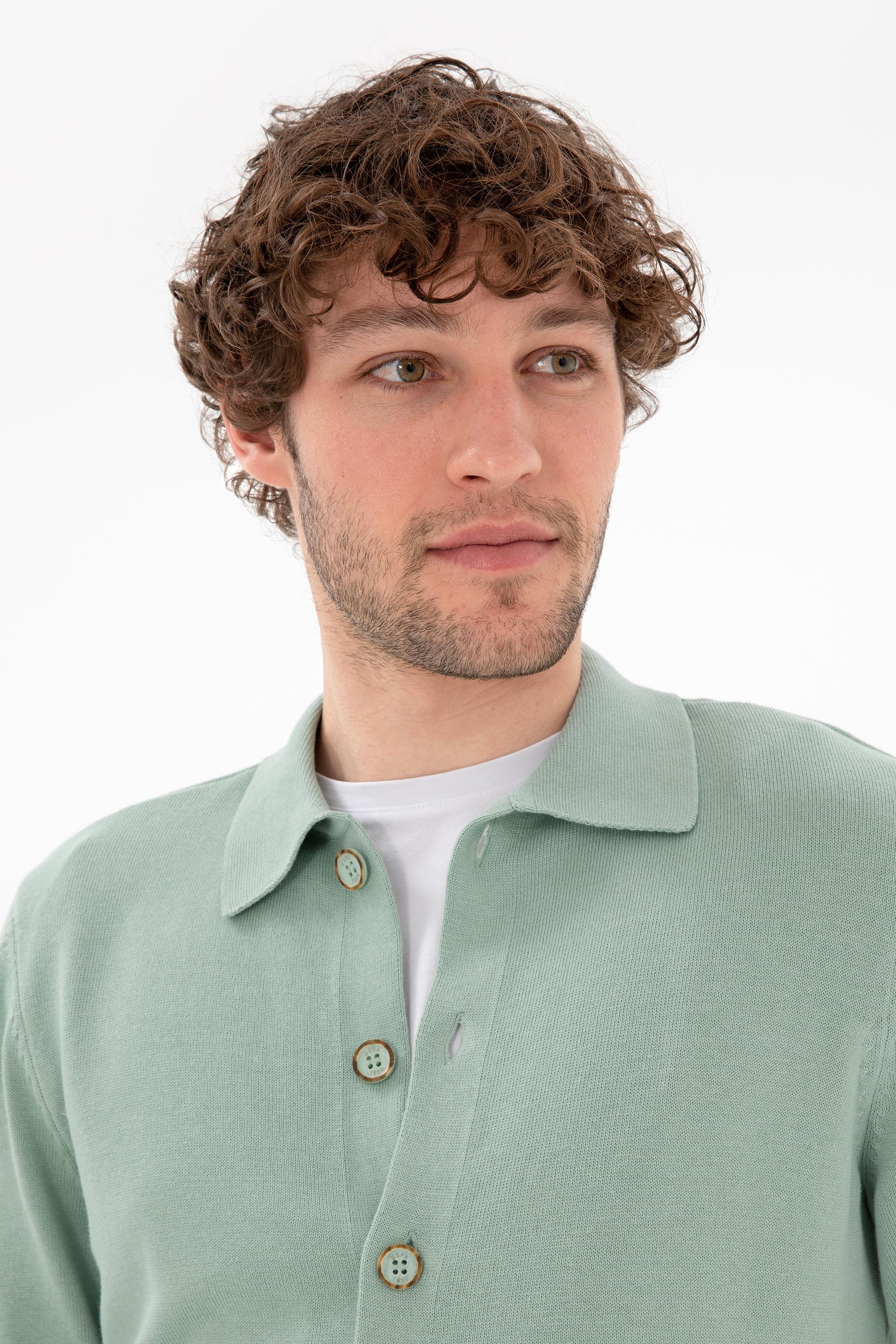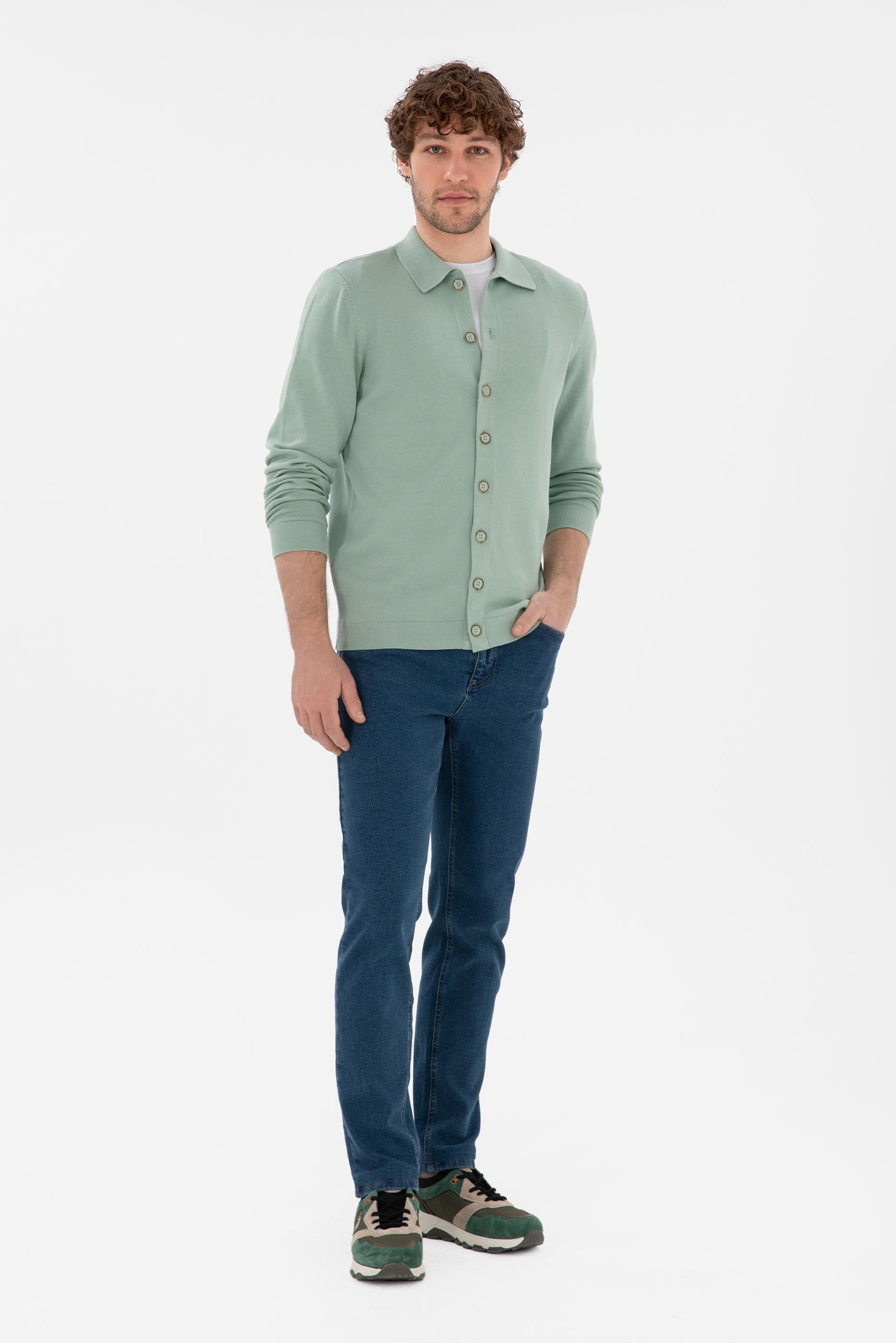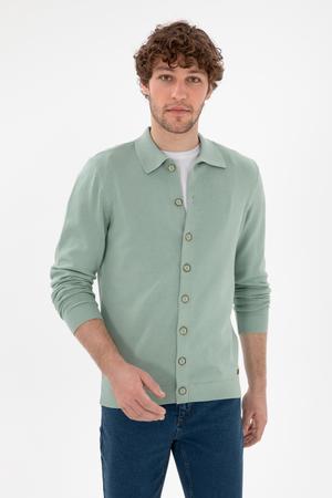 Erkek Su Yeşili Basic Triko Hırka