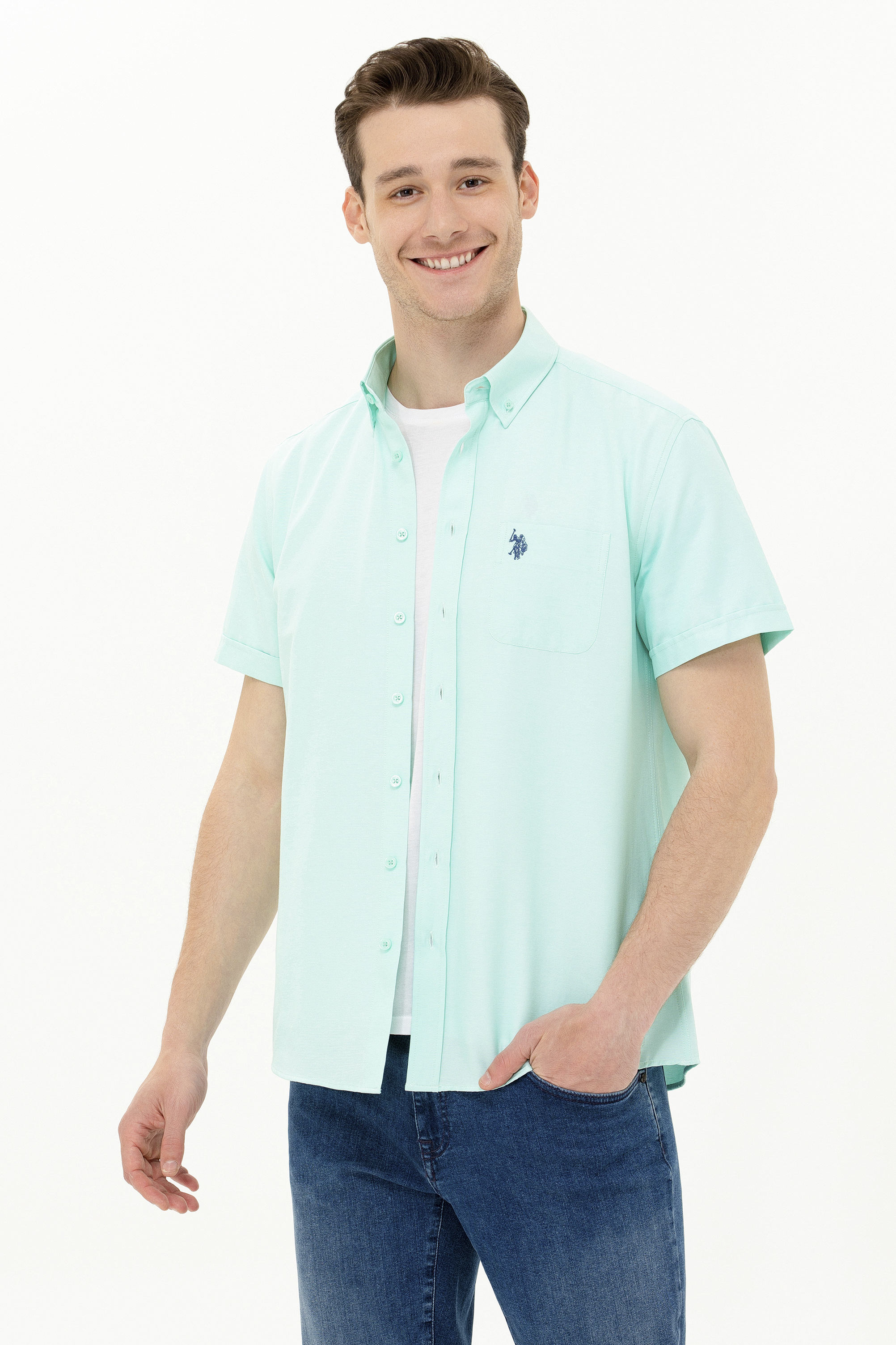 - Erkek Su Yeşili Kısa Kollu Gömlek
