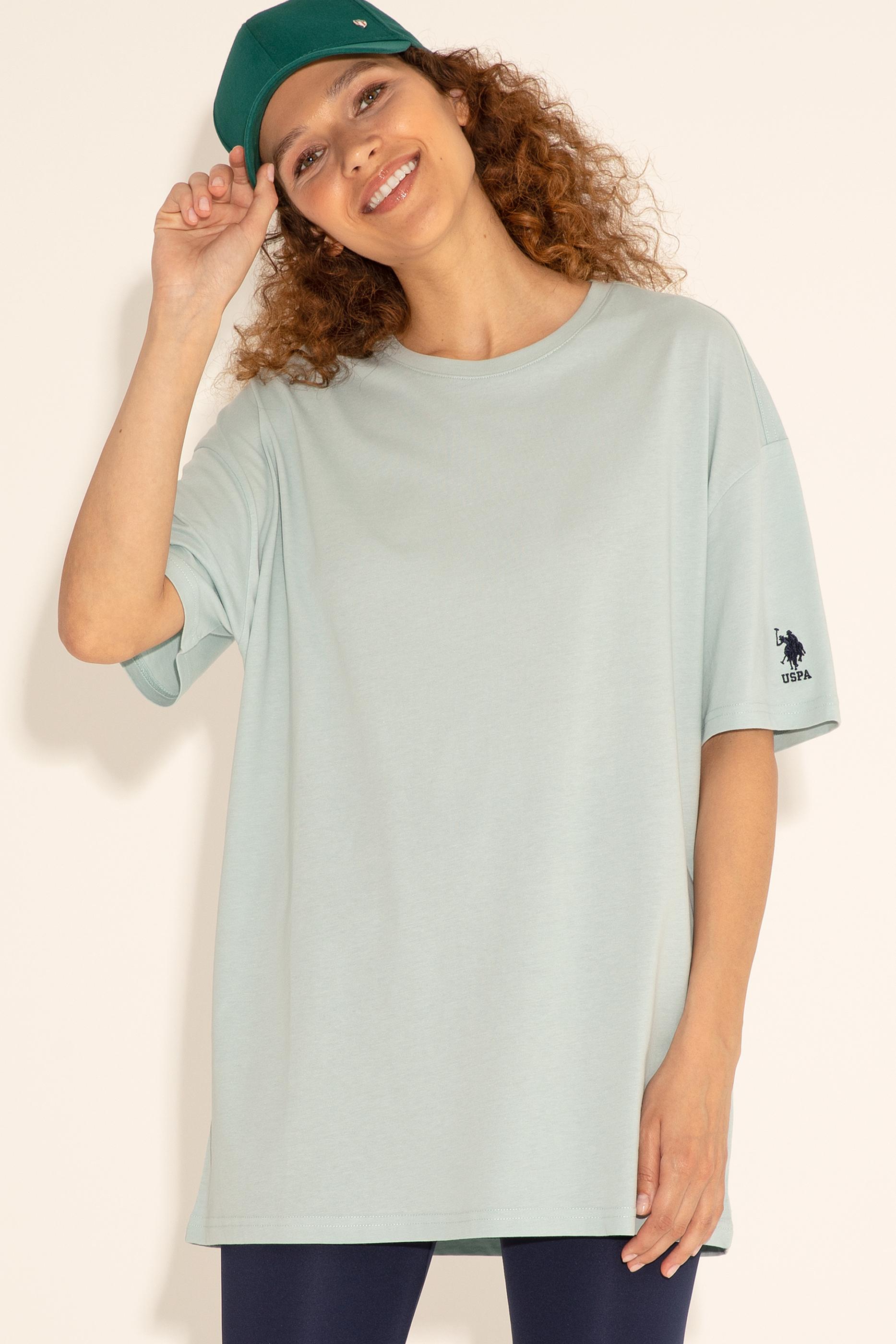 Tişörtün kol kısmında yer alan USPA logosu, şıklığını bir adım öteye taşıyor. Siyah renkte işlenmiş olan logo, tişörtün genel tasarımına sofistike bir dokunuş katıyor. Logonun varlığı, tişörtün markasını ve kalitesini ön plana çıkarıyor. Ayrıca, küçük detay sade tasarıma hareket katarak tişörtü daha dikkat çekici hale getiriyor.