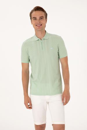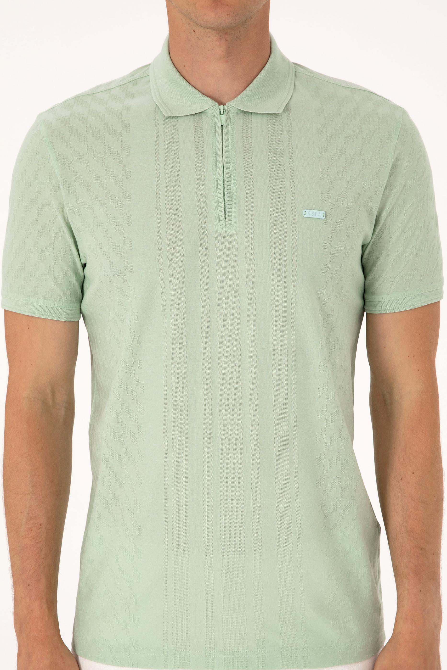 Erkek Regular Fit Su Yeşili Polo Yaka Fermuarlı Tişört