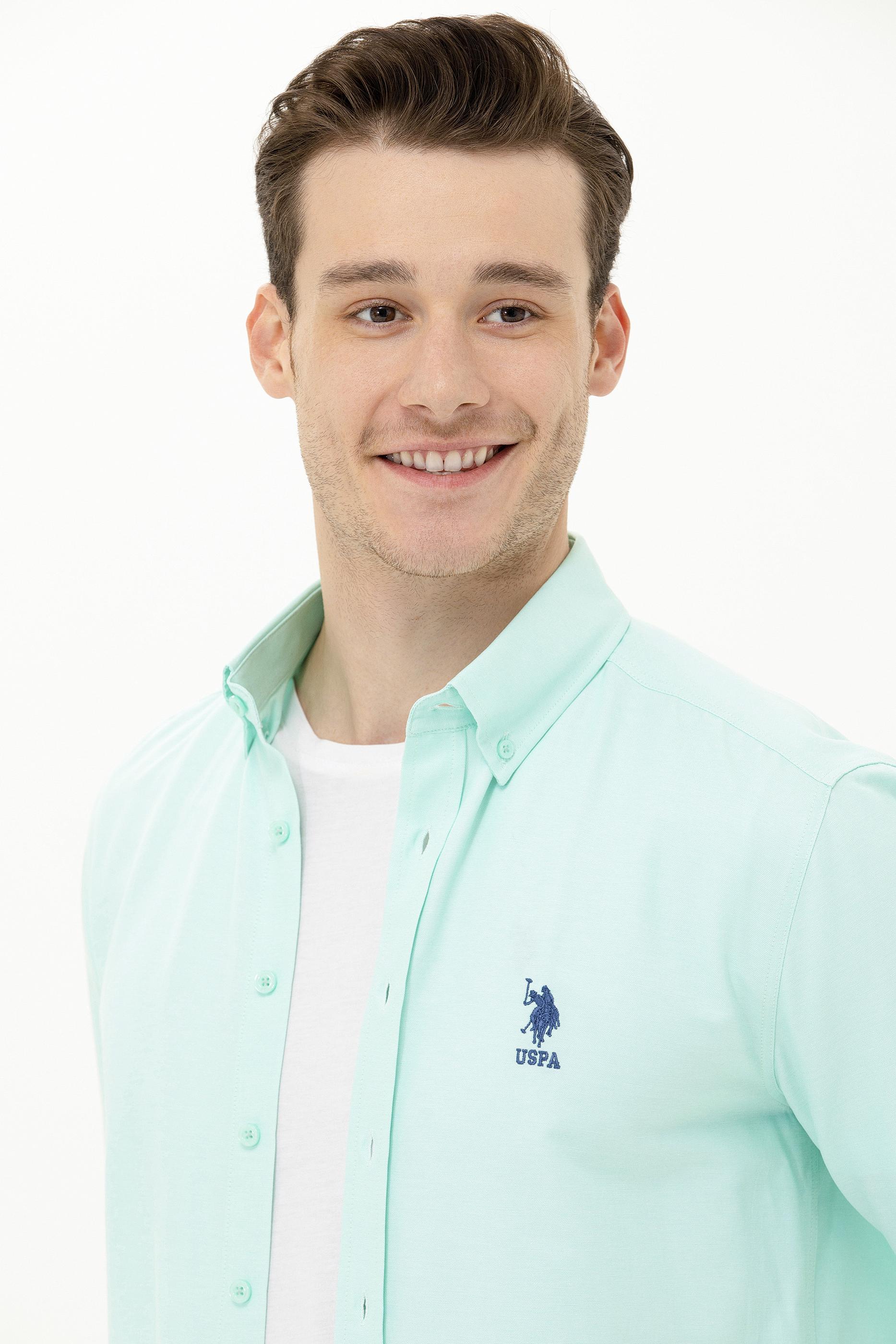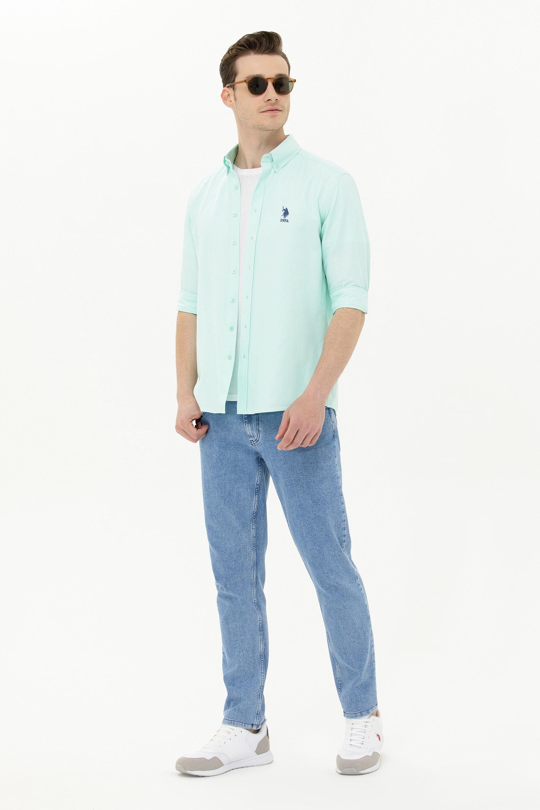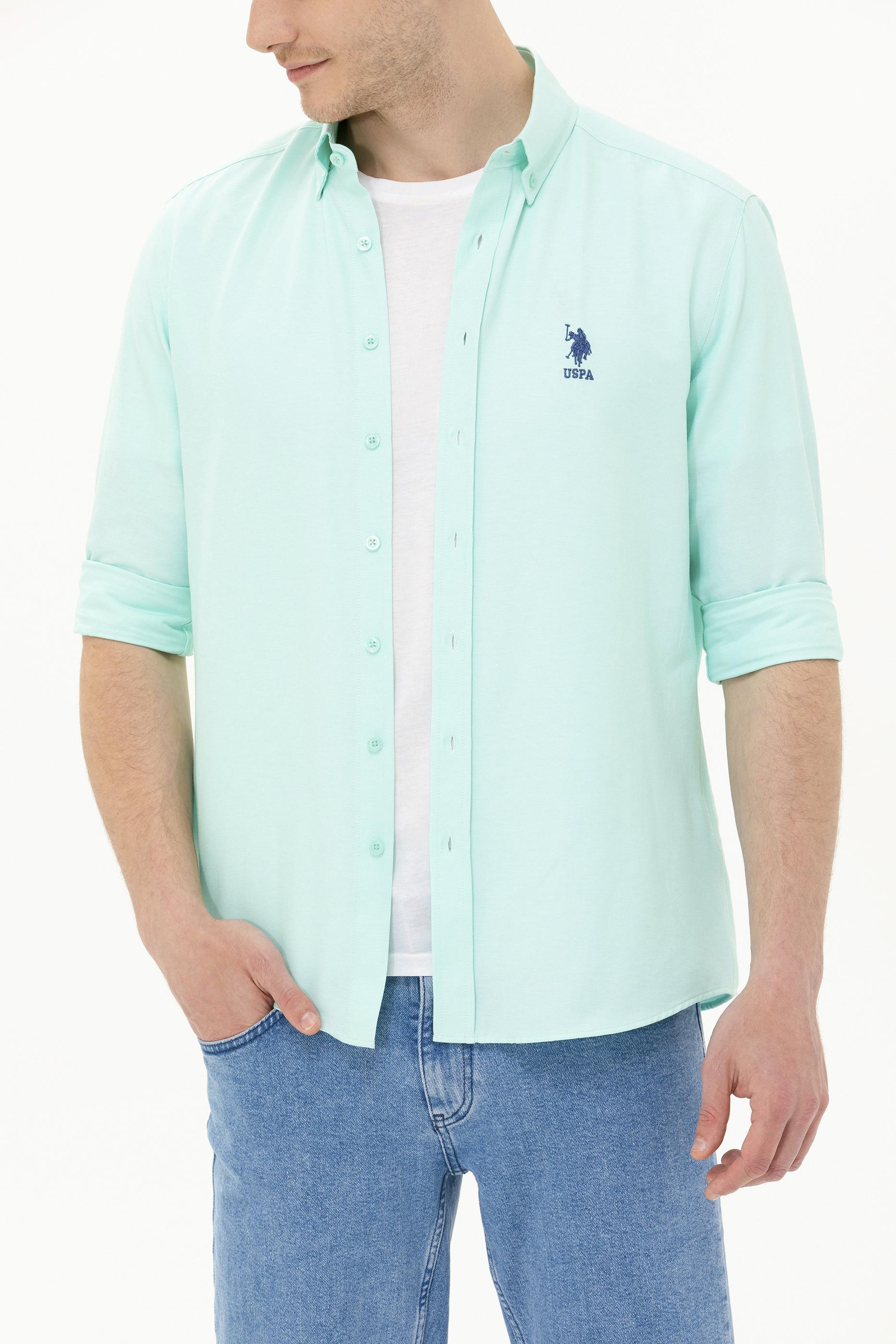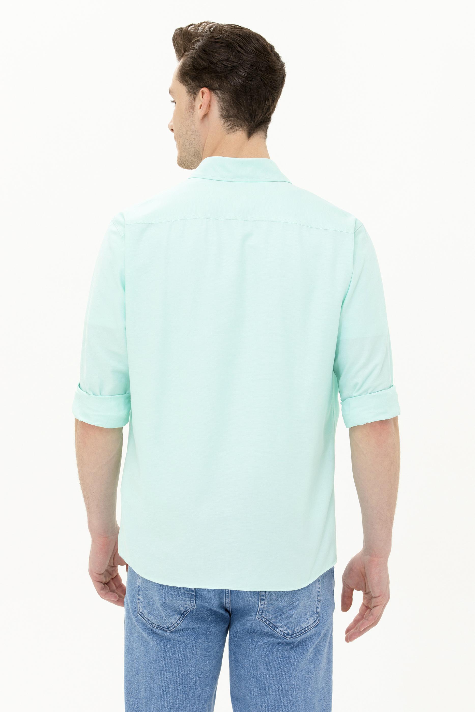 Erkek Su Yeşili Uzun Kollu Basic Gömlek