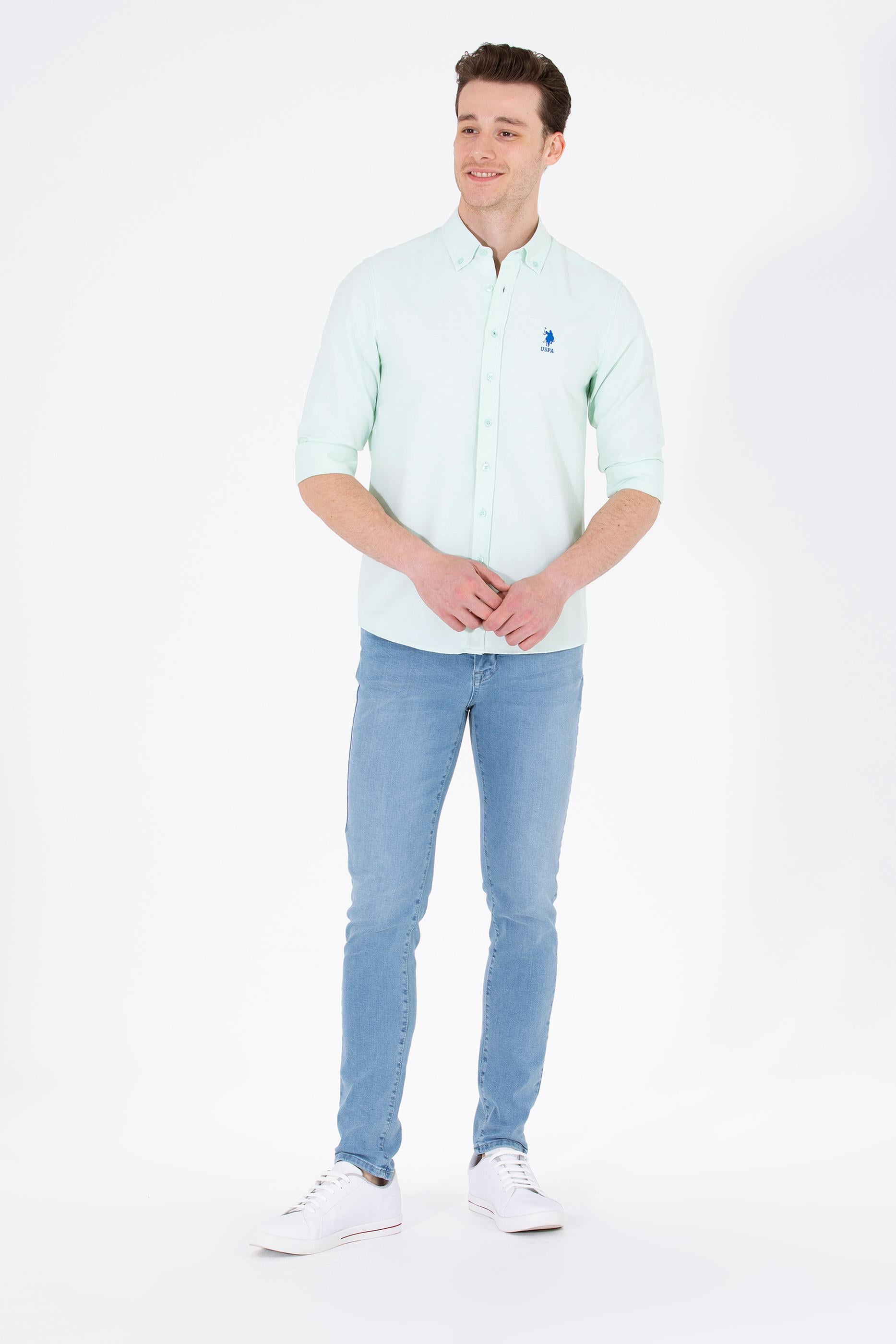 Erkek Su Yeşili Uzun Kollu Basic Gömlek