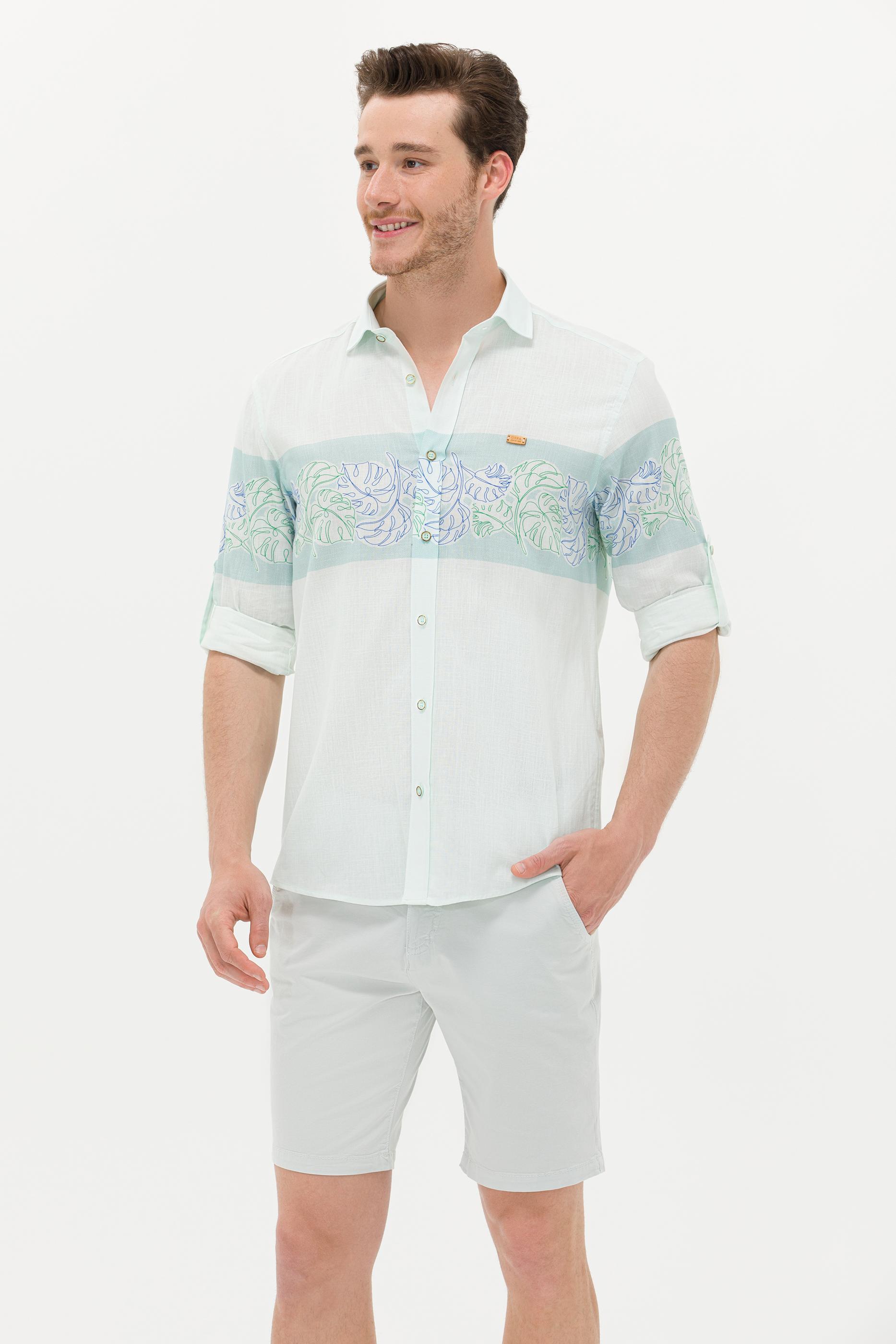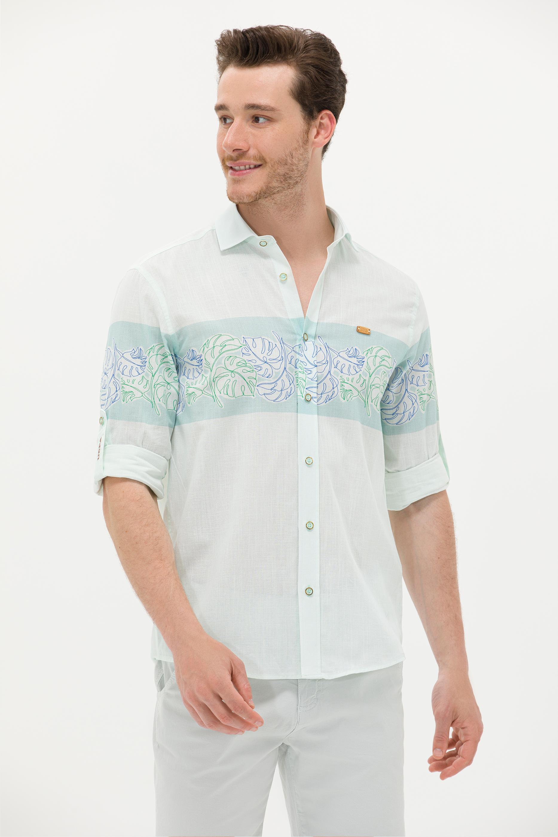 Erkek Su Yeşili Uzun Kollu Gömlek