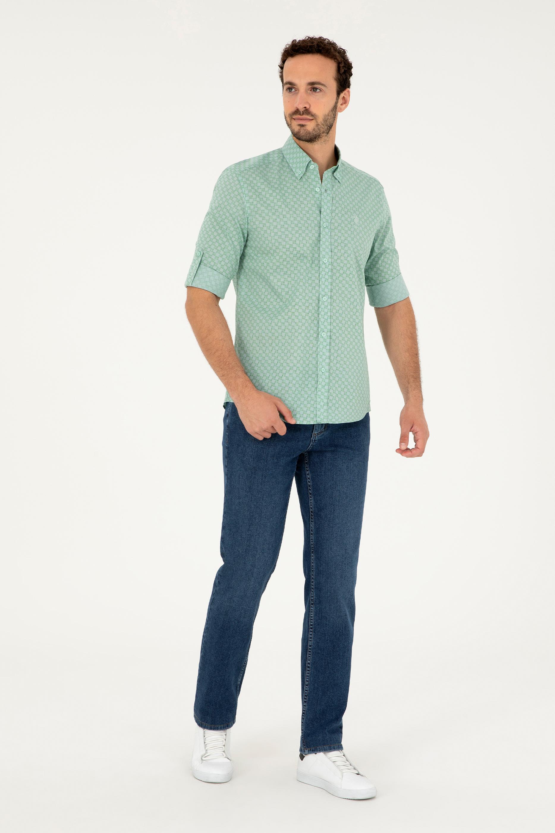 Erkek Su Yeşili Uzun Kollu Gömlek