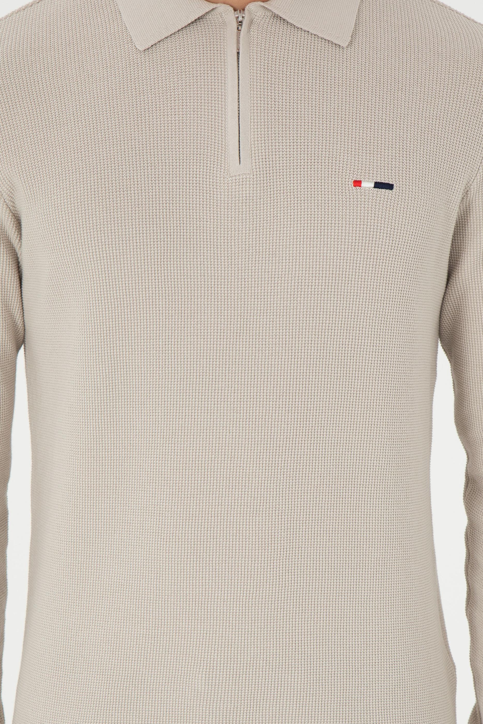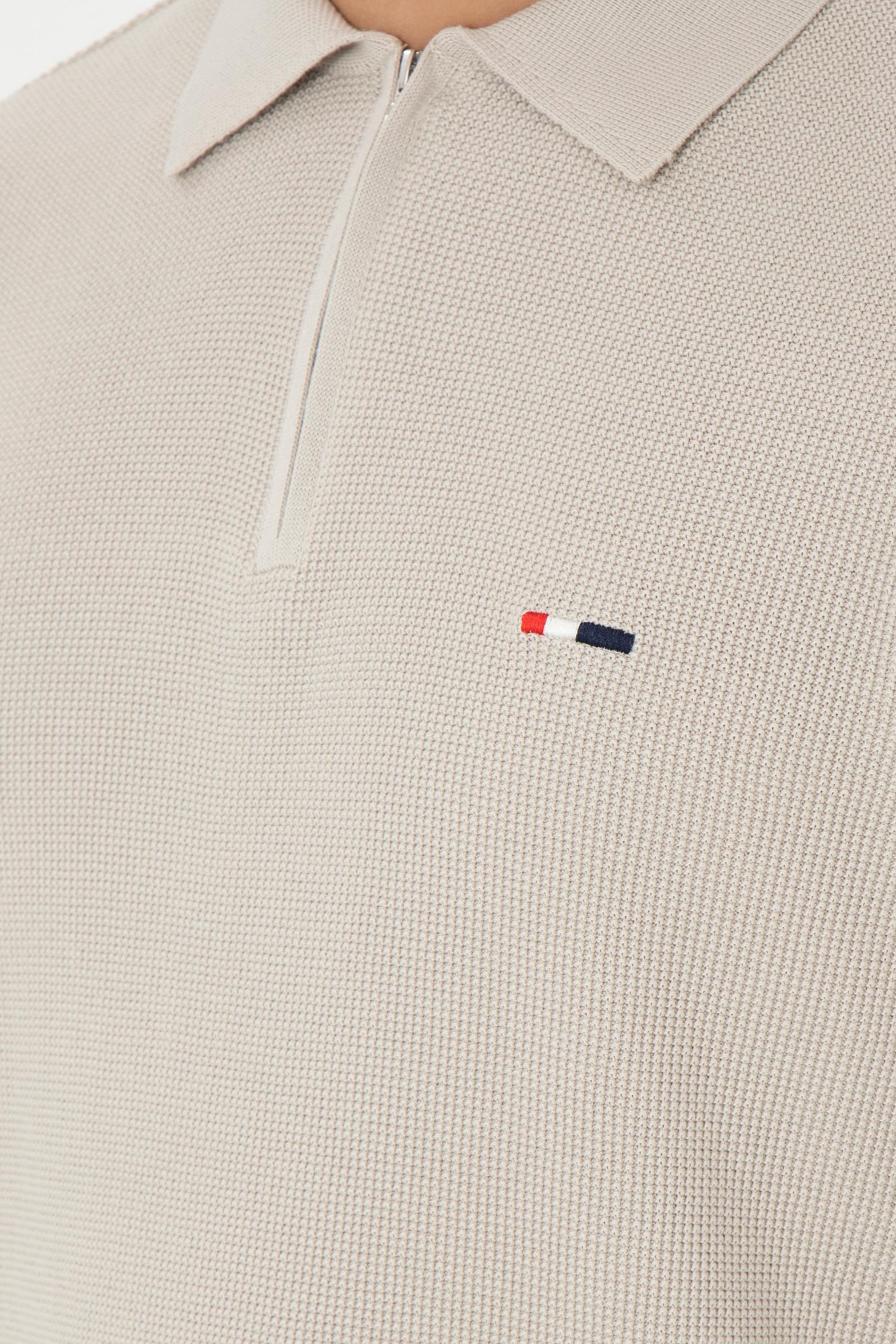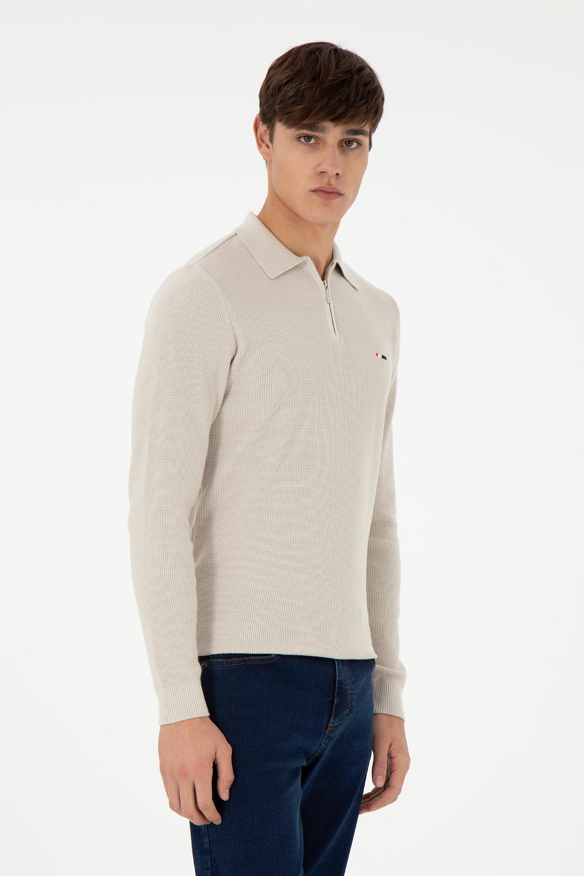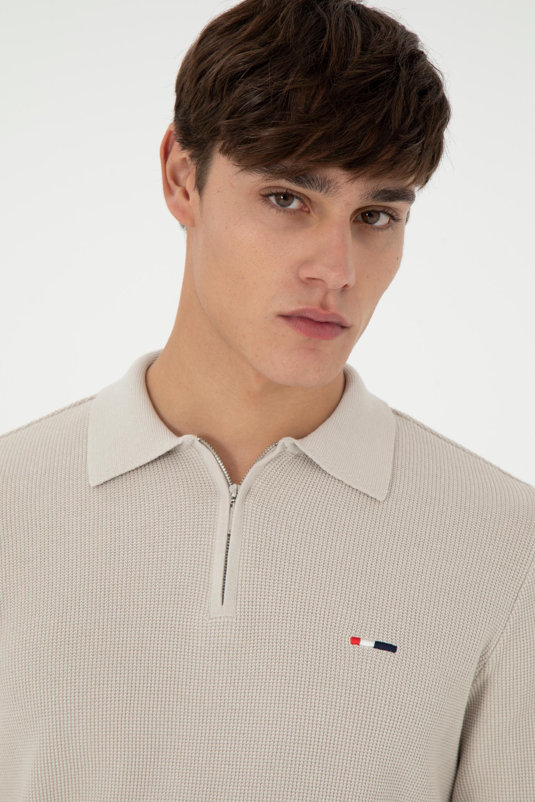 Erkek Regular Fit Yarım Fermuarlı Taş Basic Kazak